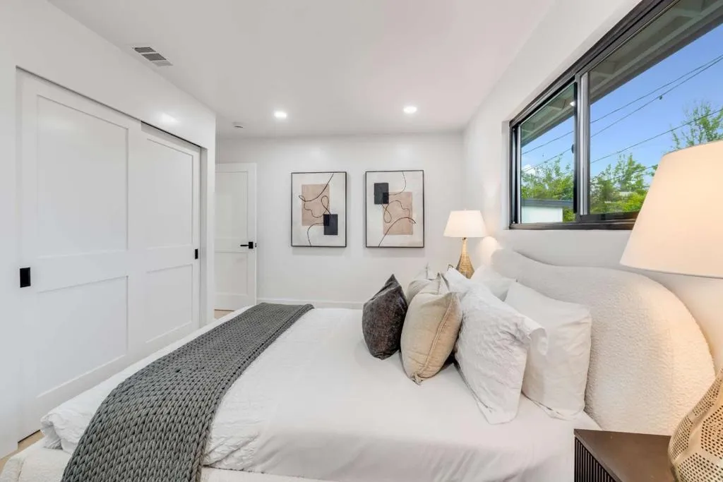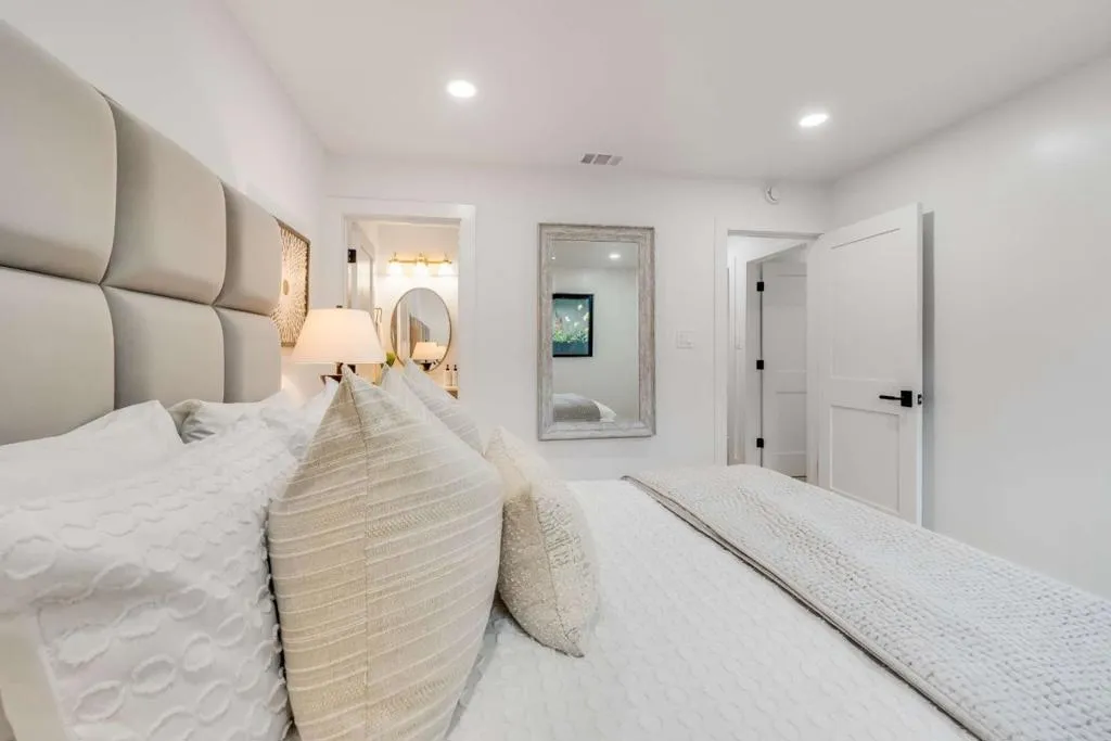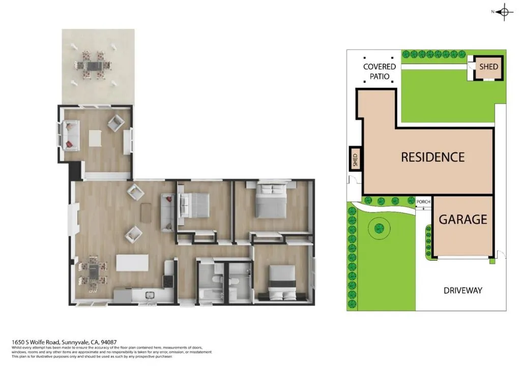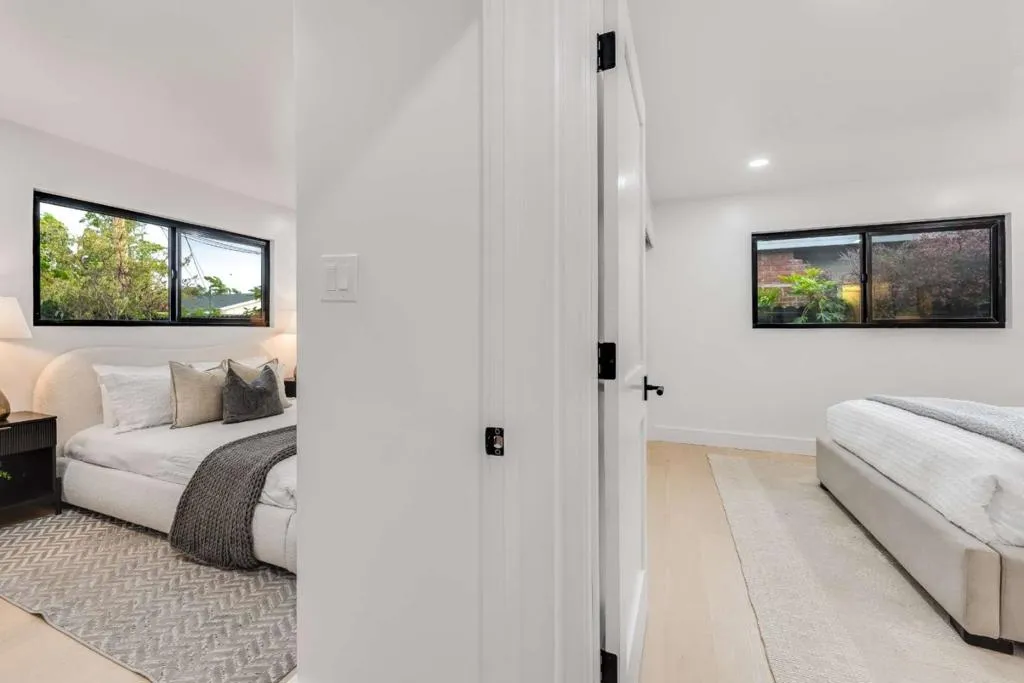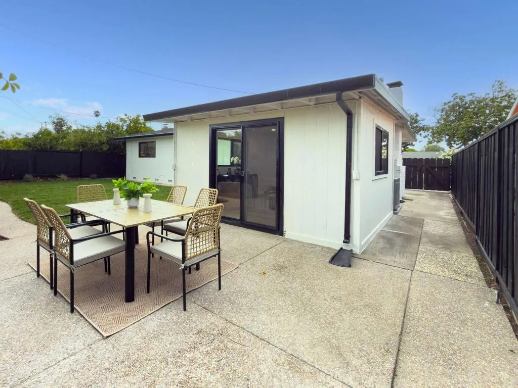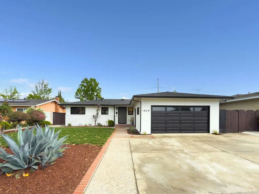 Ideally located just blocks from Apples main campus with easy access to multiple commute routes, this home is fully renovated with designer finishes throughout. Thoughtfully designed layout separates living and sleeping areas. One wing features bright open kitchen, dining area, living room, and separate family room, while the other includes three bedrooms and two full bathrooms for added privacy. Upgrades shine throughout with white oak wide-plank flooring, new black-framed windows, and curated designer finishes including Kohler fixtures, brass hardware, and custom lighting. The kitchen boasts Calacatta quartz countertops, fluted tile backsplash, a large waterfall island, two-tone shaker cabinetry, and Samsung smart appliances. Bathrooms feature white oak vanities with fluted detailing, brass-framed glass shower doors, and custom tile work. Additional highlights include updated stone fireplace, dual-pane windows and sliding doors, new interior and exterior doors, recessed lighting throughout, level 5 smooth drywall, interior and exterior paint, new AC and heating. Enjoy a large fenced backyard with new sod, perfect for entertaining, kids, or relaxing outdoors. Zoned for highly regarded schools: Laurelwood Elementary, Peterson Middle, and Wilcox High School.