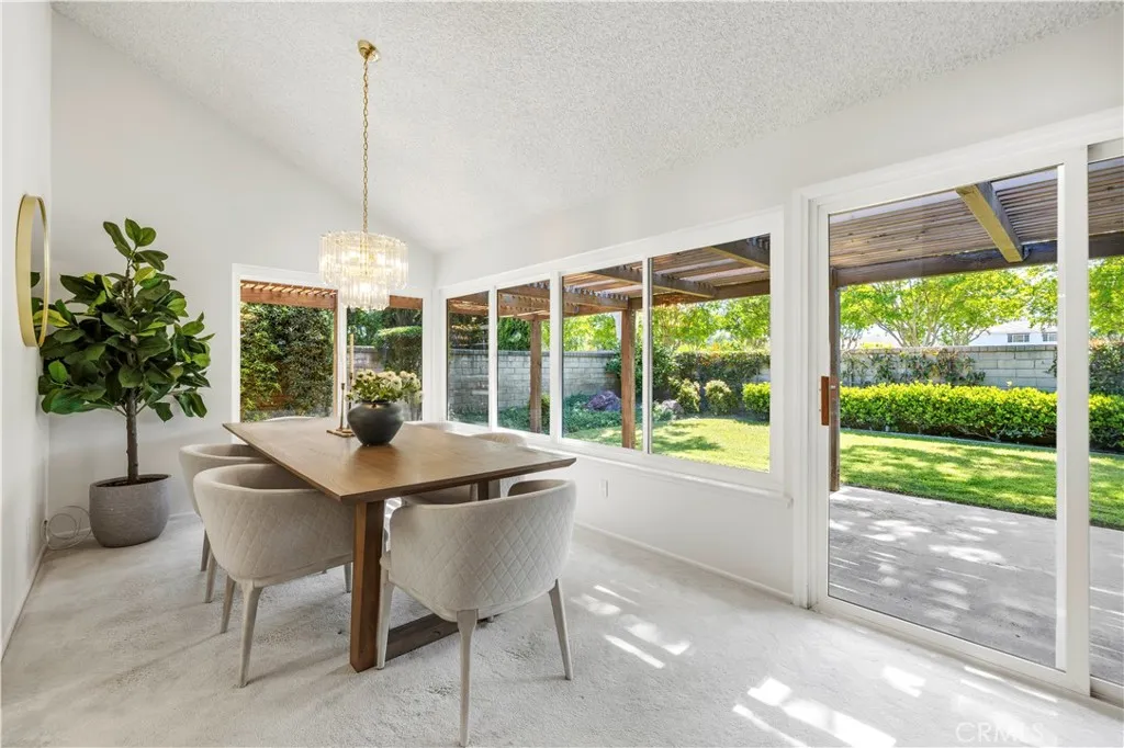 This charming single-story home in the established Old Orchard community of Valencia offers an ideal opportunity for a first-time buyer or someone looking to downsize. From the moment you arrive, the solid wood double doors provide a warm welcome, leading into a tile entryway characterized by high ceilings and an abundance of natural light. The functional open floor plan centers around a cozy living room fireplace and flows easily into the dining area and kitchen, creating a practical space for families. One of the standout features of this property is the seamless connection to the outdoors. A large, private covered patio sits just off the kitchen and living area, overlooking a spacious backyard with plenty of grass and mature landscaping. Inside, the primary bedroom is generously sized and includes a private bathroom with a walk-in shower, while the secondary bedrooms are well-served by a full hallway bathroom with a tub-and-shower combination. The home has been thoughtfully maintained with several practical updates, including a newer HVAC system, water heater, and energy-efficient dual-pane windows. Located in a friendly neighborhood near local schools, shopping, and entertainment, the property offers easy freeway access for commuters. With the added benefit of no Mello-Roos fees, this residence is a wonderful entry point into a sought-after area of Valencia.