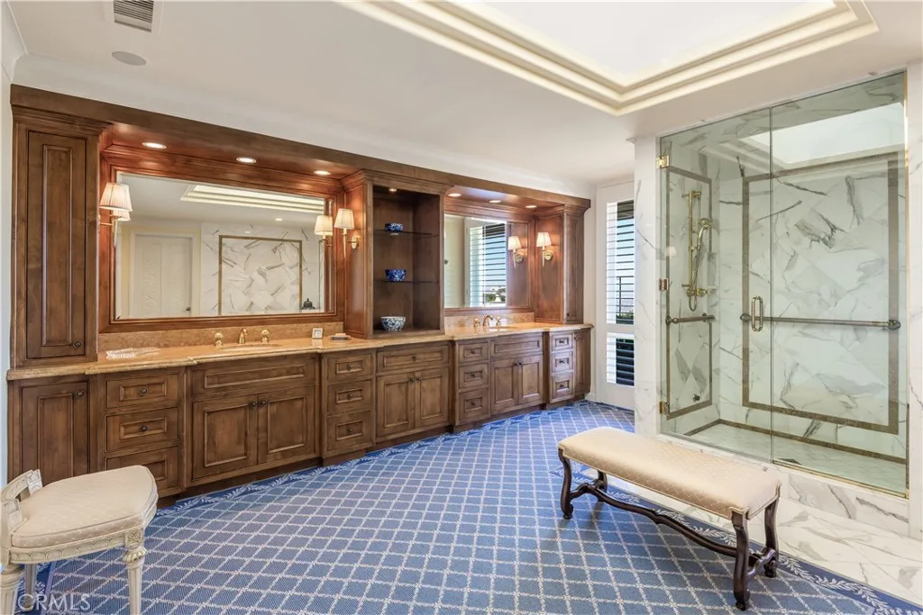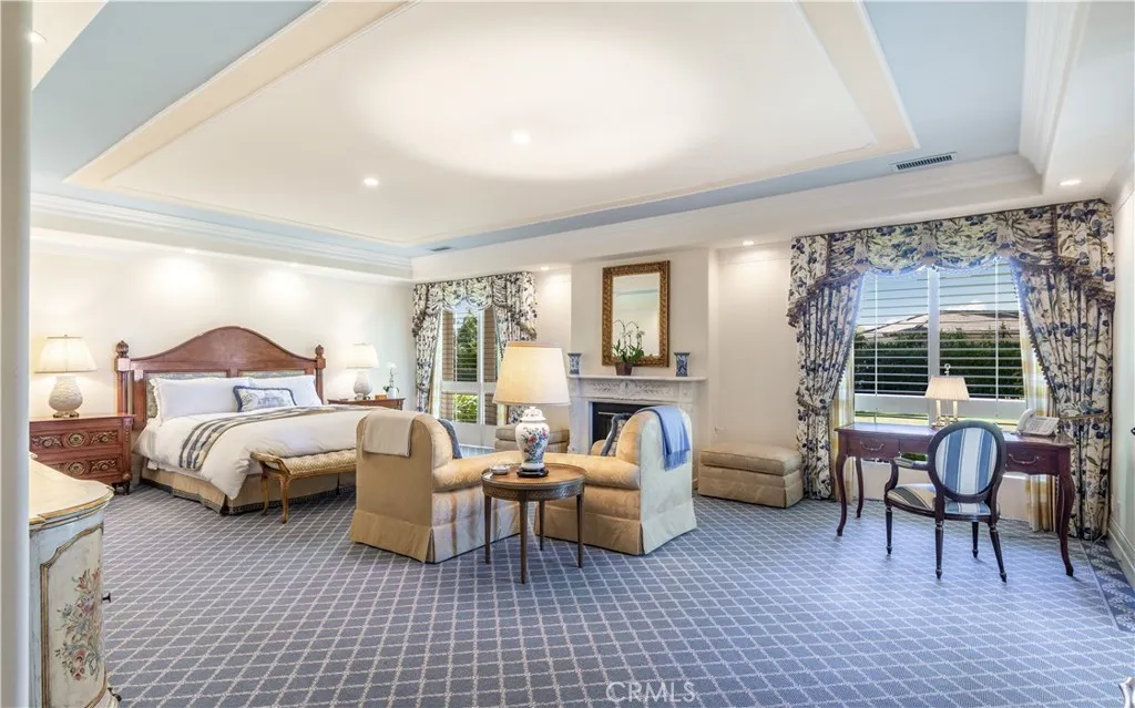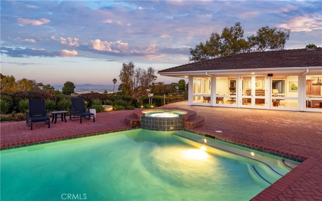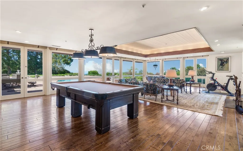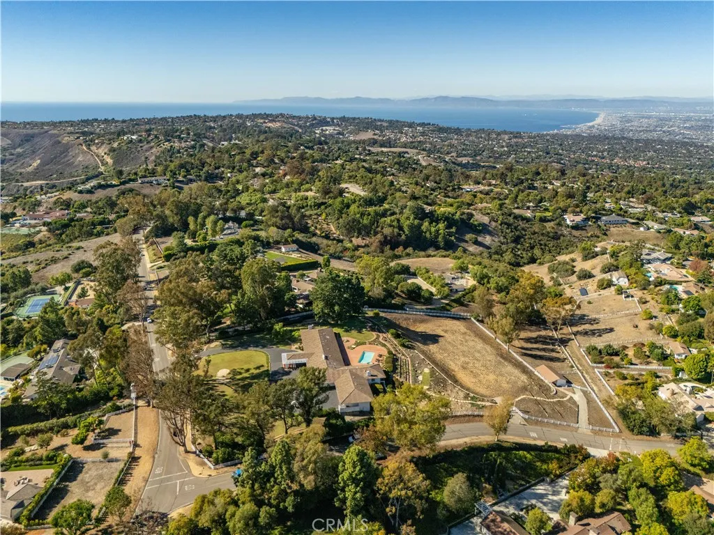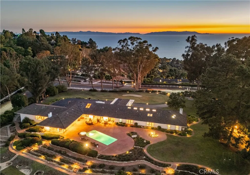 This landmark Crest Road estate is set on approximately 5.5 usable acres, and is one of the very few properties in Rolling Hills offering views in three directions; city lights and coastline to the north, harbor to the east, and ocean and Catalina to the south. Perched above the street with a commanding presence, the home enjoys tremendous curb appeal. A sweeping driveway leads to the elegant porte-cochère, spacious motor court, and a five-car garage. The huge, park-like backyard is truly impressive, showcasing a large pool and spa, expansive lawn, a double bocce ball court, and a barn with riding ring below. Inside, the home exudes a sense of elegance and grandeur, with generous living spaces designed to capture the views. The living room overlooks the rolling front lawn with sweeping vistas of the ocean and Catalina, while the spacious family room opens to the backyard with its dazzling city lights and coastline views beyond. The bedroom wing includes five bedrooms, each with its own full bathroom. The oversized primary suite offers a luxurious sense of space and privacy. The separate guest casita enjoys a bedroom, kitchenette and cozy living space. Additional highlights include a screening room, a gym, sauna and a temperature-controlled wine cellar. With its exceptional setting, rare multi-view orientation, and expansive grounds, this property presents a remarkable opportunity to own one of Rolling Hills’ signature estates, ready to enjoy as is or to tailor to your vision. This is the one you’ve been waiting for…