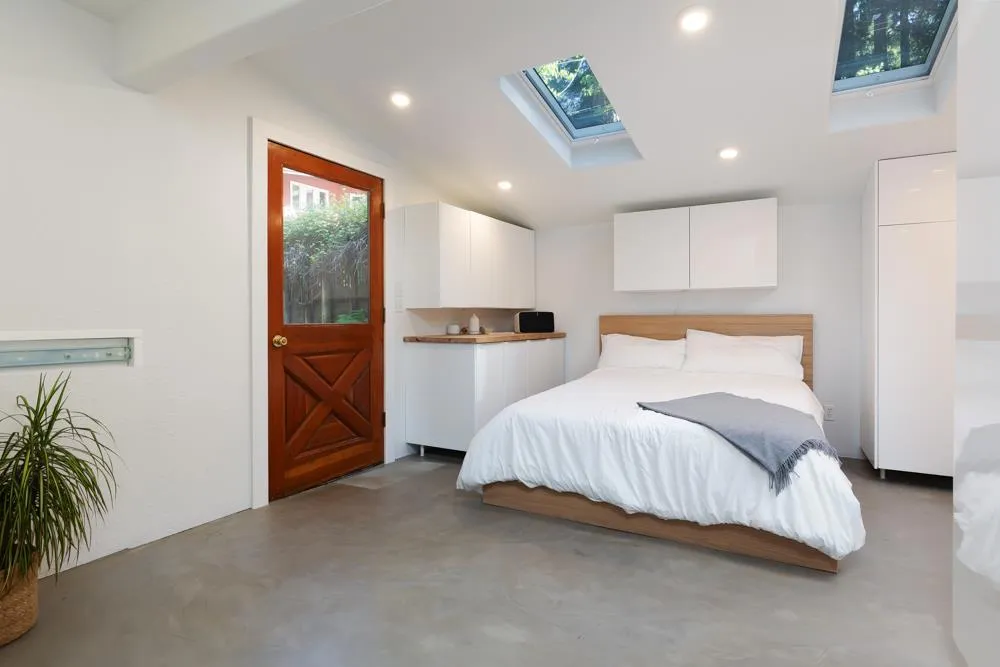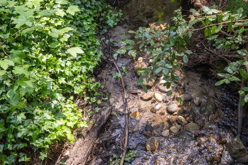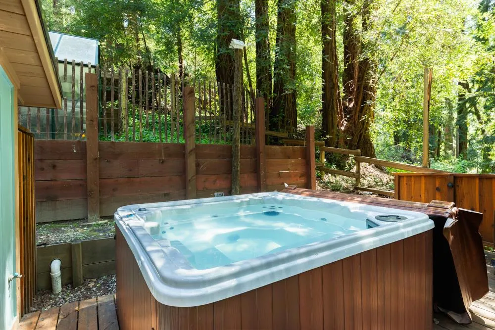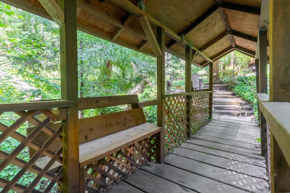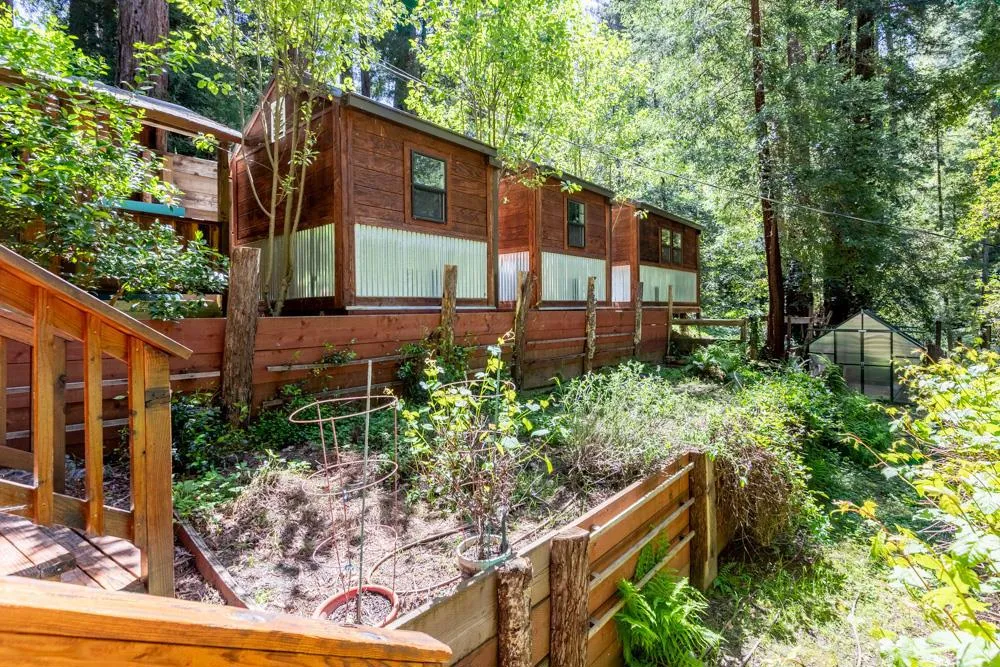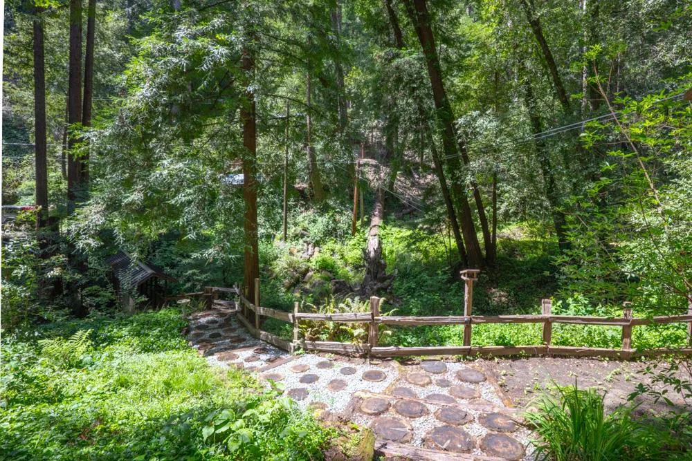 414 Hiawatha Road A Private Forest Sanctuary 414 Hiawatha Road is an enchanting retreat where natural beauty and thoughtful design create a sense of calm and quiet magic. Crossing the charming covered bridge, you're welcomed by the gentle sound of a babbling brook, an arrival that feels like stepping into a storybook. Inside, the home has been meticulously redesigned into a contemporary sanctuary with a warm Scandinavian aesthetic. Skylights invite soft forest light to pour in, creating a bright connection to the surrounding landscape. The kitchen blends style and function with a beamed ceiling, butcher block countertops, and custom built-ins, including a beverage fridge, nugget ice machine, and convection microwave. A cozy wood stove anchors the space, opening to a spacious deck with serene forest views and a hot tub for soaking under the trees. Upstairs are three bedrooms with sleek built-ins and beautifully designed baths, including a half bath with a shower and access to the dog run. Radiant-heated concrete floors, multiple view decks, a detached building, storage structures, an EV charger, and RV/boat parking complete the offering.