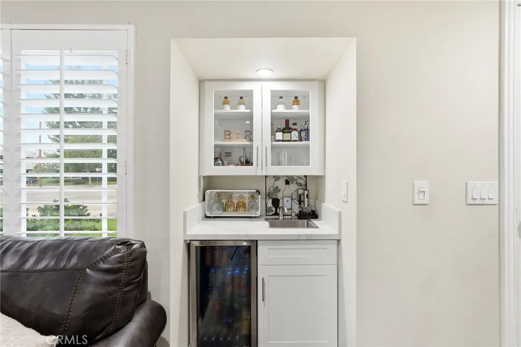 Welcome to this beautifully renovated, move-in ready 2 bedroom, 2.5 bath townhome in the highly desirable Devonshire Village. Expertly renovated throughout, this home blends modern design with functional living. The light-filled living room features wide windows with custom wood shutters, recessed lighting, upgraded gray laminate flooring, wet bar, and a fireplace, flowing seamlessly into the dining area perfect for entertaining. The spacious kitchen boasts quartz countertops, a modern backsplash, glass-front cabinetry, and stainless steel appliances, ideal for cooking and gatherings. Upstairs, enjoy two spacious primary suites, each with generous walk-in closets. The primary suite showcases a fully renovated bathroom with a floating his-and-hers sink, a filtered soft water shower with tub, and marble tile. The second suite offers its own private bathroom with a walk-in shower and ample closet space. A guest half bath is conveniently located on the main level. In-unit laundry, a direct-access two-car garage, and a private patio with TV's hookups perfect for entertaining, morning coffee, outdoor dining, or relaxing evenings. Resort-style amenities including two sparkling pools, a spa, and beautifully landscaped grounds. Perfectly located near CSUN, shopping, dining, freeway access, and the highly regarded Granada Hills Charter High School, this exceptional townhome combines modern upgrades, comfort, and an unbeatable community lifestyle. Priced to sale! A true turnkey opportunity, don’t miss it!
