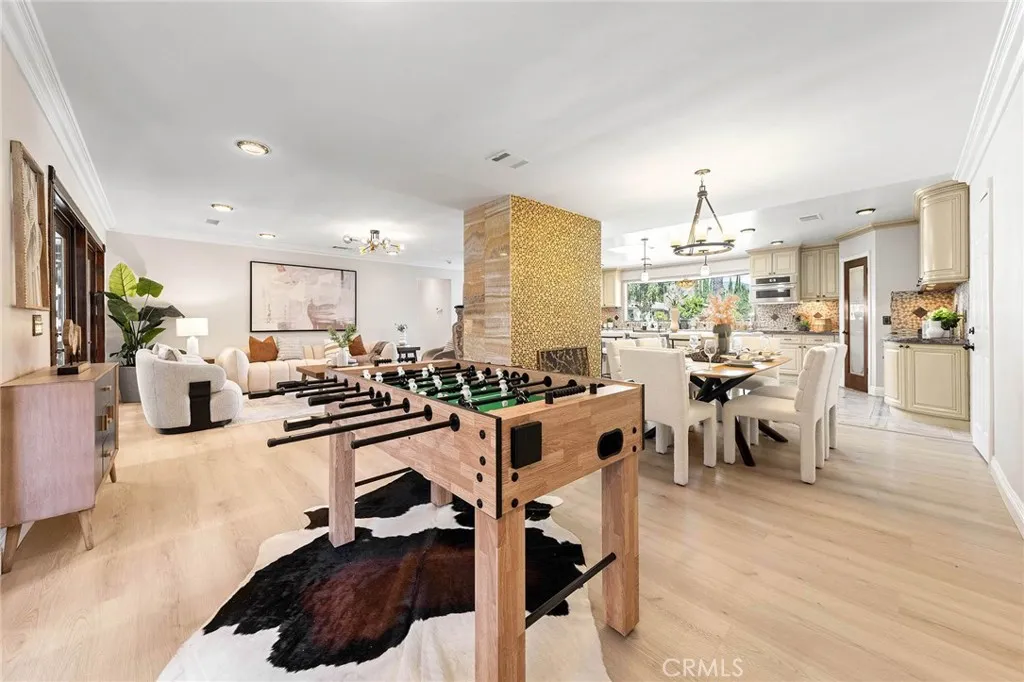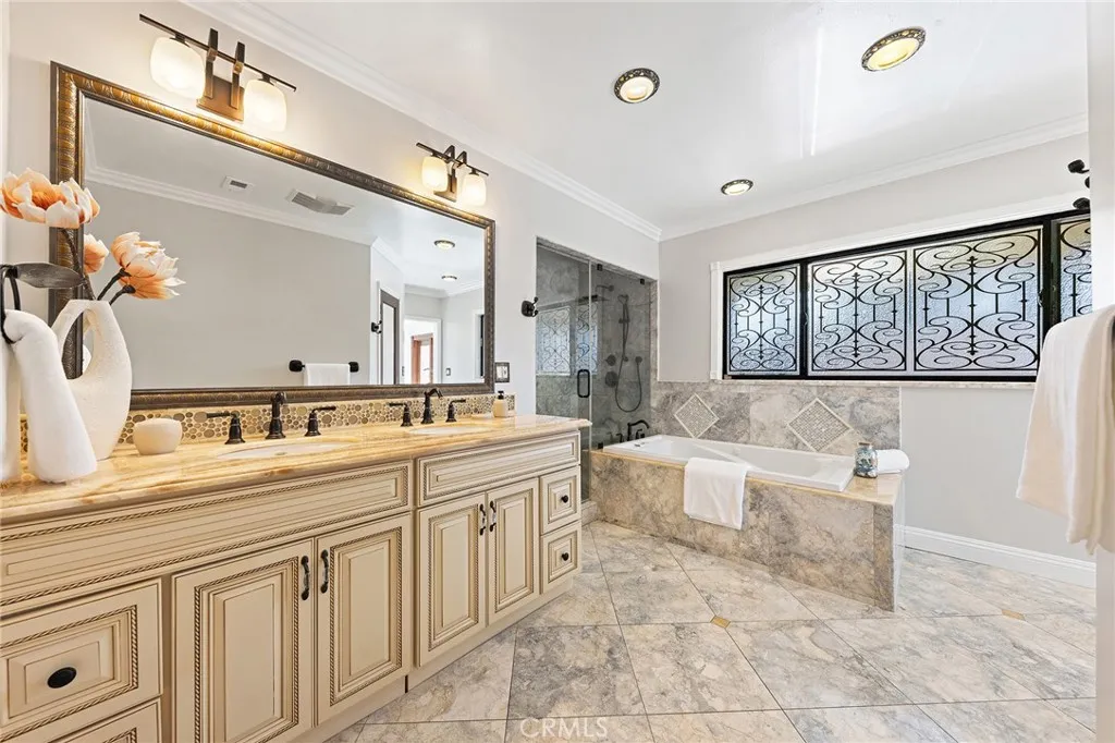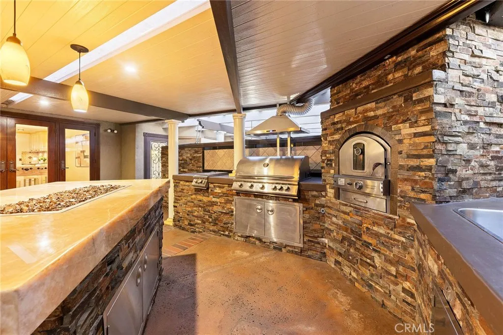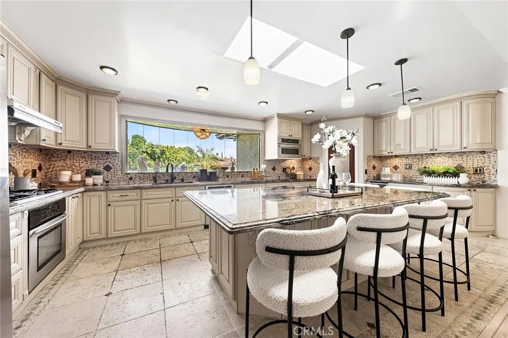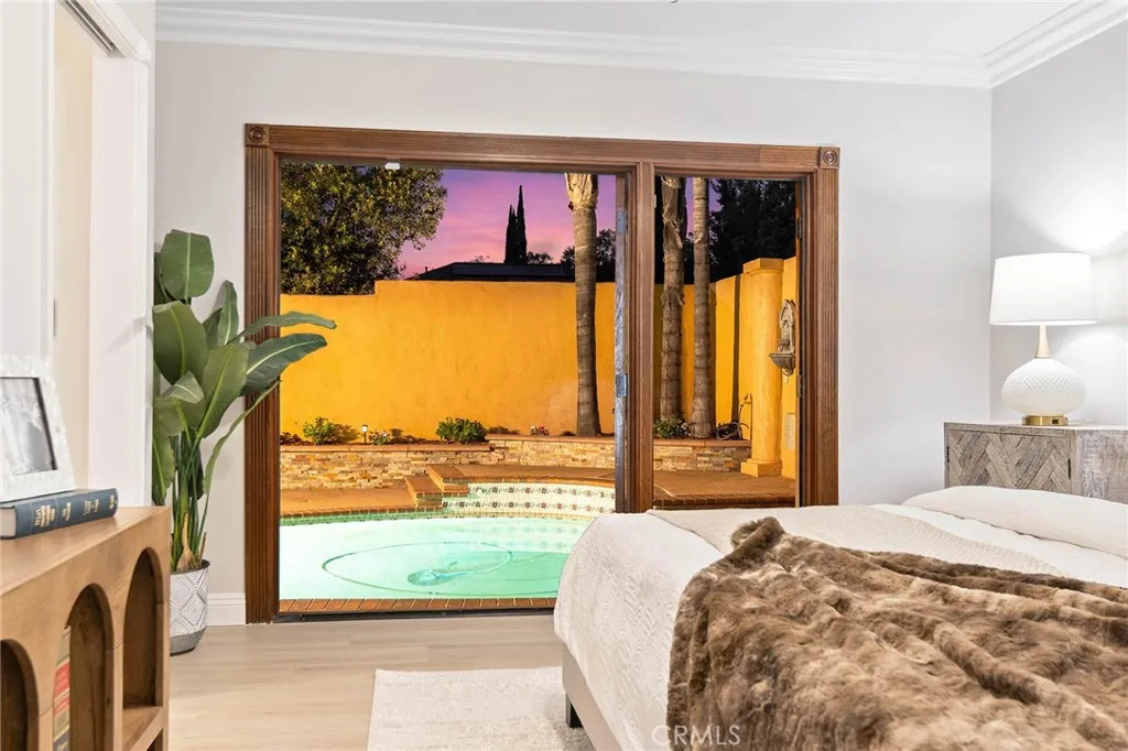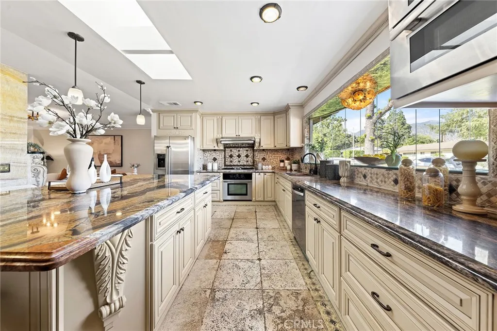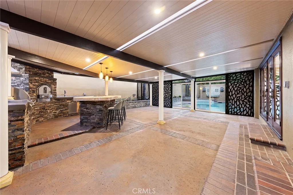 Beautifully single-story pool home located in the highly sought-after Highland Oaks area of North Arcadia. This home offers 2,600 sq. ft. of living space on a 9,140 sq. ft. lot. From the moment you arrive, the home’s exceptional curb appeal stands out, featuring a professionally landscaped front yard with a rose garden, palm trees, a sculptural water fountain, and a welcoming front porch. Step through the custom iron front door into an expansive open-concept living room, highlighted by an elegant onyx fireplace and a wall of glass doors that seamlessly connect indoor and outdoor living. The backyard is truly an entertainer’s dream, featuring a newly renovated cabana and outdoor kitchen complete with a built-in BBQ grill, Italian pizza oven, and a stunning backlit onyx bar. The space seamlessly flows into a covered patio, enhanced by a tranquil fountain. This home seamlessly blends classic character with modern updates. Recently remodeled in 2026, it features fresh interior paint throughout and brand-new flooring across the main living areas, open layout designed for today’s lifestyle. A newly constructed patio cover enhances the outdoor space with both style and functionality. Additional upgrades completed by the previous owner further elevate the home’s overall appeal. Inside, the bright and spacious kitchen is thoughtfully designed with a dramatic curved window overlooking the serene front yard. A striking 9-foot marble island serves as the centerpiece, complemented by an inviting eat-in nook and a generous formal dining area. High-end appliances and a designer tile backsplash complete this impressive chef’s kitchen. This home features 4 spacious bedrooms, a convertible den, and a dedicated office, including two luxurious master suites. One master suite offers direct access to a private patio and pool area. There are 4 appointed bathrooms, including two master baths with steam showers and intricate medallion mosaic tile work. Additional highlights include gleaming wood flooring, custom cabinetry, copper plumbing, upgraded windows, and designer recessed lighting throughout. The finished attic above the garage provides flexible space for a playroom or storage. A two-car attached garage offers direct access to a separate laundry room. Close to Santa Anita Golf Course, Westfield Shopping Center, LA Arboretum, entertainment, fine dining, entertainment, and within the highly regarded Arcadia School District, this exceptional home truly has it all.