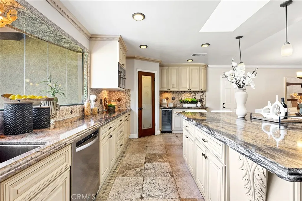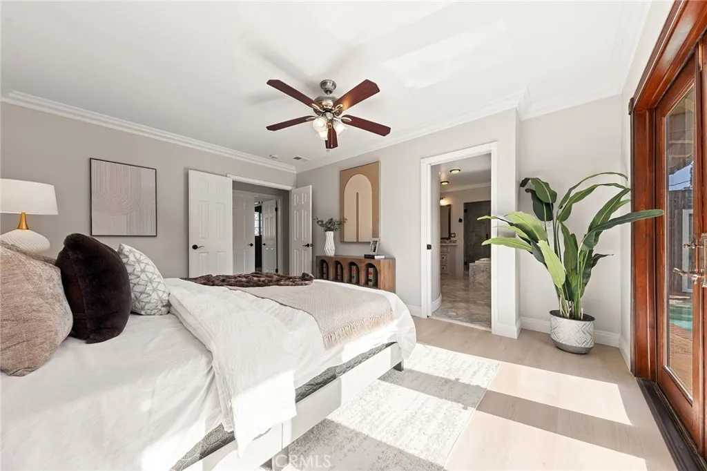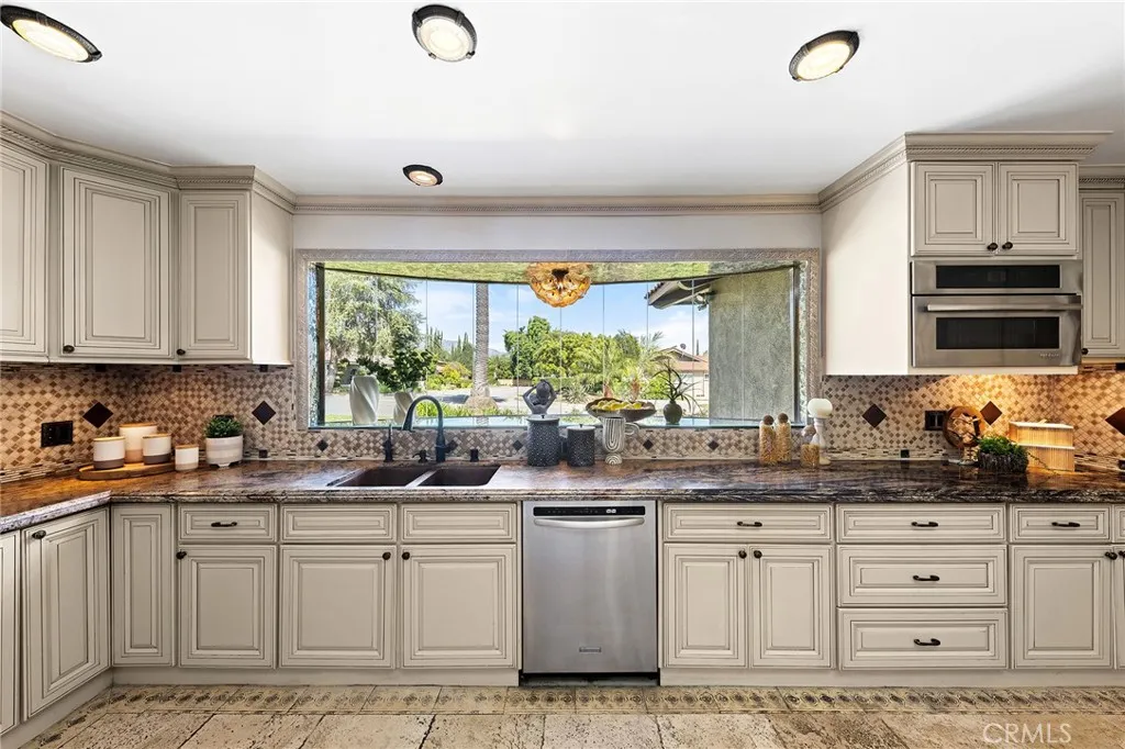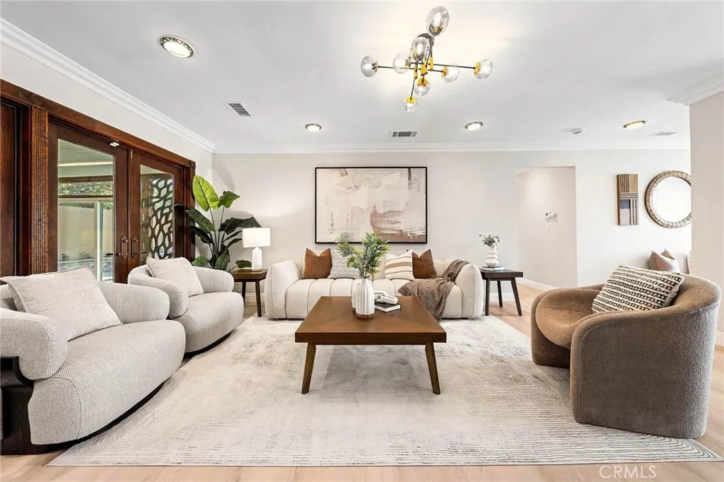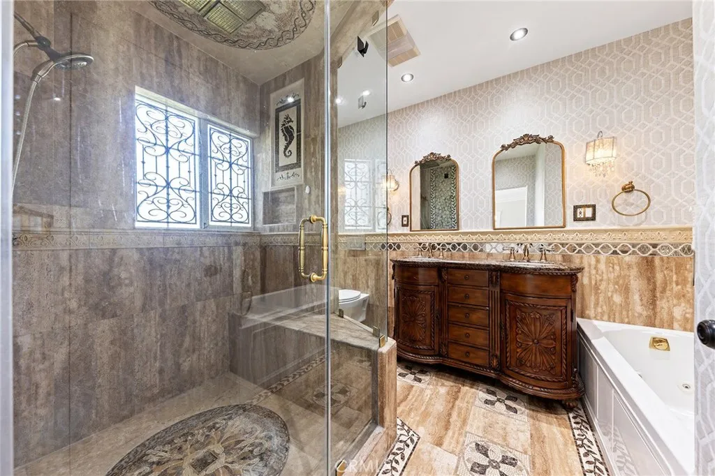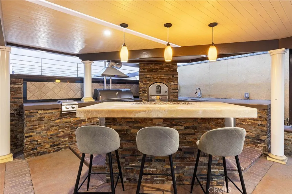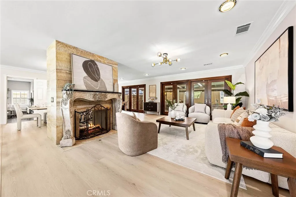 Beautifully single-story pool home located in the highly sought-after Highland Oaks area of North Arcadia. This home offers 2,600 sq. ft. of living space on a 9,140 sq. ft. lot. From the moment you arrive, the home’s exceptional curb appeal stands out, featuring a professionally landscaped front yard with a rose garden, palm trees, a sculptural water fountain, and a welcoming front porch. Step through the custom iron front door into an expansive open-concept living room, highlighted by an elegant onyx fireplace and a wall of glass doors that seamlessly connect indoor and outdoor living. The backyard is truly an entertainer’s dream, featuring a newly renovated cabana and outdoor kitchen complete with a built-in BBQ grill, Italian pizza oven, and a stunning backlit onyx bar. The space seamlessly flows into a covered patio, enhanced by a tranquil fountain. This home seamlessly blends classic character with modern updates. Recently remodeled in 2026, it features fresh interior paint throughout and brand-new flooring across the main living areas, open layout designed for today’s lifestyle. A newly constructed patio cover enhances the outdoor space with both style and functionality. Additional upgrades completed by the previous owner further elevate the home’s overall appeal. Inside, the bright and spacious kitchen is thoughtfully designed with a dramatic curved window overlooking the serene front yard. A striking 9-foot marble island serves as the centerpiece, complemented by an inviting eat-in nook and a generous formal dining area. High-end appliances and a designer tile backsplash complete this impressive chef’s kitchen. This home features 4 spacious bedrooms, a convertible den, and a dedicated office, including two luxurious master suites. One master suite offers direct access to a private patio and pool area. There are 4 appointed bathrooms, including two master baths with steam showers and intricate medallion mosaic tile work. Additional highlights include gleaming wood flooring, custom cabinetry, copper plumbing, upgraded windows, and designer recessed lighting throughout. The finished attic above the garage provides flexible space for a playroom or storage. A two-car attached garage offers direct access to a separate laundry room. Close to Santa Anita Golf Course, Westfield Shopping Center, LA Arboretum, entertainment, fine dining, entertainment, and within the highly regarded Arcadia School District, this exceptional home truly has it all.