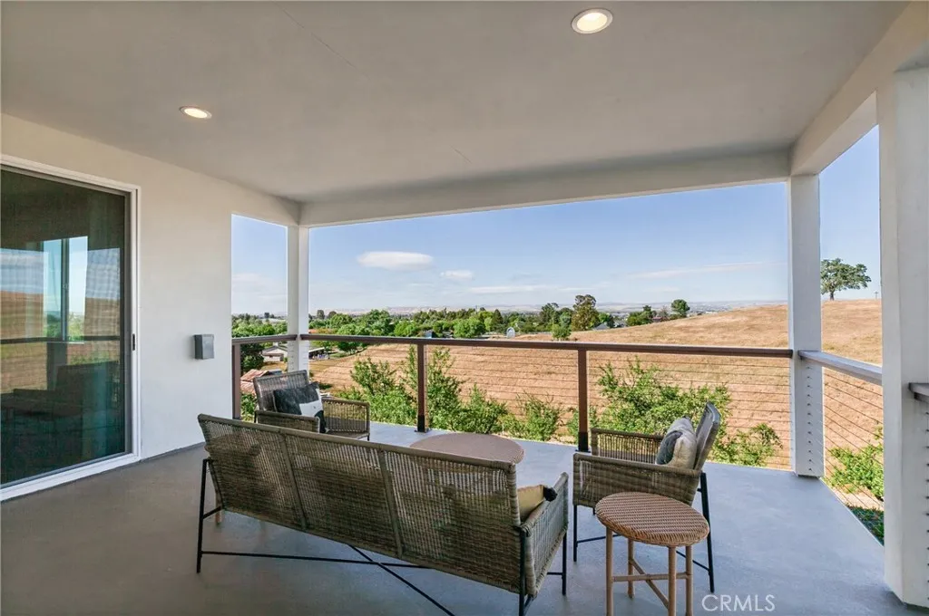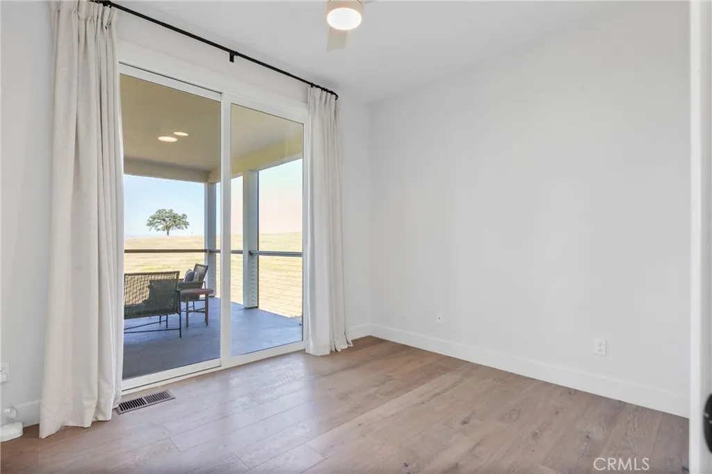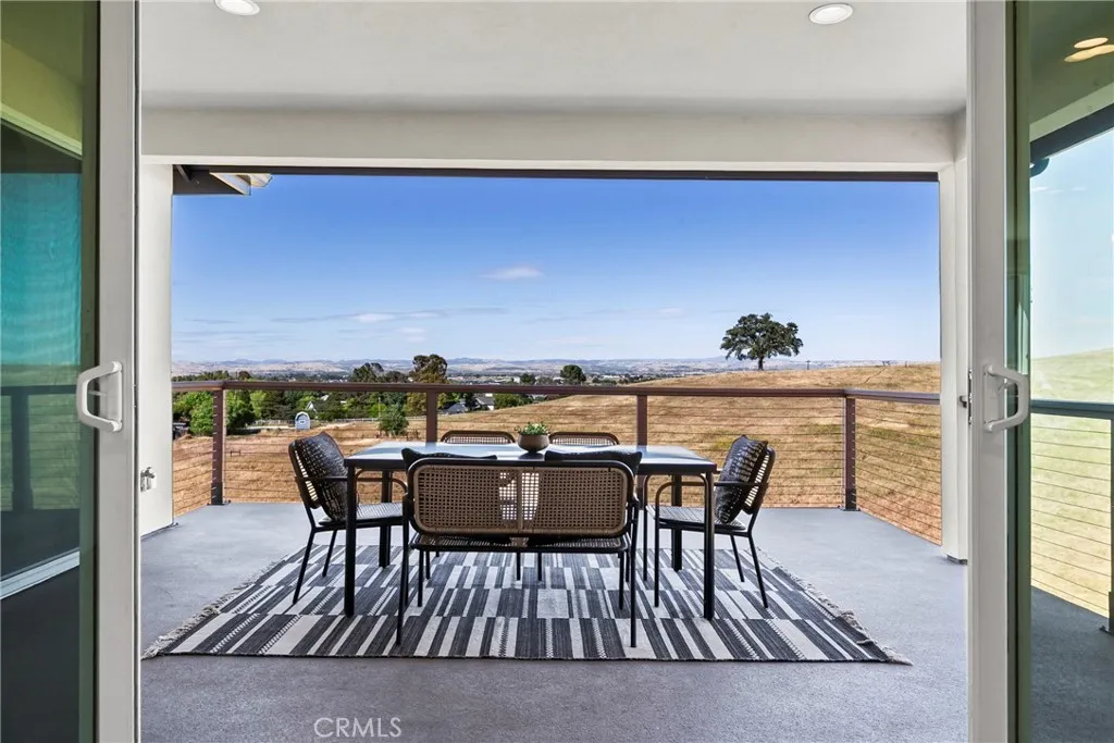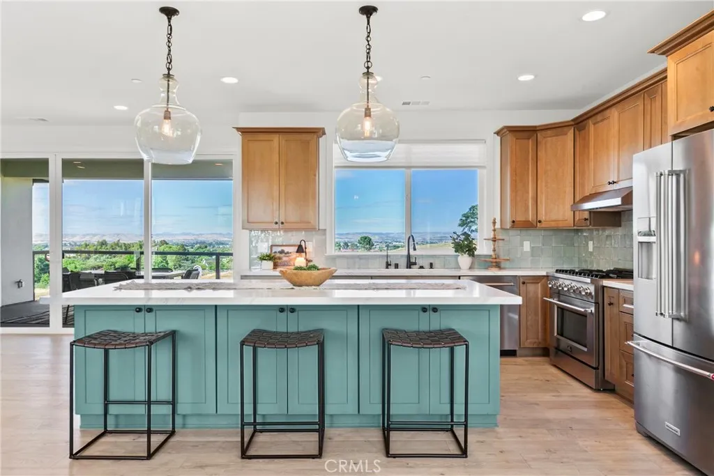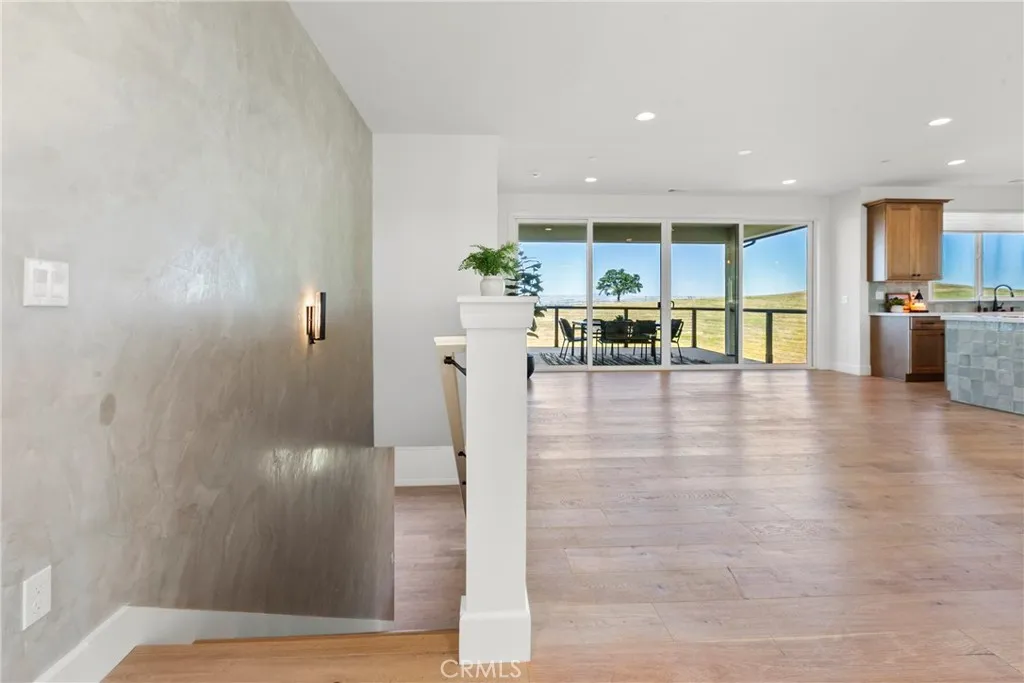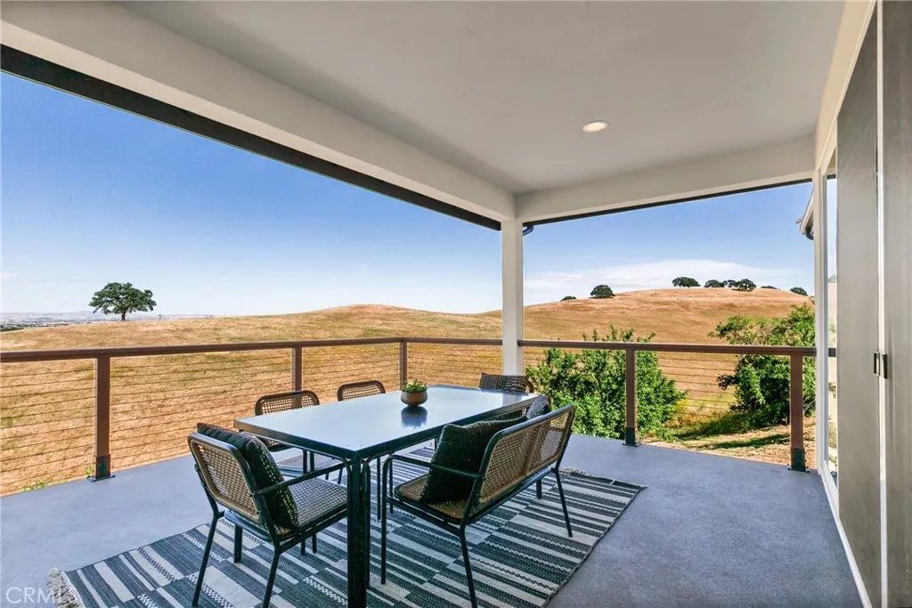 Set behind the gates of Kapareil Estates, this newly built 2024 residence offers a rare blend of modern design, privacy, and sweeping Paso Robles views—all on a full acre. Thoughtfully positioned to capture the surrounding landscape, the home invites you in with clean architectural lines, warm natural finishes, and an effortless indoor-outdoor flow. Luxury plank flooring carries through the open-concept living space, where expansive glass doors frame rolling hills and lead to a covered deck designed for year-round enjoyment—morning coffee, golden hour dinners, and everything in between. At the heart of the home, the kitchen delivers both style and substance. Custom cabinetry, a striking two-tone design anchored by a soft seafoam island with subtle gray undertones, designer lighting, and a beautifully tiled backsplash create a space that feels both elevated and inviting—equally suited for quiet evenings or effortless entertaining. The layout offers four well-appointed bedrooms and 2.5 baths across approximately 2,488± square feet, including a serene entry-level primary suite with direct access to outdoor living and a spa-inspired bath. Each space has been carefully considered to balance comfort, light, and functionality. Beyond aesthetics, the home is equipped with owned solar, bringing long-term efficiency to its modern appeal. Set on a full acre, the property offers a sense of openness and quiet possibility, with almond and pomegranate trees thoughtfully dotting the landscape—all just minutes from Paso Robles’ renowned wineries, dining, and downtown charm. A contemporary take on wine country living—refined, relaxed, and ready to be experienced.