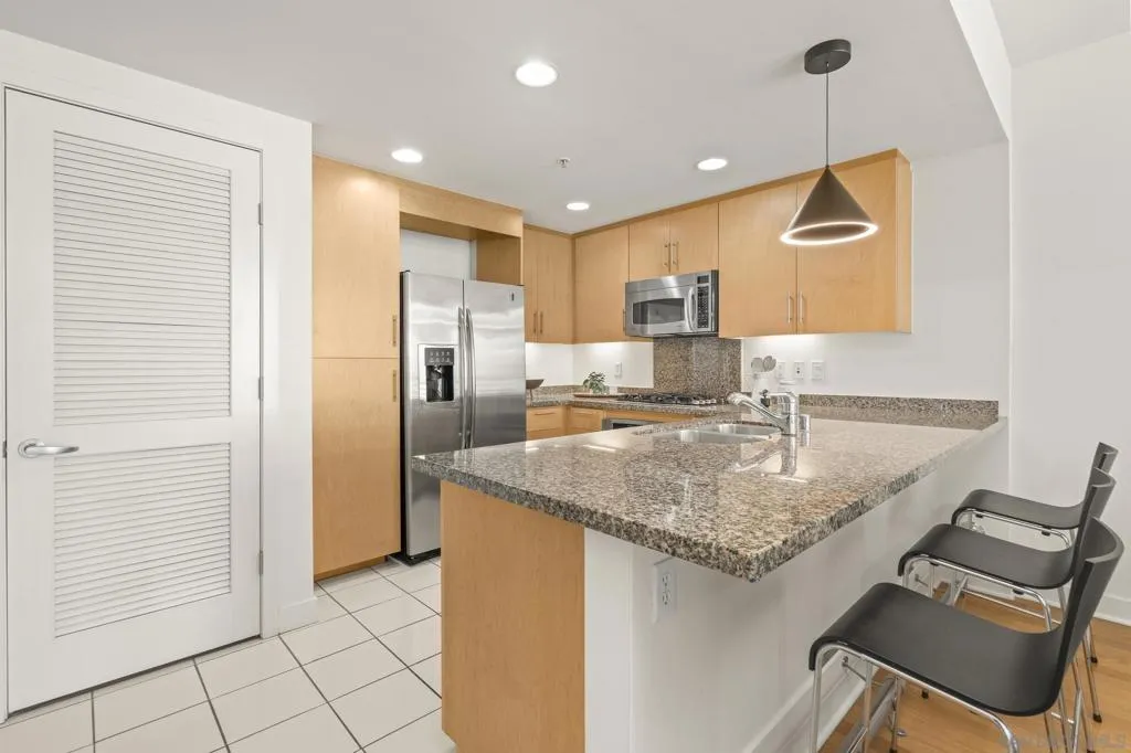 Welcome to the Egyptian—where true condominium living is elevated by timeless construction and an exceptional Hillcrest location. This thoughtfully reintroduced residence presents a rare opportunity to own in one of the area’s few solid concrete buildings—offering a level of quiet, privacy, and durability that is increasingly hard to find. Positioned with a tranquil courtyard exposure, the home feels calm and removed, while remaining moments from the vibrant energy of Hillcrest, University Heights, North Park, and Balboa Park. Inside, floor-to-ceiling windows and 9-foot ceilings create a bright, open living environment. Hardwood and tile flooring run throughout, complemented by fresh paint, a spacious walk-in closet with a custom Elfa system, and a well-appointed kitchen featuring a gas range. Designed for ease, the Egyptian offers a truly simplified ownership experience, with HOA coverage extending to major systems, exterior maintenance, and utilities including water, gas, sewer, and trash. In-unit laundry, assigned parking, and a dedicated EV charger further enhance daily convenience. A rare combination of quiet construction, refined interiors, and effortless living, set at the center of it all.