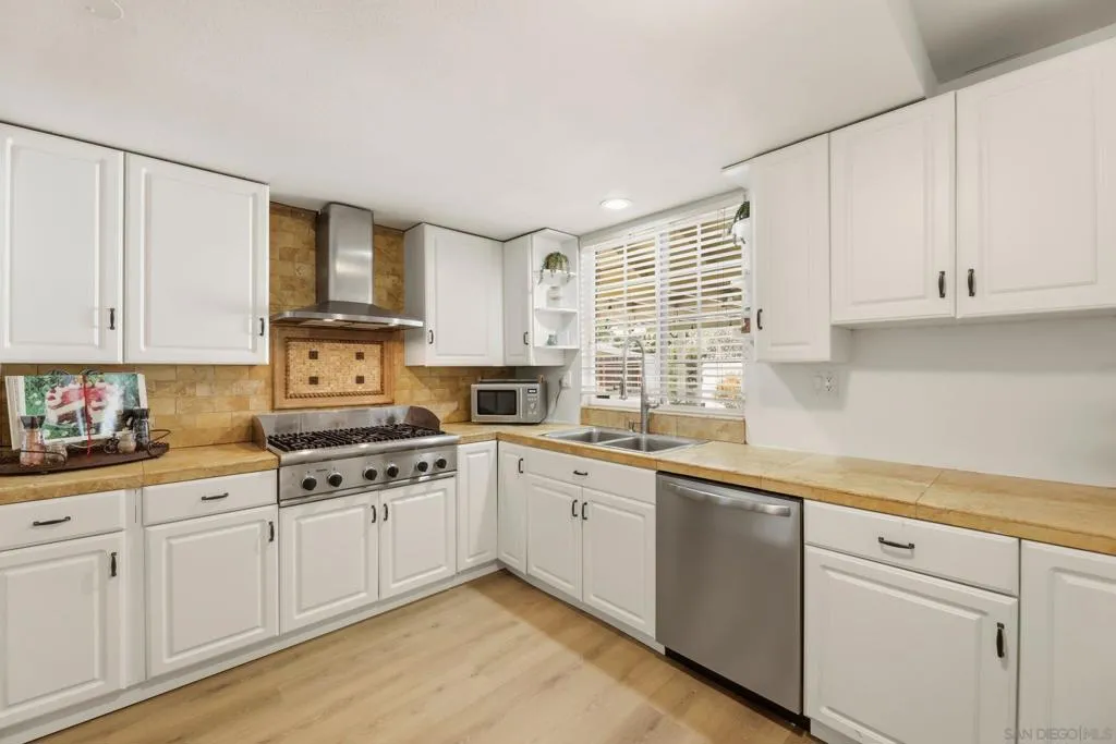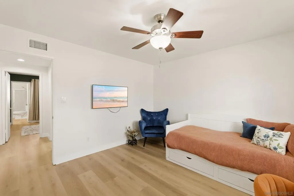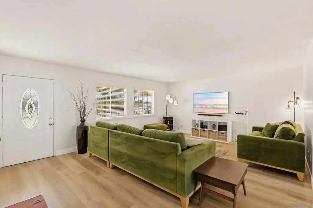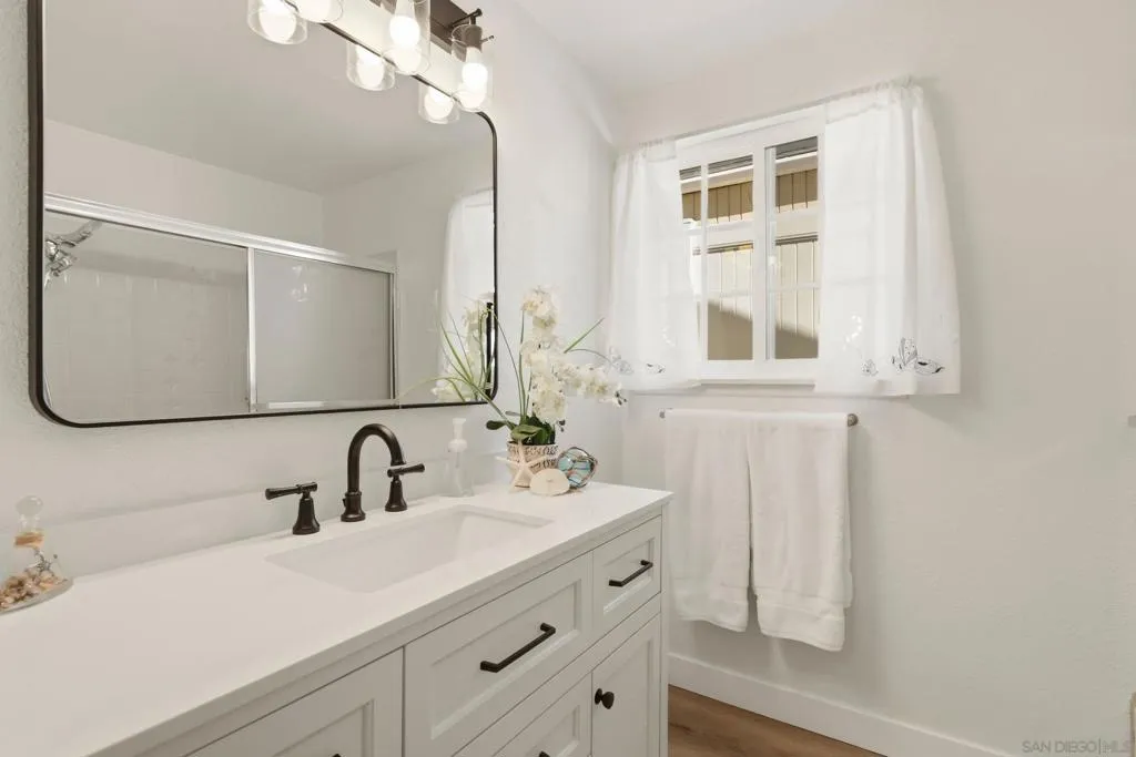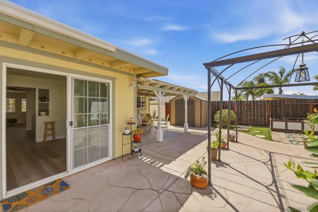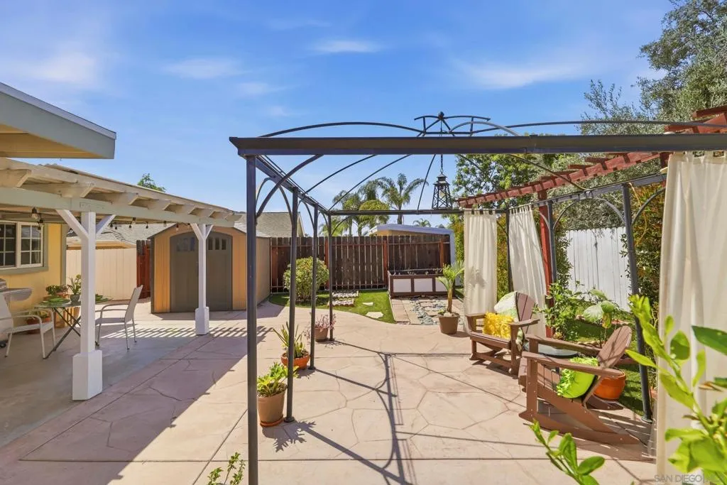 This charming home with bonus room, offers incredible value with no HOA fees, newer paid solar, newer roof, new baseboards, new flooring, updated bathrooms, vinyl windows, stainless steel appliances and no HOA fees. The single-story residence boasts great curb appeal with a quintessential white picket fence and low-maintenance, easy-care front and back yards featuring large concrete patios, a spacious shed, and artificial grass. Step inside to find a light-filled home with a spacious chef’s kitchen equipped with Dacor double ovens, a Thermador six-burner gas stove, and freshly painted cabinets. A versatile 15x12 bonus room—perfect for a home office, third bedroom, or playroom—adds significant flexibility to the floor plan. Outdoor living is effortless with a large, fenced backyard that includes a garden area, a covered patio and newer vinyl and wood fencing. Energy efficient dual-pane vinyl windows, and ceiling fans in the bedrooms and dining area add to the benefits. Don't miss this rare opportunity to own this move-in ready home situated within the highly sought-after San Marcos school district and close to restaurants and shopping. This property is truly a turn-key gem.