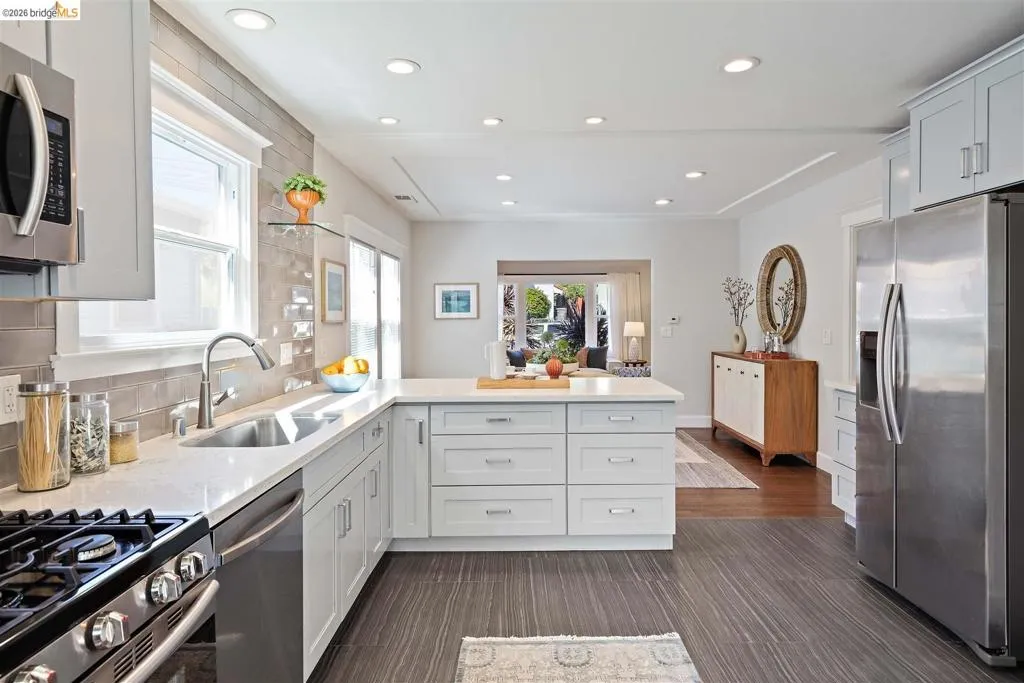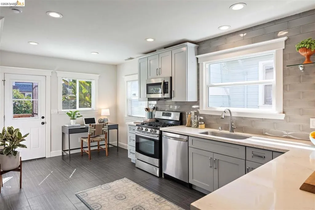 Step inside this exquisite and charming bungalow nestled in Oakland’s Sausal Creek neighborhood. It’s a pure delight of a home. The spacious formal living and dining rooms showcase the home's original character and are an inviting space for both entertaining and relaxation. A large picture window offers pleasant views of the front yard succulent garden and foliage, lending the home a one-with-nature feel throughout. Its spacious kitchen underwent a remodel in 2016 and features eye-catching quartz counters, an array of cabinets and storage, and a suite of stainless steel appliances. The living spaces and kitchen share an open flow, lending the home an ease and modern functionality ideal for today's lifestyles.The outdoor experience is equally exceptional. The fenced off yard ensures perfect privacy and serene enjoyment. It’s a gardener’s dream with citrus trees, raised edible beds, and sun-drenched spaces. A brick patio makes for easy outdoor dining under the stars. Superbly maintained and cherished by its owner, this home boasts a an array permitted improvements made in 2016-17 and most recently, a complete interior paint job in a pleasant palette of designer colors. There is easy proximity to Farmer Joe's Market the Food Mill, Hasta Muerte Coffee, La Farine Bakery, Grand Lake Kitchen and Hacienda Peralta ParkAlso close are the lively Dimond and Laurel districts. Commuting is a breeze with via Hwy 580, bus and Fruitvale BART with only 2 stops to San Francisco.