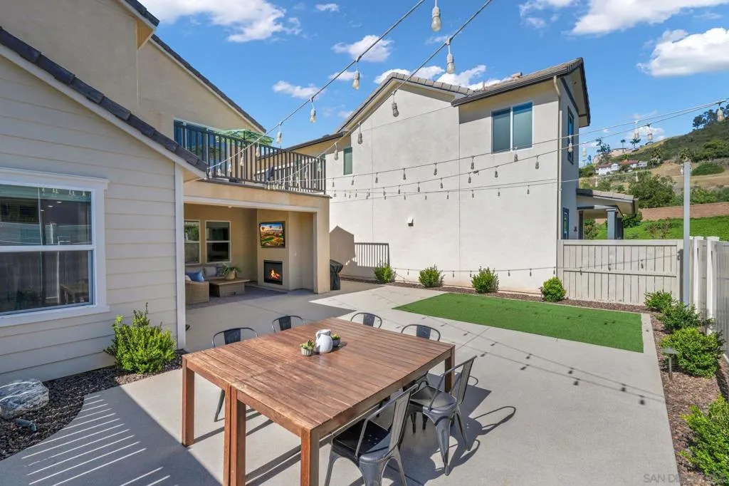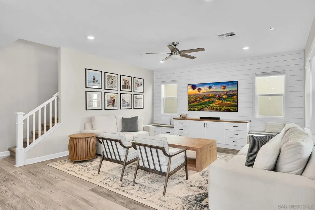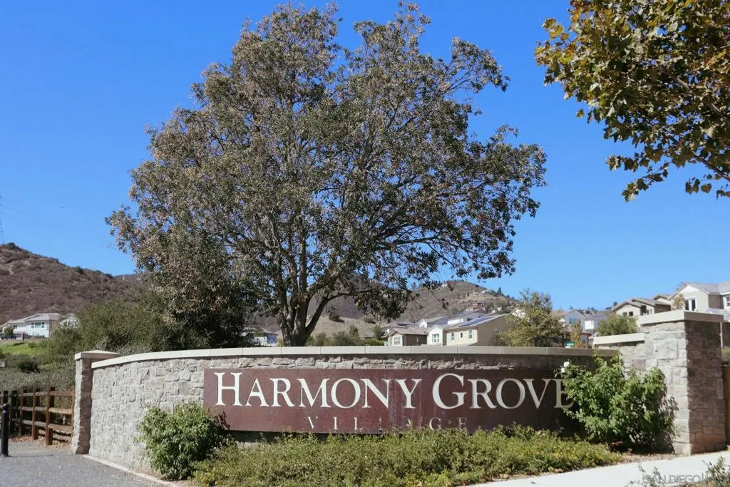 Welcome to Harmony Grove Village—one of Escondido’s most sought-after communities—where comfort, style, and thoughtful upgrades come together in this beautifully maintained detached home. With no shared walls and over $50,000 in improvements, this residence offers a clean, modern feel with everyday functionality. Inside, you’ll find wide-plank luxury vinyl flooring, custom living room built-ins, and upgraded window casings that elevate the space. The open layout flows seamlessly into the kitchen, featuring a custom backsplash, upgraded sink, and included appliances—ideal for both daily living and hosting. Upstairs, a versatile loft provides the perfect flex space for a home office, media room, or play area. Additional interior highlights include a built-in mudroom/drop zone, whole-house soft water system, and reverse osmosis drinking water. The backyard is set up for easy enjoyment, complete with added landscaping, mulch, decorative rock, lighting, and an outdoor TV that conveys—perfect for relaxing or entertaining. Energy-efficient features include a solar PPA (approx. $100/month) and an EV charger in the garage. Storage racks in the garage add even more practicality. Additional features include a Ring security system, window coverings throughout, and a long list of upgrades that make this home truly turnkey. Located in a vibrant neighborhood with parks, trails, and a strong sense of community—this is an excellent opportunity to own a well-appointed home in Harmony Grove Village. Move-in ready.