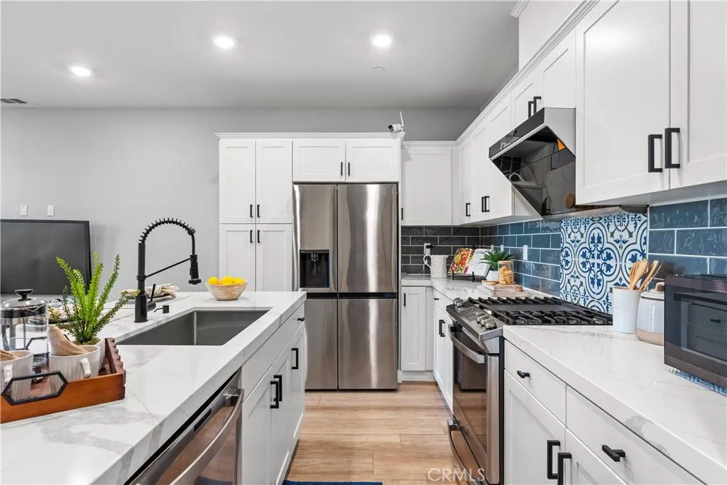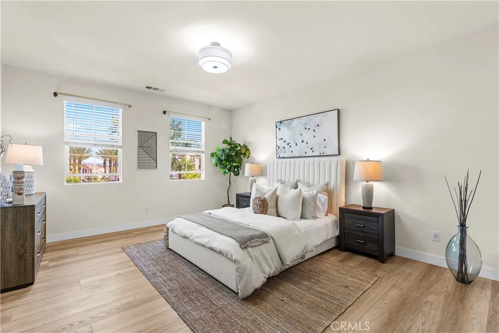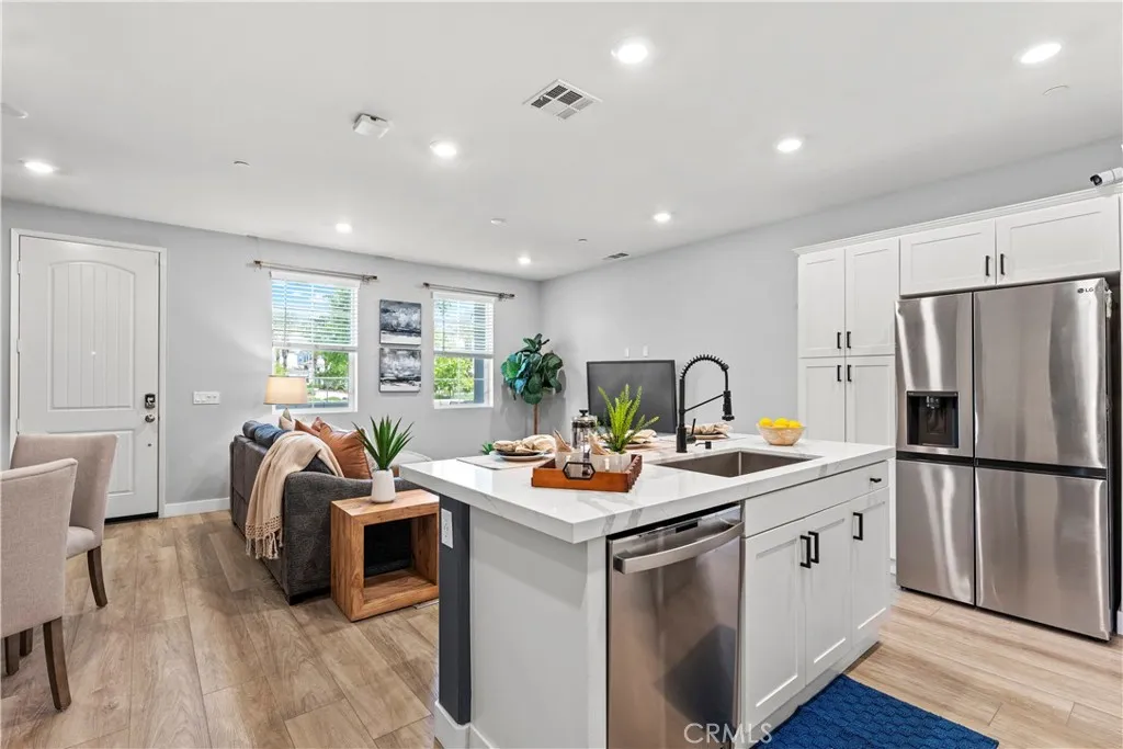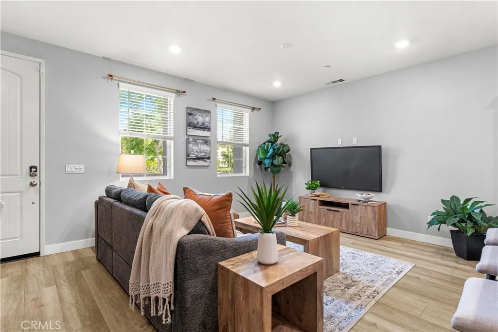 Welcome to 30444 Hopetown Lane, a stunning 3-bedroom, 2.5-bathroom home built in 2020, offering the perfect blend of modern, comfort, and an unbeatable location in one of Menifee’s most desirable communities.This turn-key home features a bright and contemporary interior with upgraded waterproof wood-look flooring throughout both levels, and stylish finishes. The chef-inspired kitchen is equipped with quartz countertops, high-end appliances, and a custom dry bar—perfect for entertaining. A custom porcelain blue backsplash enhances the kitchen's elegance and everyday use.The downstairs powder room has been upgraded with a quartz vanity, while all three upstairs bedrooms are generously sized and feature warm, upgraded lighting, creating a cozy and inviting atmosphere.What truly sets this home apart is its premium lot location. The front of the home opens to a wide, beautifully landscaped community greenbelt with no direct neighbors, offering exceptional privacy and a peaceful setting—ideal for relaxing, walking dogs, or enjoying time with family. The home is also conveniently located near the community park. Enjoy resort-style community amenities including a pool, spa, clubhouse, BBQ areas, fire pit, two dog parks, playground, and abundant guest parking—an uncommon and highly desirable feature in townhouse living.Prime location! Walking distance to Santa Rosa Academy and Menifee Countryside Marketplace, with most surrounding schools just a 5–8 minute drive away.Whether you’re a first-time buyer, growing family, or investor, this home offers an exceptional opportunity to experience the best of the Menifee lifestyle.Seller is highly motivated—don’t miss this incredible opportunity!
