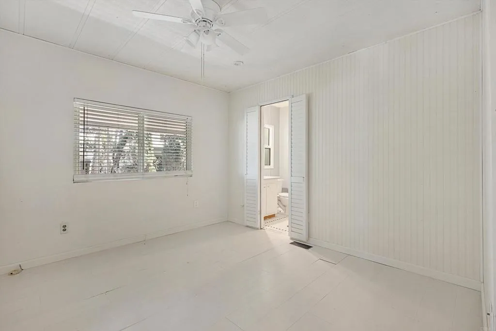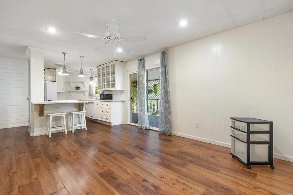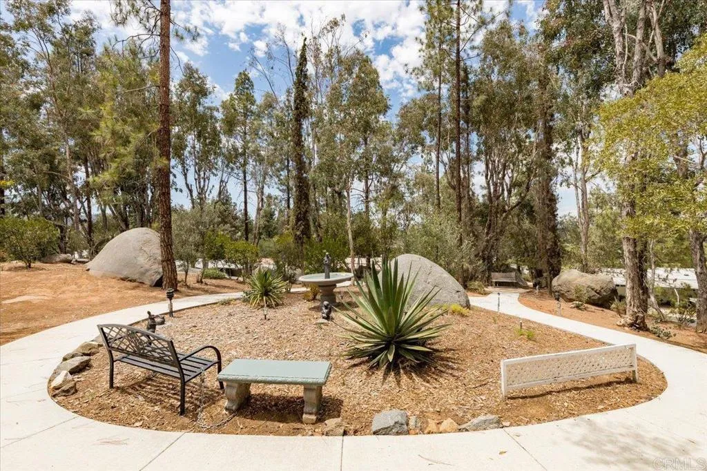 Great opportunity to own your own home in a beautiful 55+ community! This is a “Post HUD” home (built after June 1976) that qualifies for preferred financing, making ownership more accessible. The exterior is designed for both privacy and enjoyment, featuring a fenced yard ideal for small pets, a private covered porch, and a charming brick patio with pergola and low-maintenance turf—all perfectly positioned to capture panoramic northeast VIEWS. Two storage sheds provide added convenience. Newer roof (approx 5 years). Inside, the spacious layout offers both a separate living room and family room, with vaulted ceilings enhancing the light and openness of the living and dining areas. Thoughtful built-ins and hidden pantry storage can be found throughout the home. The remodeled farmhouse-style kitchen is both stylish and functional, featuring a large corner pantry and built-in dining bar—ideal for everyday living and entertaining. Dual-pane windows and five ceiling fans add to the home’s comfort and efficiency. Both bedrooms feature en-suite bathrooms, each tastefully updated. The primary suite offers two closets, including a walk-in, along with a spacious bathroom complete with double sinks and a large soaking tub. Located in Casa De Amigos, a unique 55+ community known for its peaceful, rural feel, residents enjoy lush greenery, natural boulder landscapes, and scenic walking paths. Community amenities include a clubhouse, pool, and spa. Conveniently located just 1.5 miles from Palomar Hospital, 2 miles from Lake Hodges, and close to shopping, dining, and home improvement stores. Only 10 minutes to Rancho Santa Fe, 20 minutes to Del Mar, and 30 minutes to San Diego’s beautiful beaches. Space rent is $874.42/month. Two small pets allowed with park approval. Second resident may be age 30+.