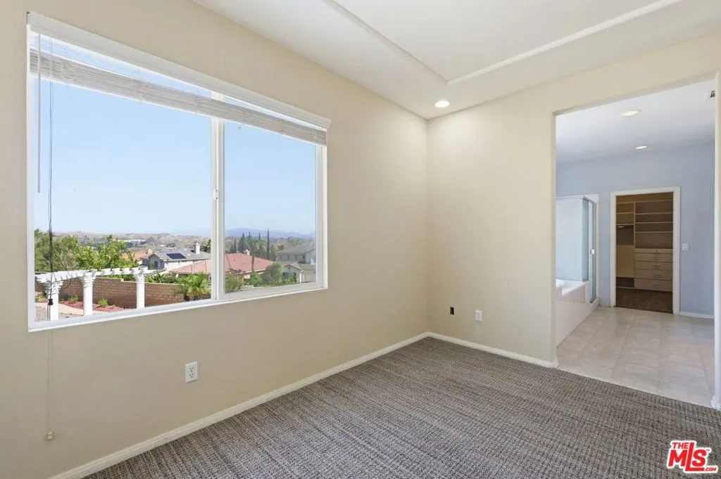Perched on a quiet cul-de-sac in Castaic, Ca., this expanded Richmond American Plan 3 home captures truly spectacular, panoramic views stretching across the valley floor and out to distant mountain ranges that shift colors with the light of the day. Built in 2003 and offering approximately 3,400 square feet, the residence features 6 bedrooms and 4 bathrooms on nearly a quarter-acre lot, ideal for those seeking space, flexibility, and a scenic backdrop to everyday living.Inside, soaring 12-foot ceilings and expansive windows frame the views while filling the home with natural light. The open-concept kitchen flows effortlessly into the family room, where a fireplace and built-in surround sound create an inviting central gathering space all oriented to take full advantage of the picturesque surroundings. Finishes include wood-look tile flooring, plantation shutters, and newer carpeting throughout.Designed with versatility in mind, the home includes a highly desirable downstairs bedroom and full bathroom, perfect for guests, extended family, or a private office. Upstairs, a separate private suite distinct from the primary bedroom offers additional flexibility for multi-generational living or long-term visitors. Select bedrooms feature walk-in closets for added convenience.The backyard is a true extension of the home, thoughtfully arranged with multiple sitting areas and a dedicated BBQ space each positioned to soak in the sweeping views and create the perfect setting for entertaining or quiet evenings under the open sky.Ideally located just minutes from everyday amenities, schools, sports complexes, county pools, and the outdoor recreation of Castaic Lake, with easy freeway access for commuting. With a low HOA of $99 per month and no Mello-Roos tax, this property offers exceptional value paired with unforgettable views.
