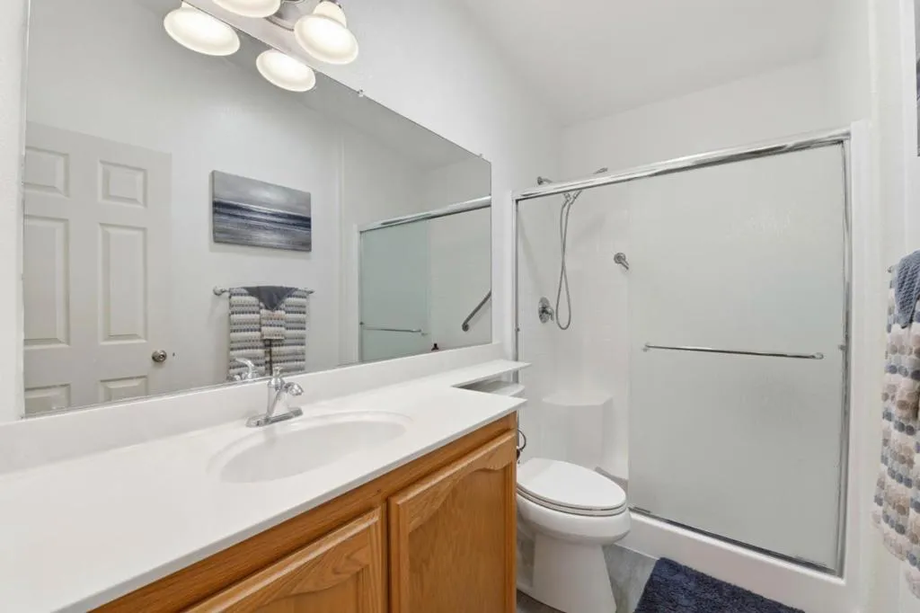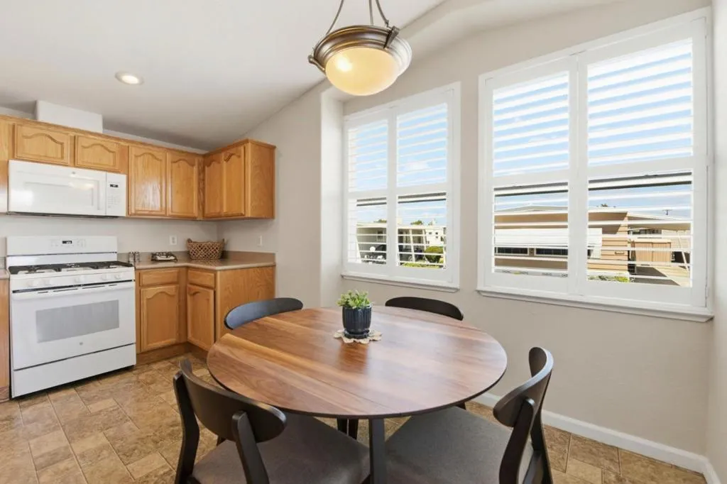 Location, location, location! Welcome to 232 Santa Susana in San Leandro, located in the highly sought after Mission Bay 55+ community, built around lifestyle and connection. This stunning manufactured home is one of the largest in the community, offering the perfect blend of comfort, convenience, and community. This thoughtfully designed 3 bedroom, 2 bath home features new interior and exterior paint, a charming new front porch with rails and Trex decking, and easy access to the kitchen and spacious living room filled with natural light. Enjoy soaring vaulted ceilings, expansive windows with elegant plantation shutters, skylights, and a cozy gas fireplace that adds warmth and character. The living and separate dining areas flow seamlessly into an inviting eat in kitchen with abundant cabinetry, generous counter space, and plenty of natural light from large windows and a ceiling skylight. The spacious primary suite offers a large walk-in closet and a spa inspired bathroom with a soaking tub, separate shower, and vanity. Two additional bedrooms, a full hall bath, and a laundry room with built in cabinetry complete the well-designed floor plan. Mission Bay offers a resort style with many amenities. Live where every day feels like a getaway! Schedule a tour before it's too late!