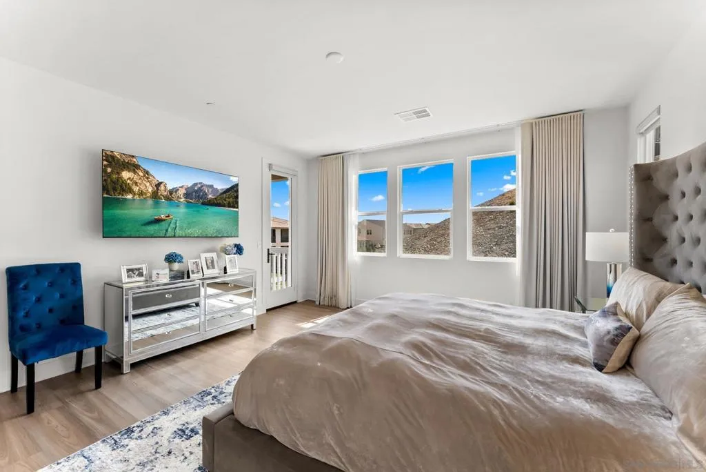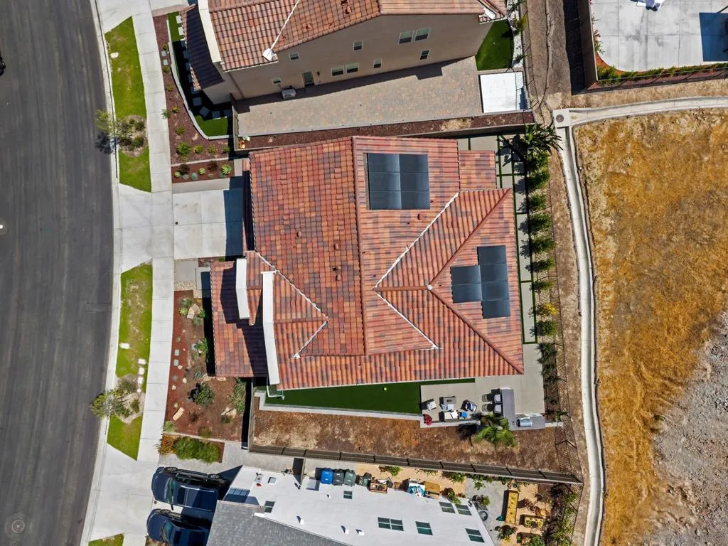 Welcome to this beautifully upgraded 5-bedroom, 4.5-bath home in Otay Ranch’s Cota Vera community within the desirable Savona neighborhood. Built in 2024 and offering approx. 3,445 sq. ft., this home combines modern comfort, flexible living space, and thoughtful upgrades for everyday life. The open floor plan centers around a spacious kitchen with an oversized island, built-in KitchenAid refrigerator, smart faucet, and ample storage, flowing into the dining and family room for easy gathering. Large sliding doors open to a covered California room with fireplace, perfect for relaxing, hosting, or enjoying indoor-outdoor living year-round. A highly desirable feature is the downstairs bedroom with its own full bath and closet, ideal for guests, multigenerational living, or added privacy. Also on the main level, the bonus room with custom built-in bookshelf offers flexible space for a home office, TV room, playroom, or optional bedroom. Upstairs, the versatile loft with built-in workspace and entertainment center provides more room for work, study, or play, while the custom primary closet with island and added built-ins add style and function. The home is enhanced by a custom-designed foyer wall and console table, created for the space and included with the home. Outside, the redesigned front and back yards feature low-maintenance landscaping, turf, irrigation, lighting, and a custom BBQ island with built-in grill, offering space to play, entertain, and unwind. Owned solar and smart-home features complete this turnkey home.