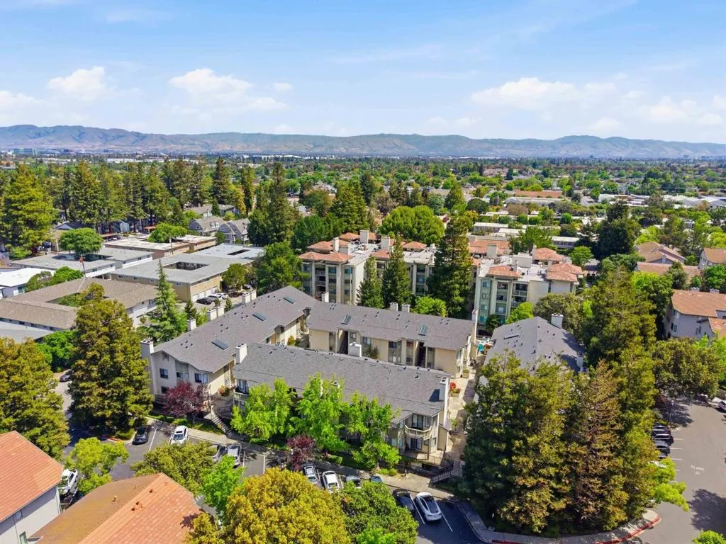 Welcome to a bright home, with vaulted ceilings, lots of windows, and an abundance of natural light. Living room features beautiful plantation shudders, a charming brick-faced, wood-burning fireplace and is an open, connected space to the kitchen, ideal for both everyday living and entertaining. Kitchen is designed for both function and style with lots of countertops, bar seating, GE stainless steel appliances, including an electric five-burner stove, plenty of cabinet storage with pull-out drawers for an efficient kitchen. Bedrooms are on opposite sides, offering maximum privacy. Primary suite features vaulted ceilings, plantation shutters, and French doors. Primary bath has large dual sink vanity with great storage, walk-in shower and a generous walk-in closet. Second bedroom has plenty of natural light and is perfect for guests, a home office, or additional living space. Home also has A/C, closet space and an in-unit washer and dryer. Home is located in the Miramar Terrace Gated community with pool, fitness center, clubhouse, and 2 secure parking spaces. HOA covers water, garbage, heating, exterior maintenance, and more. Great location allows easy access to Tech companies, shopping, dining, and access to commuter roads. Perfect blend of comfort, style, and location!