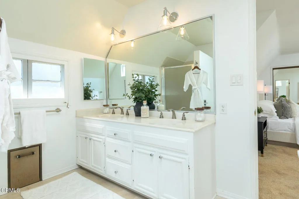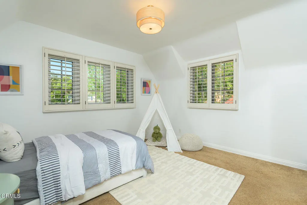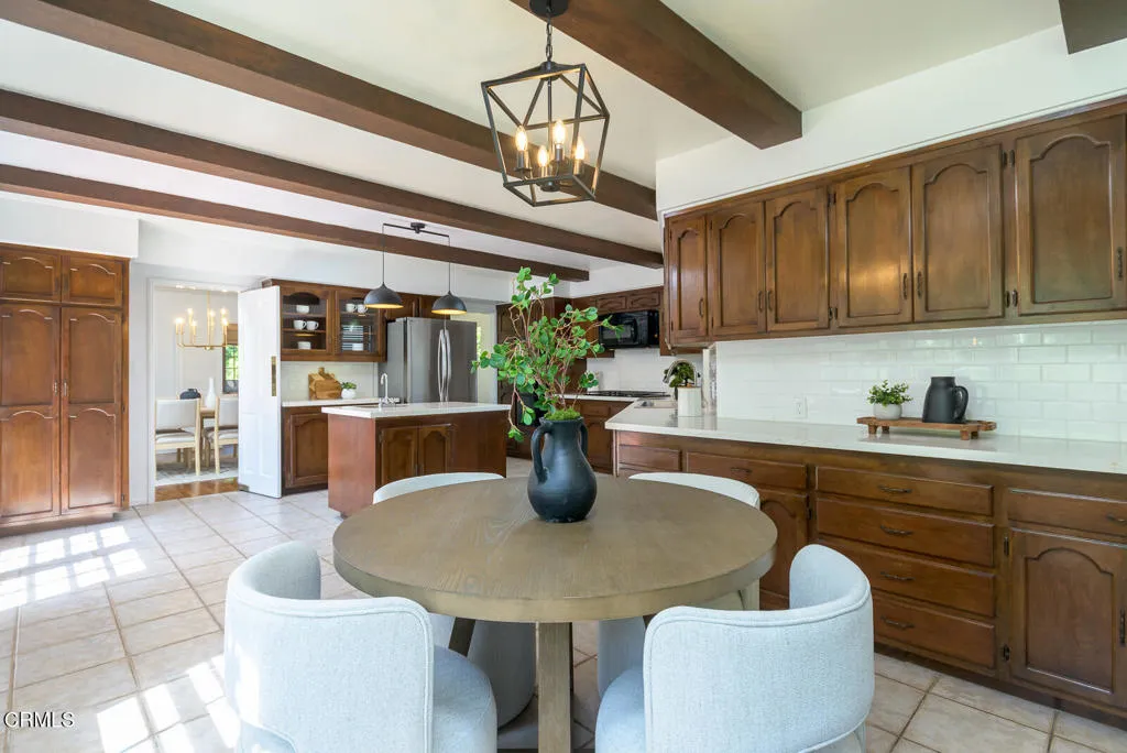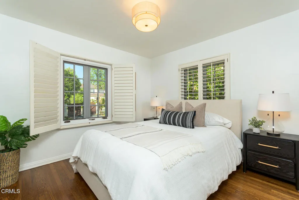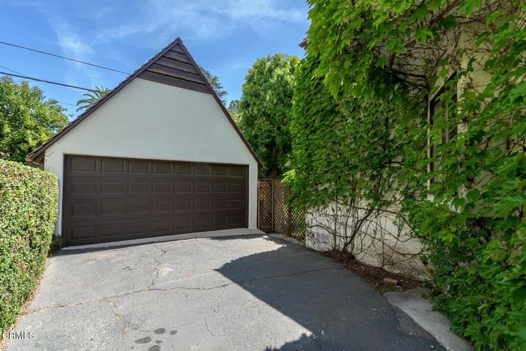 Charming English Tudor-style home in San Marino's Mission District with a sunlit layout and seamless indoor-outdoor flow. Set behind a gated brick wall, the property features a front lawn and a gently curving brick pathway leading to the entry, where mature landscaping creates a warm and inviting approach. Inside, a formal foyer opens to a spacious living room anchored by a fireplace, with a large picture window overlooking the front lawn and smaller windows flanking the fireplace that bring in natural light and architectural balance. The living room flows into a sunroom/family room wrapped in windows overlooking the backyard, where French doors and surrounding windows span much of the wall, bringing in natural light and views of the greenery outside while opening directly to the yard for a seamless indoor-outdoor connection. The formal dining room connects to both the sunroom and kitchen, offering an open yet defined space well suited for both everyday living and entertaining. The kitchen features a center island, abundant cabinetry, and a spacious breakfast nook with a built-in desk, shelving, and drawers, providing both functionality and flexible workspace. French doors from the kitchen lead to steps down to the backyard, reinforcing the home's natural connection between interior spaces and the outdoor setting. A main-level bedroom is located off the foyer, along with a three-quarter bath that also connects to the laundry room. The laundry room provides direct access to the driveway and a convenient connection to the kitchen, enhancing everyday ease. The driveway extends toward the rear of the property to a detached two-car garage, positioned within close proximity to the home. Upstairs, a window at the landing brings in natural light and a view of the driveway, creating a bright and welcoming transition to the upper level. A secondary bedroom is positioned to the left, with a hallway bathroom featuring dual sinks and a soaking tub to the right. The primary suite is located at the end of the hall and includes a bathroom with dual sinks, a separate shower and a soaking tub. The backyard features mature landscaping, open space, and an in-ground spa, offering a private and inviting outdoor setting for relaxation or casual gatherings. A home that blends classic character with everyday comfort in a desirable San Marino setting.