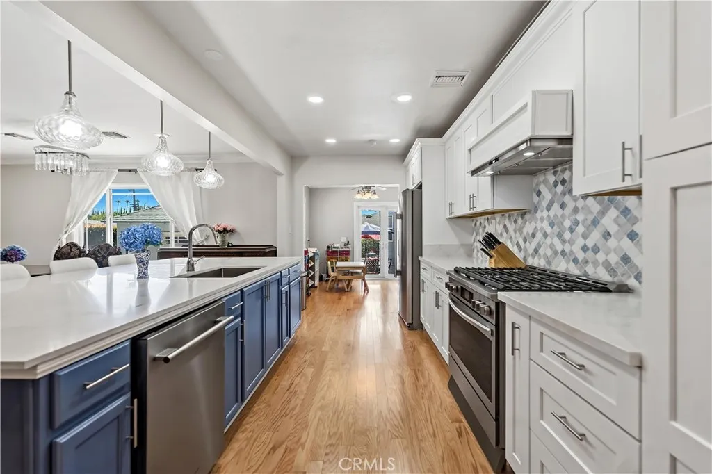 Welcome to 8384 Doris Ave., a special retreat in the heart of a quiet and friendly North San Gabriel neighborhood. This spacious 4-bedroom, 3-bathroom home features a generous 2,407 sq ft layout designed for easy living and plenty of privacy. Right as you walk in, you're greeted by a versatile living space that works perfectly as a quiet formal sitting area or a bright room for hobbies and play. The heart of the home is the open-concept living and dining area, which flows seamlessly into a beautiful kitchen remodeled in 2025. This dream space features a stunning blue backsplash, modern pendant lighting, new appliances, and an incredible walk-in pantry. A massive 11-foot island serves as the perfect centerpiece for loved ones to gather around for morning coffee or evening wine, all set upon newly updated engineered hardwood floors. The floor plan is smartly laid out in two separate wings featuring original hardwood flooring throughout. The front wing offers two comfortable bedrooms and a full bath, ideal for a quiet home office or guest space. The rear wing provides extra peace and quiet with two separate primary suites, both featuring their own en-suite bathrooms. For even more flexibility, the converted garage serves as a finished studio with its own 3/4 bath—ideal for a home gym, creative workspace, or a convenient pool house. Outside, the backyard is a private paradise made for the Southern California lifestyle. Enjoy a dip in the heated pool and spa, relax on the covered deck, or pick fresh fruit from the mature pomelo, fig, guava, and loquat trees. Located in the sought-after San Gabriel School District, this home is close to local favorites like Ducks Restaurant, Bhanu Indian Cuisine, Howie's Market, 168 Market, Sun Nong Dan, and Klatch Coffee. Whether you are looking for extra space, multi-generational potential, or a peaceful sanctuary, this home is the perfect find.