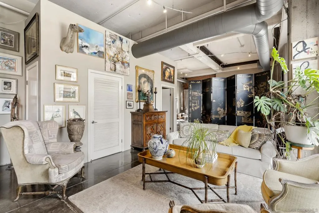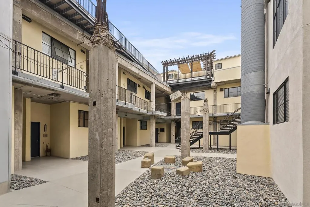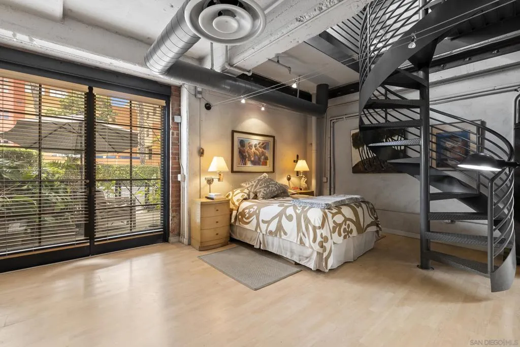 Rarely available two-story loft in Cable Lofts, one of San Diego’s most iconic industrial communities designed by Jonathan Segal. Originally converted in 1997 from a Pacific Bell switching station, this 2 bed, 2 bath corner residence blends authentic character with modern livability. Featuring soaring 18-foot ceilings, polished concrete floors, exposed red brick, and striking concrete beams, the open-concept layout is filled with natural light from expansive dual-pane windows on two sides, offering bright north and west exposure with refreshing cross ventilation. Currently configured as a one-bedroom, it can easily be converted back to a two-bedroom with a bedroom and full bath on each level. A Juliette balcony and private outdoor space enhance indoor-outdoor flow, while the home also includes two assigned parking spaces (one garage, one exterior), EV charger capability, and a large private secured storage cabinet. Enjoy low HOA fees and access to a beautifully maintained private park with mature trees, grassy areas, and unique art installations. With a Walk Score of 96, you’re just steps from top-rated restaurants, shopping, entertainment, and public transportation—offering the ultimate urban lifestyle in the heart of Hillcrest.