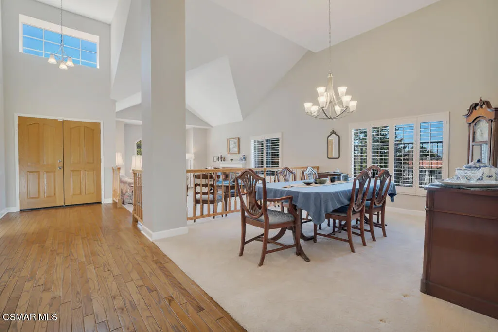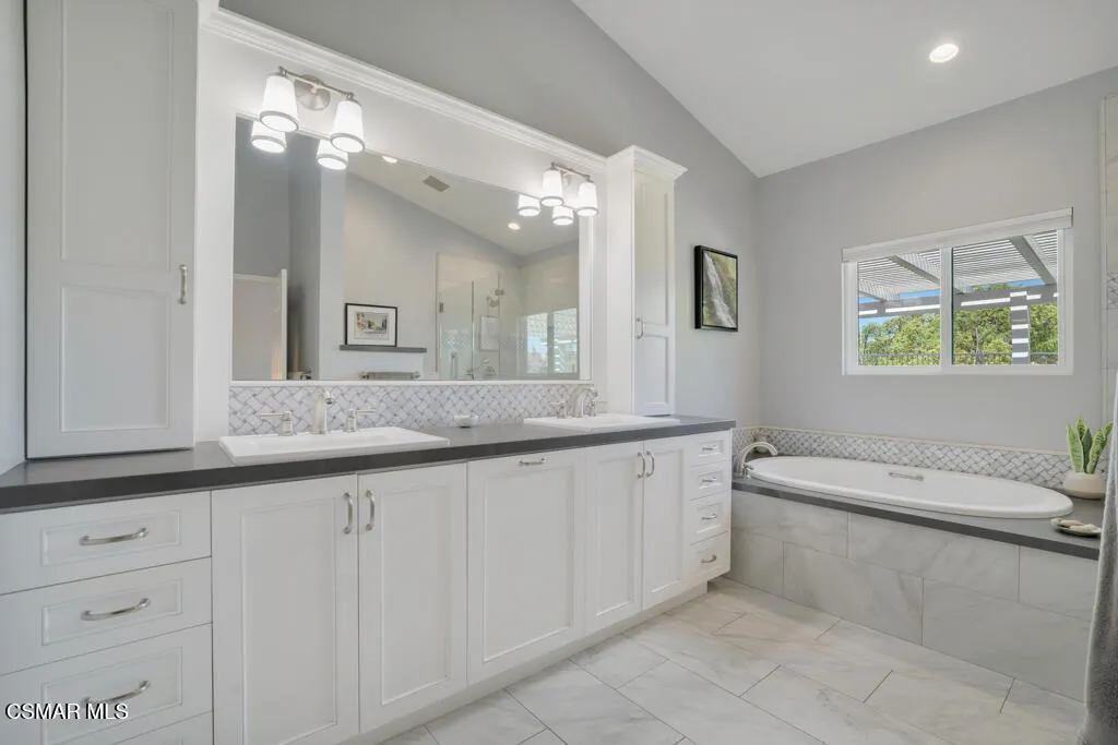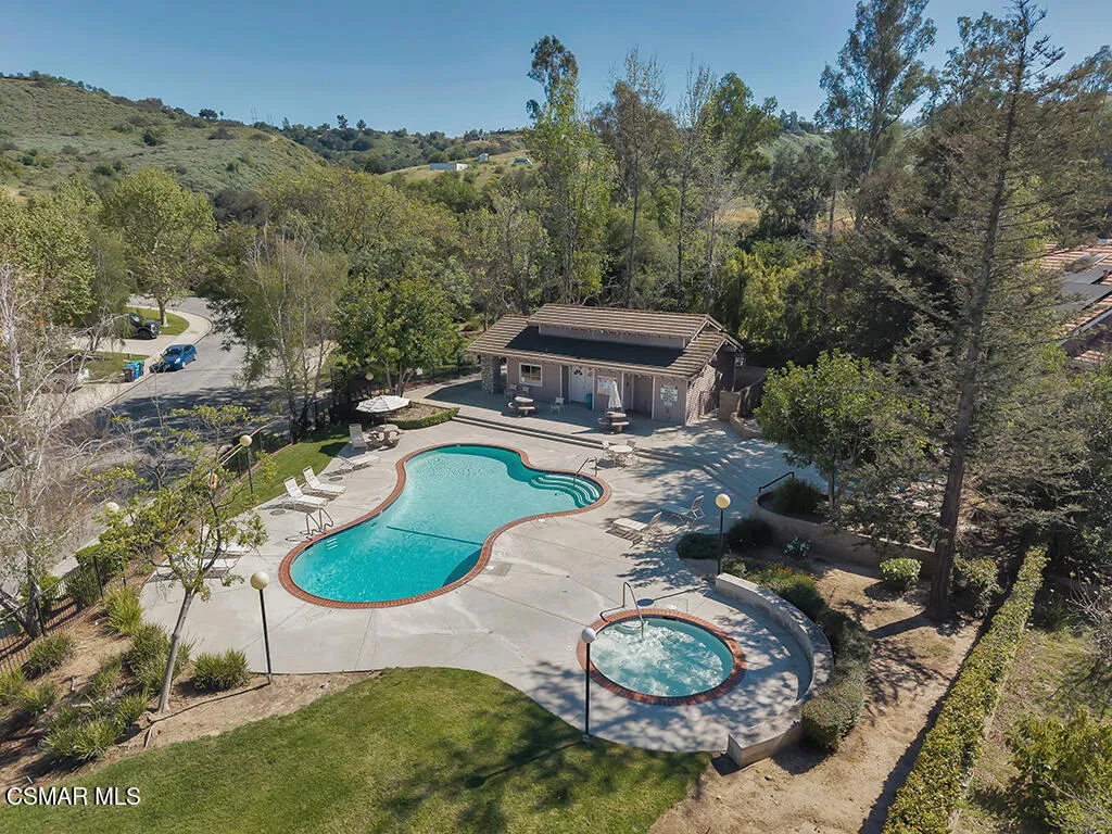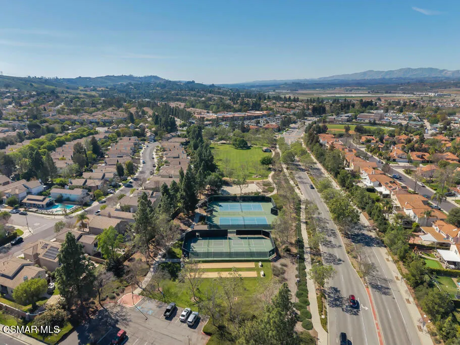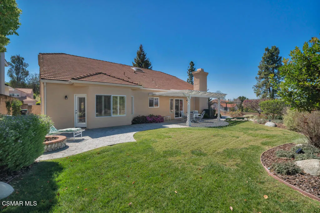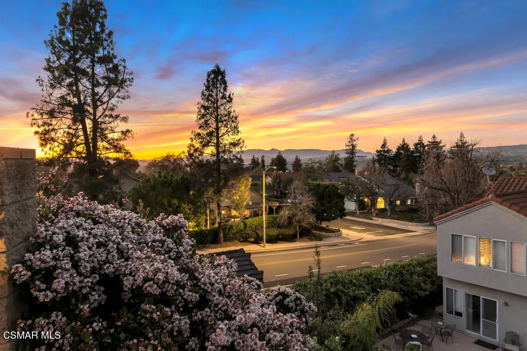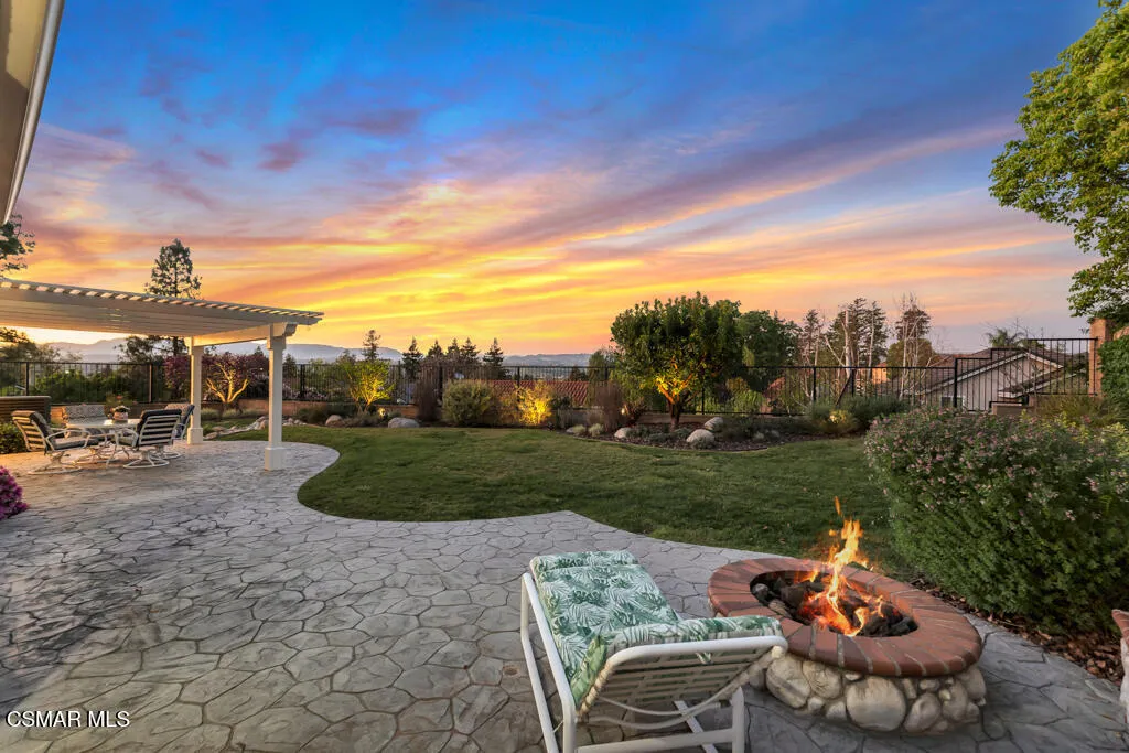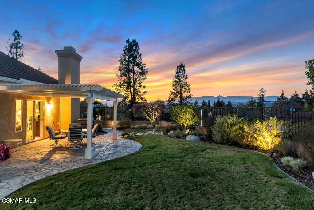 Offering 3 bedrooms plus an office, 2.5 bathrooms, and 2,679 sq. ft. on a 12,022 sq. ft. corner lot, this single-story home is positioned on a hilltop cul-de-sac in desirable South Moorpark's Buttercreek II Estates--capturing wide-reaching views while maintaining a private setting framed by mature trees and established landscaping. A broad driveway leads to the three-car garage, while stone accents, defined planting beds, and a front patio create a welcoming approach. Step through the double-door entry into a home defined by volume, natural light, and clean lines. Vaulted and angular ceiling details carry throughout, while expansive windows with shutters draw in light. Real wood plank flooring extends through the entry, kitchen, breakfast nook, and hallway. Just off the entry, a double-door office provides a flexible living option. Anchored by a brick fireplace and large arched window, the living room flows into the dining area with a modern chandelier--creating a connected space for everyday living and entertaining. The kitchen features quartz countertops, KitchenAid stainless steel appliances, and a deep Blanco sink beneath a wide garden window. A skylight above the breakfast nook enhances natural light, while the added built-in cabinetry highlights floor-to-ceiling pantry towers with deep pull-out drawers, a large central cabinet, glass display doors, wine storage, and additional pull-out shelving--significantly expanding kitchen storage and functionality. The adjacent family room offers vaulted ceilings, a second fireplace, and direct backyard access. Privately positioned, the primary suite includes vaulted ceilings, backyard access, a walk-in closet, and an updated bath with dual vanities, soaking tub, and glass-enclosed shower with bench seating and dual shower heads. Secondary bedrooms are supported by a hall bath and powder room. The backyard offers a covered stamped concrete patio, lawn, mature landscaping, natural stone accents, and a built-in firepit with brick detailing and a raised planter. An iron fence preserves the view line while maintaining privacy. Additional features include an interior laundry room with storage and a three-car garage with built-in cabinets and side yard access. The HOA maintains the front yard and slope, and residents enjoy community pool, spa, recreation room, greenbelts, and walking paths. Conveniently located less than 10 minutes from the Moorpark Metrolink and Amtrak station, with easy access to the 118, 23, and 101 freeways and major routes including Tierra Rejada, Los Angeles Avenue, Santa Rosa Road, and Moorpark Road. A rare single-story opportunity combining space, privacy, and a well-designed layout--set in a hilltop cul-de-sac location that offers both everyday comfort and convenient access throughout Moorpark and beyond.