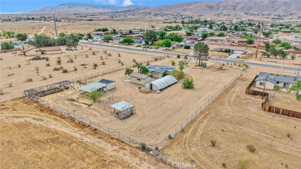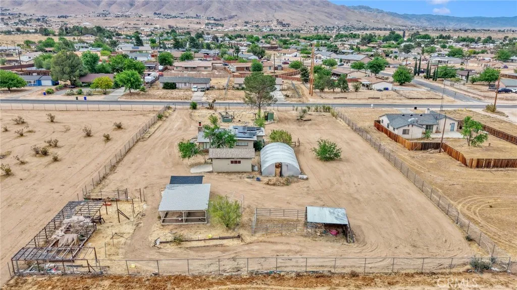 This single-family home in Apple Valley offers a unique opportunity to create your ideal desert retreat with plenty of space and versatility. Situated on an expansive 54,450 sq ft lot, this 3-bedroom, 1-bath residence features a cozy living room fireplace and solar panels for added energy efficiency. Outside, the possibilities are endless with RV parking, a detached garage, fenced yard, horse stable, chicken coop, and ample yard space. Enjoy beautiful mountain views and wide-open space, ideal for those seeking a rural lifestyle with room to grow, work, and play. BRAND NEW SEPTIC TANK.