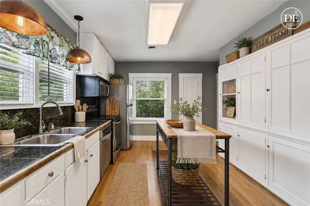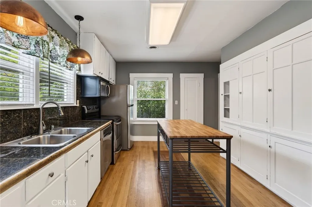 Step into timeless charm with this beautifully maintained 1935 bungalow, perfectly located just one block from vibrant downtown Lakeport. Start your mornings on the inviting front porch, where the classic details and welcoming vibe speak for themselves. Inside, warm hardwood floors flow throughout the home, complemented by modern stainless-steel appliances. Stay cozy all winter with an efficient wood stove and mini-split heating systems for year-round comfort. The thoughtfully designed layout includes three bedrooms and a full bath, plus a bright indoor laundry room with oversized windows overlooking the lush, landscaped backyard. A spacious bonus room—freshly carpeted—offers incredible versatility as a home office, gym, craft room, daycare space, or guest retreat. Outside, the private backyard is a true oasis, with ample room for a garden, outdoor dining, or simply relaxing in one of several charming seating areas. Additional features include a convenient one-car garage and plenty of off-street parking in the driveway. This move-in-ready gem is perfectly situated for an easy lifestyle—just steps away from Lakeport’s best amenities. Enjoy evening concerts in the park, stroll to local shops, or dine at nearby restaurants and cafes. If you’re looking for character, comfort, and unbeatable location, this beautiful bungalow is a must-see. Come experience it for yourself!