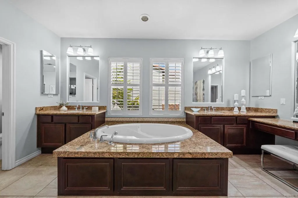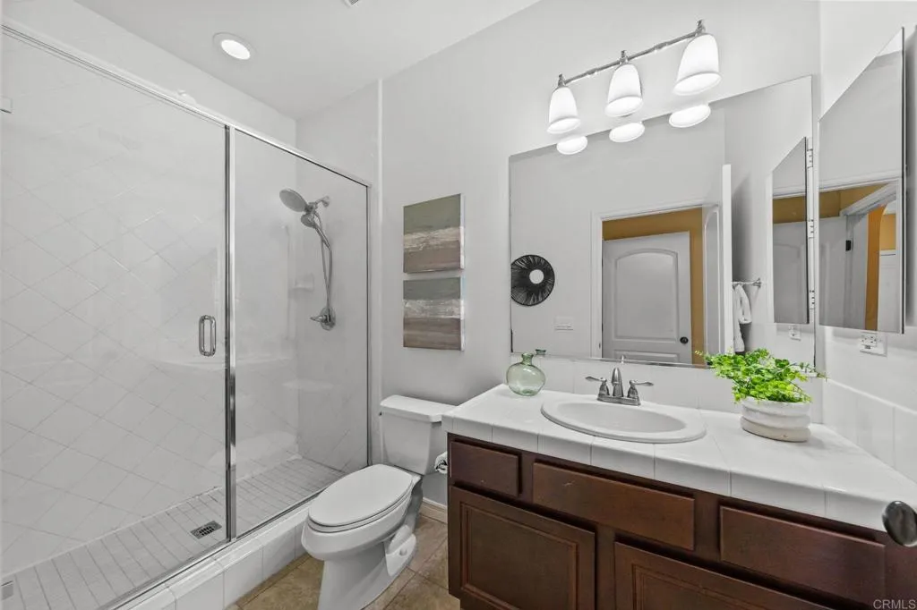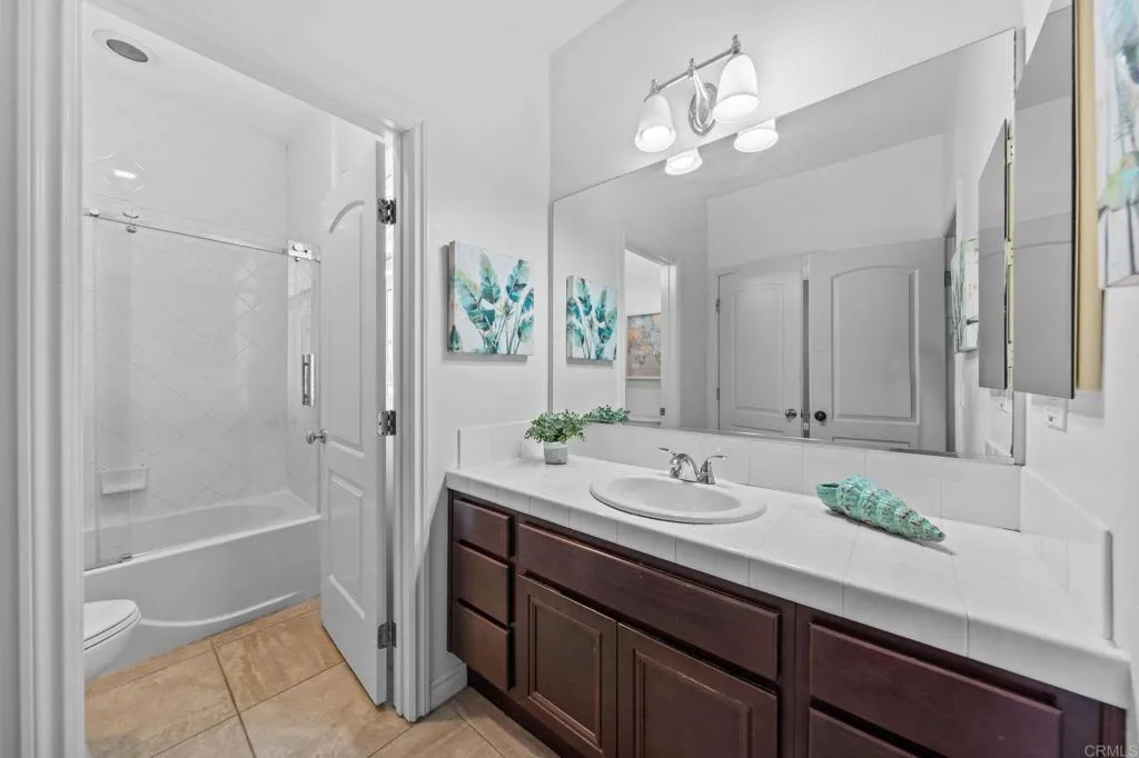 Located in the highly sought-after Arrowood master-planned community in Oceanside, this expansive 5-bedroom, 4.5-bath home offers approximately 4,159 SQFT of thoughtfully designed living space, featuring a flexible floor plan ideal for multigenerational living, remote work, and modern Southern California lifestyles. The home welcomes you with spacious living areas, soaring ceilings, and a well-appointed kitchen featuring granite countertops, double ovens, gas range, and abundant cabinetry, opening seamlessly to the main living areas for everyday living and entertaining. The bedroom layout is both functional and versatile. On the main level, you’ll find a private bedroom located next to a full bathroom, creating a convenient setup for guests or extended family. This area can also be easily closed off to create a private guest or in-law suite. Upstairs, the spacious primary suite offers a comfortable retreat with generous proportions and room to unwind. The second level also features three additional bedrooms, including two connected by a Jack-and-Jill bathroom, while the third bedroom has access to another full bath. Adding even more flexibility is the ginormous bonus room, currently set up as a home movie theater, but easily adaptable as a game room, media room, home gym, playroom, or additional living space. Step outside to your own private backyard oasis designed for true California indoor-outdoor living. The resort-style yard features a solar-heated pool and spa with a water slide, creating the perfect space for entertaining, relaxing, and hosting unforgettable gatherings. The home also includes owned solar, offering energy efficiency and long-term savings. Situated just minutes from the Arrowood Golf Course, widely recognized as one of the top public golf courses in North County San Diego, the community also offers desirable amenities including parks, a community pool, pickleball courts, and scenic walking paths. Conveniently located near beaches, shopping, dining, schools, and freeway access, this home offers the perfect blend of space, lifestyle, and location in coastal Oceanside.