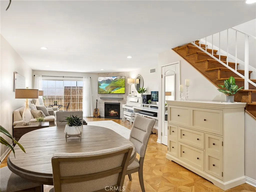 Welcome to this beautifully updated 2 story townhouse offering 1,125 square feet of thoughtfully designed living space. This 2 bedroom, 3 bathroom home features a formal entryway that opens into a spacious and inviting layout, including a dedicated formal dining area and a bright living room complete with a cozy fireplace. The remodeled kitchen is equipped with sleek stainless steel appliances, modern finishes, and ample cabinetry, perfect for both everyday living and entertaining. Hardwood floors run throughout, adding warmth and elegance to every room. Both bedrooms are generously sized, and all three bathrooms have been tastefully remodeled with contemporary finishes. The primary bedroom offers peaceful mountain views, creating a relaxing retreat. A unique highlight of the home is a converted closet that serves as a fully functional voiceover recording room, ideal for creatives or remote professionals seeking a quiet, private workspace. Additional features include central heating and air conditioning, in-unit laundry, and a large private patio, freshly painted and enhanced with bamboo for added privacy, providing an ideal space for outdoor relaxation or entertaining. The home also includes 2 side-by-side parking spaces in the garage, complete with storage cabinets and shelving. The well-maintained, gated building offers privacy and a quiet atmosphere, with only eight units. Recent building upgrades include a new roof, fascia, and gutters installed in 2024, along with new windows and refreshed stucco. Three new skylights were added during the roof installation, bringing in abundant natural light, while recessed lighting and fresh paint further enhance the home’s appeal. Conveniently located within walking distance to a variety of amenities, this home combines style, comfort, and modern upgrades in a highly desirable townhouse setting.