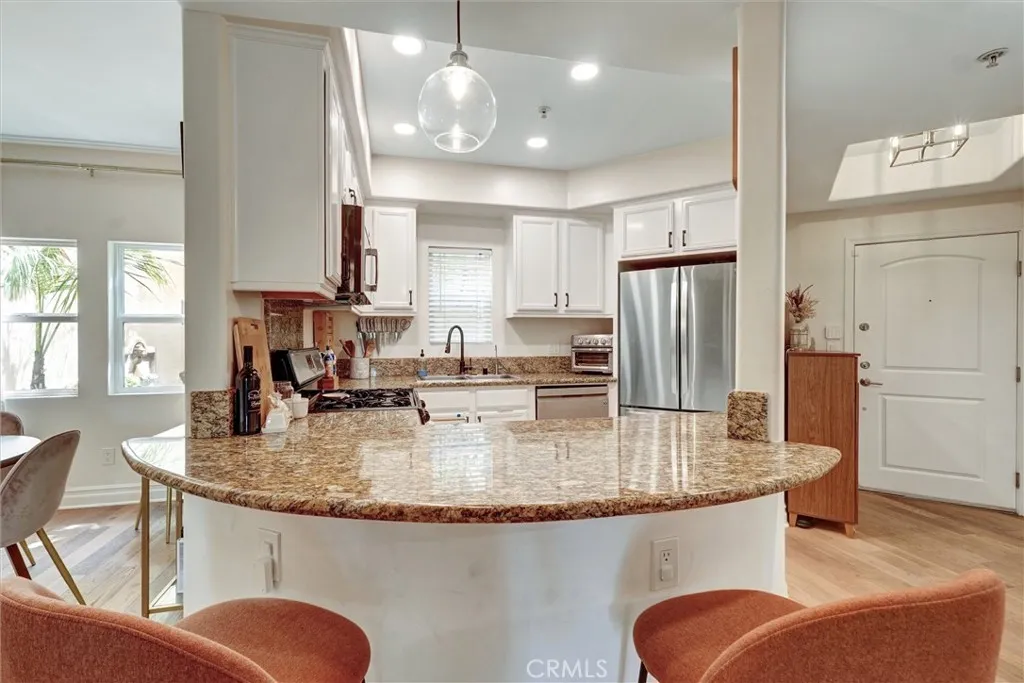 Beautifully updated 3 bedroom, 2 bathroom condo in Van Nuys offering 1,420 square feet of thoughtfully designed living space where comfort, functionality, and style come together seamlessly. From the moment you arrive, the entry creates a sense of separation and privacy rarely found in condo living, setting the tone for what’s inside. As you step through the door, you’re welcomed by wide-plank flooring, clean lines, and a natural flow that immediately feels open, bright, and inviting. The main living area centers around a cozy fireplace and opens effortlessly to a private balcony through sliding glass doors, allowing natural light to pour in while extending your living space outdoors—ideal for relaxing mornings or unwinding at the end of the day. The kitchen is both functional and well-positioned, featuring granite countertops, stainless steel appliances, and counter bar seating that connects naturally to the dining and living areas. Whether you’re hosting or simply enjoying everyday life, the layout keeps everything within reach while maintaining an open, connected feel. Recent updates include new flooring, fresh interior paint, and an updated primary bathroom vanity, giving the home a clean, modern, move-in ready feel without the need for immediate upgrades. The floor plan offers flexibility with three well-sized bedrooms that can easily adapt to your needs—whether that’s a home office, guest room, or additional living space. The primary suite provides a comfortable retreat, while in-unit washer and dryer hookups add everyday convenience. Beyond the home itself, the setting adds another layer of appeal. The building features a peaceful, well-maintained environment, and opportunities to own here are rare—making this a unique chance to secure a home in a community where properties are not often available. Located in the heart of Van Nuys, you’re positioned with convenient access to shopping, dining, and major freeways, creating an ideal balance between comfort at home and connectivity to everything Los Angeles has to offer. This is more than just a condo—it’s a space that feels easy to live in from the moment you walk through the door.