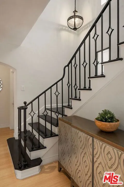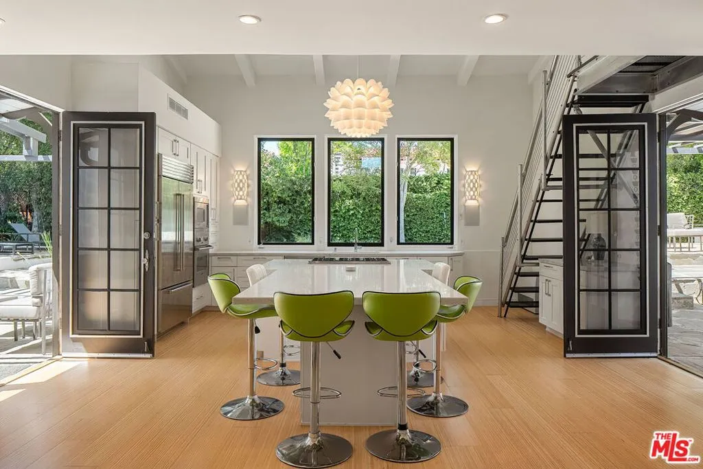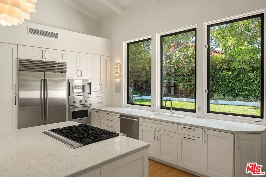 Perched in one of Westwood's most coveted enclaves Comstock Hills, this stunning contemporary residence at 1323 Club View Drive offers sweeping panoramic views over the Los Angeles Country Club, glittering city lights, and majestic mountains beyond. Spanning 4,839 square feet, this impeccably designed 6-bedroom, 7-bathroom home welcomes you with warm wood floors and expansive, light-filled living spaces framed by oversized windows that capture serene garden greenery. A gracious foyer flows into a sophisticated living room anchored by a travertine fireplace, leading seamlessly to a formal dining room and a fully renovated gourmet kitchen beneath soaring vaulted ceilings. Designed for both entertaining and everyday living, the kitchen features a large seated island, premium Viking and Sub-Zero appliances, and direct access to outdoor patios. The main level also features a state-of-the-art home theater with 7-speaker surround sound, a guest suite, and access to a versatile lower-level den. Upstairs is an exceptional primary retreat complete with a spa-inspired bathroom featuring a steam shower, soaking tub, and a private sitting area with an oversized picture window showcasing breathtaking views. A loft-style office with built-ins and an upstairs laundry area add convenience and functionality. The private backyard is a true oasis, enveloped by mature hedging and lush landscaping with a natural lawn. Multiple outdoor entertaining areas include a flagstone patio with a fire pit and automatic shades, a tranquil water feature, and an alfresco dining space with built-in banquette seating. Ideally located just moments from Beverly Hills, Westwood Village, premier shopping and dining, and within the highly sought-after Fairburn Avenue Elementary School bounds, this remarkable residence delivers lifestyle and location in one of Los Angeles' most prestigious neighborhoods.