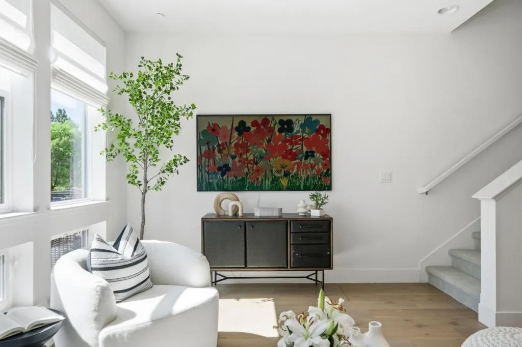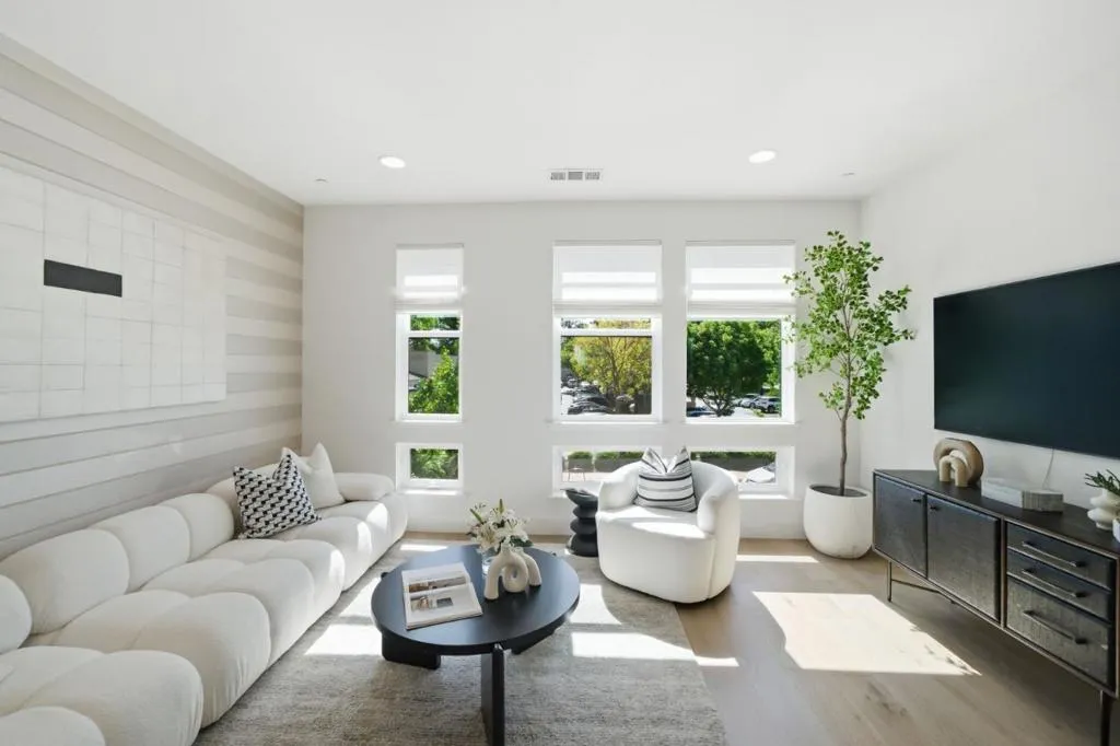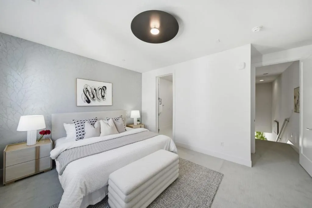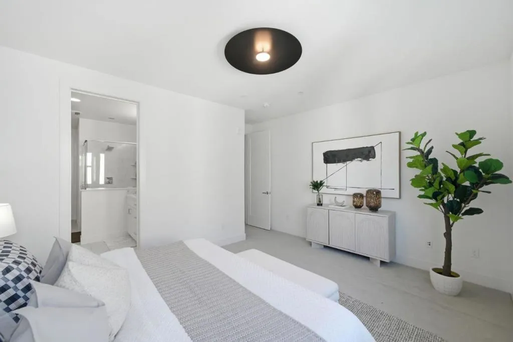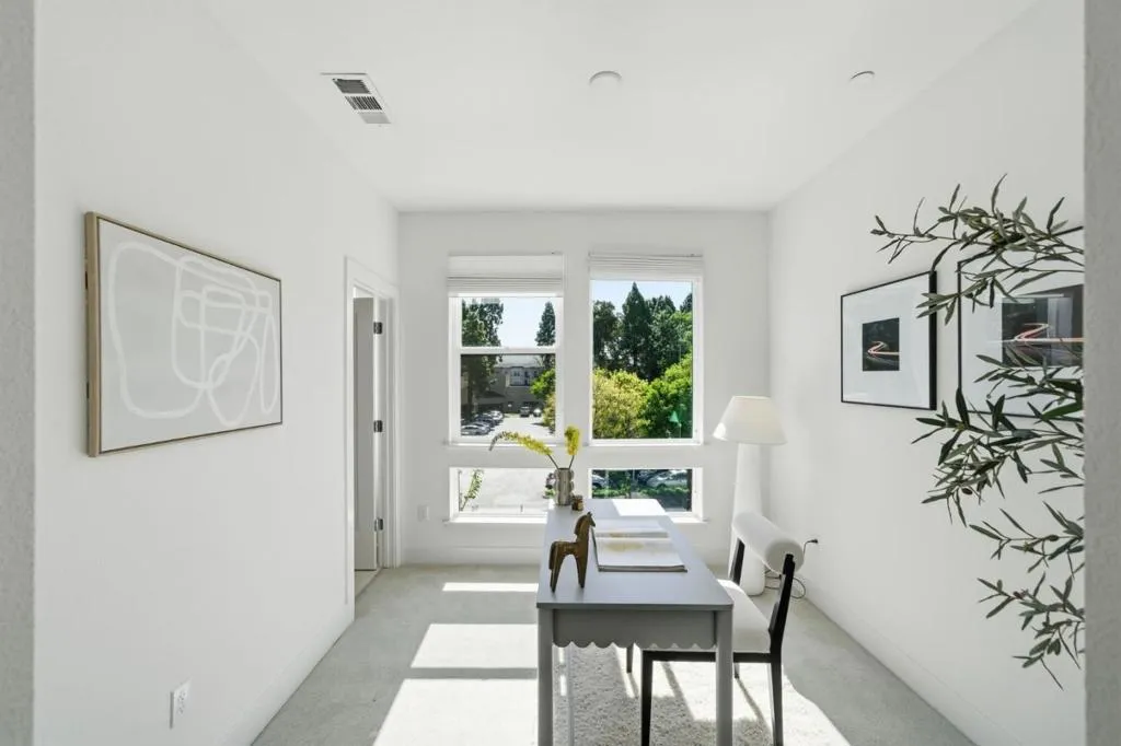 Discover modern luxury in the heart of the vibrant Locale @ State Street community. This stunning 3b/3b contemporary residence is defined by a bright, open interior and a thoughtful layout that balances elegance with function. Designer touches are featured throughout, including custom wallpaper and enhanced lighting that elevate the home's feel. The gourmet kitchen boasts sleek shaker cabinetry, luxury LVP flooring, Bosch appliances, and a smart refrigerator, all flowing seamlessly into the living space. The main level features a convenient bed and full bath, perfect for guests or a home office. Upstairs, discover a layout designed for privacy with two spacious en-suites. The expansive primary suite serves as a true retreat with a spa-like atmosphere and ample closet space. Beyond the living areas, the 2-car garage is finished with premium metallic epoxy flooring, creating a neat, flexible space ideal for a home gym or recreation room. Enjoy an unmatched lifestyle in downtown Fremont, steps away from walkable restaurants, shops, Whole Foods, and Target. With easy commuter access to BART, I-880, and the Dumbarton Bridge, this property connects you effortlessly to the best of the Bay Area. Experience a perfect blend of high-end upgrades and an unbeatable location