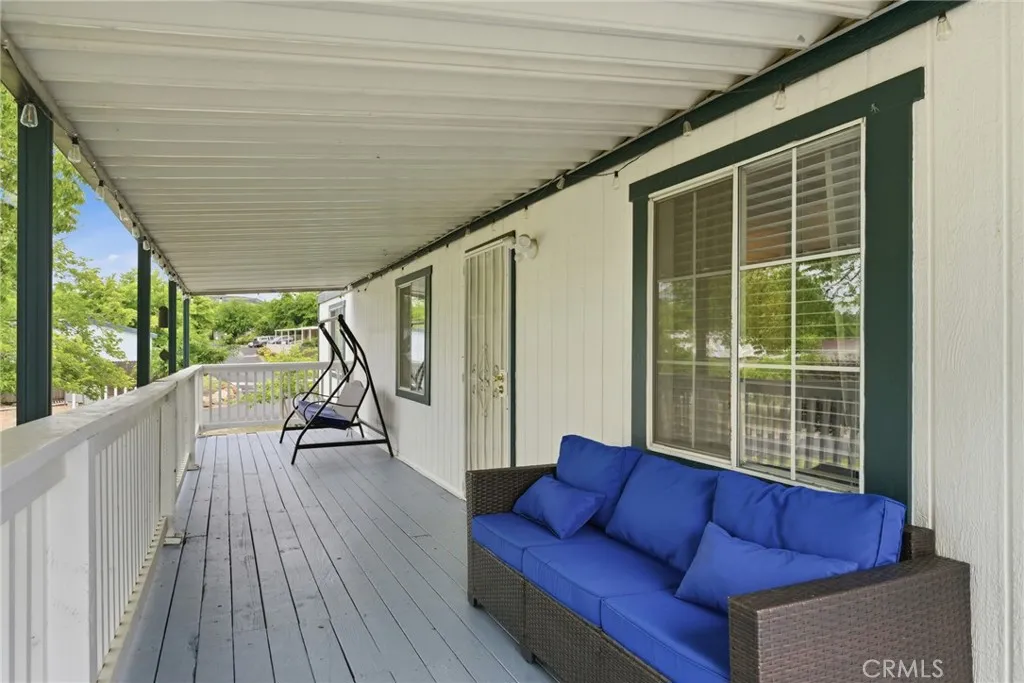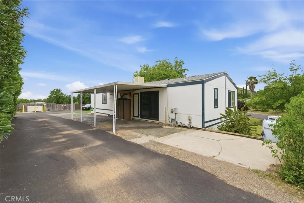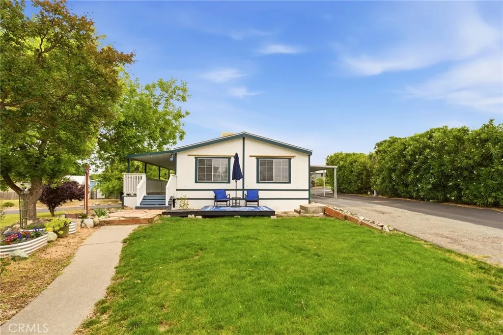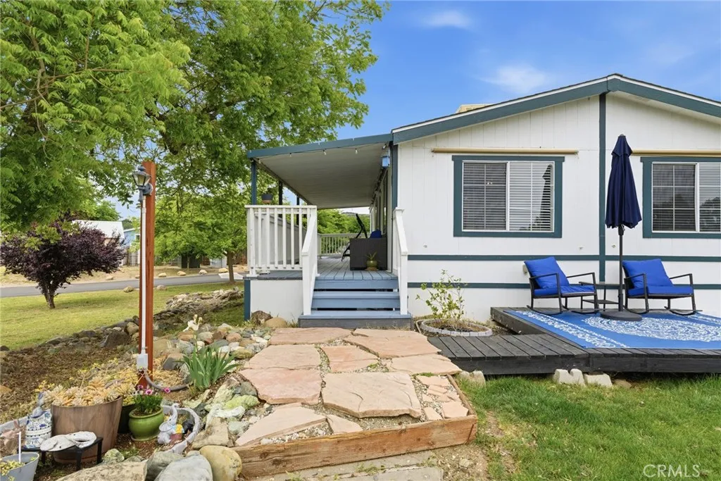 Welcome home to this beautifully refreshed residence nestled in the Foothills Community, where comfort, style, and one of the best lot locations the community has to offer come together. Perfectly positioned on a premium corner lot right, this home offers a rare sense of privacy within the park. Set apart from neighboring homes with open space, scenic views, and a generously sized yard that creates a more spacious, less crowded feel. From the moment you arrive, you’ll appreciate the inviting curb appeal featuring a newly built front deck, fresh exterior paint on the porch, and a charming lawn and garden bed area which is ideal for relaxing or enjoying the peaceful surroundings. Inside, the home has been thoughtfully updated with newer carpet, updated baseboards, and fresh finishes throughout. The kitchen offers updated flooring, modern light fixtures, and a newer refrigerator, creating a clean and functional space for everyday living. A stylish barn door adds both character and convenience, maximizing space while giving the home a trendy touch. The bathroom has been refreshed with updated tile and a newer sink, continuing the move-in ready feel. Additional upgrades include updated lighting and a ceiling fan for added comfort, along with the peace of mind of a newer roof. Located within the highly desirable Durham Unified School District, the home also offers convenient school bus service directly to the community. Whether you're looking for low-maintenance living or a cozy place to call home, this property stands out not only for its thoughtful updates, but for its prime, private location that truly sets it apart.
