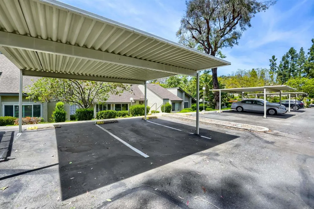 Very secluded and Spacious end unit townhome ranch style with no one above or below featuring new custom paint, newer laminated wood flooring, large living room with vaulted ceilings, newer dual pane windows and slider. Large Master bedroom with walk-in closet and large walk-in shower plus attached laundry room. Spacious Country kitchen w/access to the patio and the storage shed. Great location with canyon view and 2 assigned parking spaces. Access to the community pool, spa & tennis courts.