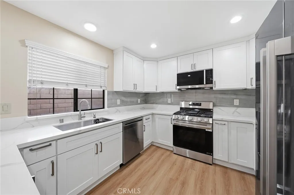 Fabulous two-story end-unit home in a gated La Habra community featuring 4 bedrooms and 2.5 bathrooms. This home has been fully refreshed with brand-new flooring and a beautifully remodeled kitchen with all-new appliances, including refrigerator, dishwasher, stove, oven, microwave, and washer/dryer. Be the first to enjoy these premium upgrades! The bright, functional layout offers abundant natural light and added privacy as an end unit. Ideally located near La Bonita Park, shopping on Beach Blvd, and within highly rated local school districts. This home is move-in ready and ready for its first residents to call it home.