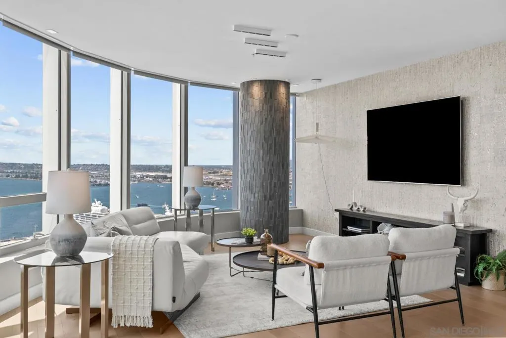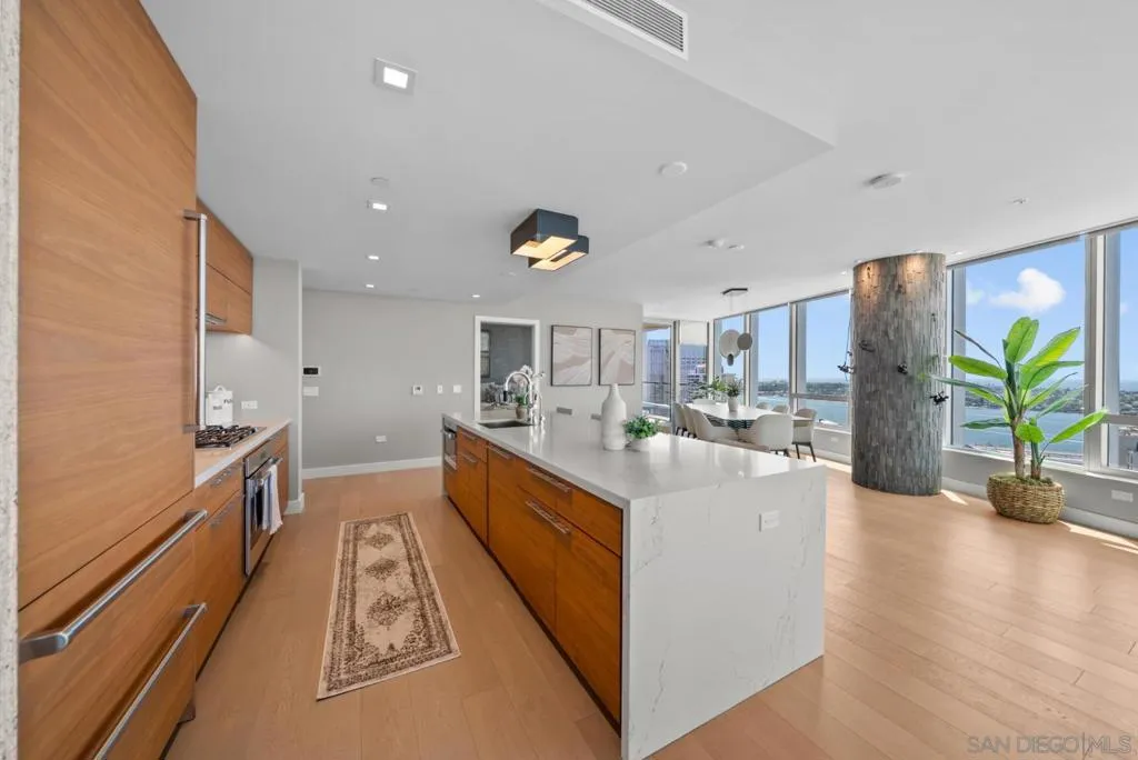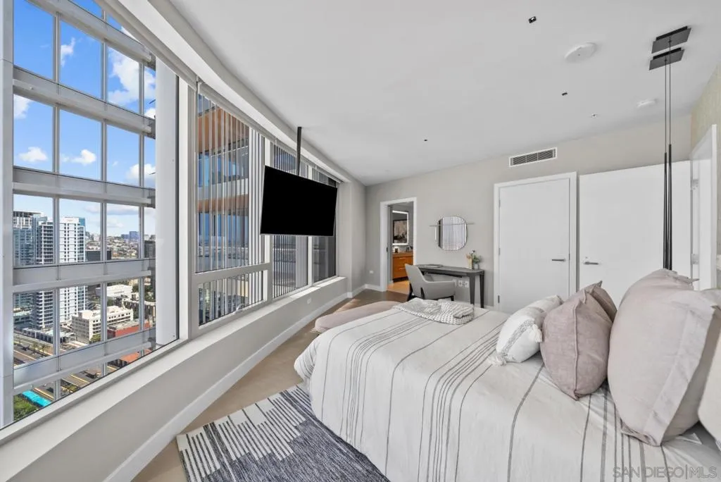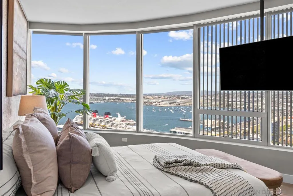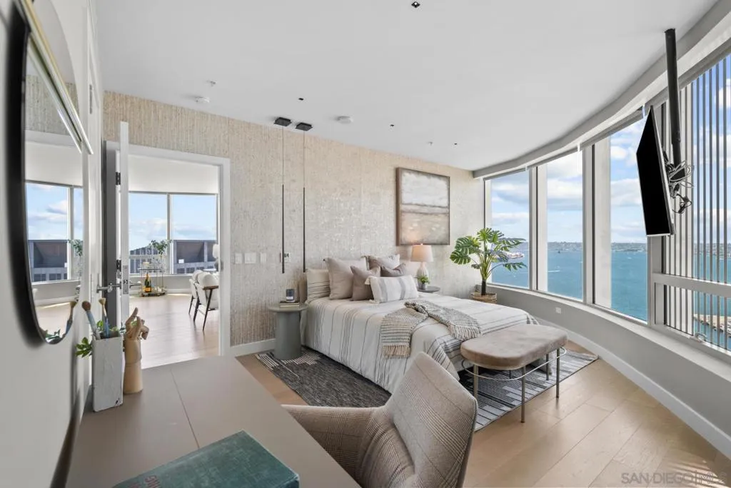 Experience elevated urban living at 888 W E Street Unit 3002 in San Diego’s iconic Pacific Gate by Bosa. This 2-bedroom, 2-bath residence offers an open-concept design with floor-to-ceiling windows that showcase sweeping views of the bay, city skyline, and beyond. Step into the upgraded kitchen, where sleek finishes, ample counter space, and a thoughtful layout make both meal prep and entertaining an absolute joy. The serene bedrooms, tucked away from the main living area, provide a tranquil retreat with generous closet space and large windows that invite in natural light while framing picturesque views. The unit now features a modern update with new builder-grade doors, sleek white trim, and a fresh coat of paint that brightens every corner. As a resident, enjoy exclusive world-class amenities, including a private yacht share, luxury car fleet, 24/7 concierge, state-of-the-art fitness center, and resort-style pool deck—all within a building celebrated for its architectural brilliance and five-star service. Located in the heart of downtowns Marina District, you’re steps from the waterfront, Little Italy, the Gaslamp Quarter, and the upcoming Manchester Pacific Gateway, which promises even more upscale dining, retail, and entertainment options. This isn’t just a home—it’s a front-row seat to San Diego’s vibrant future. Seize this rare opportunity in one of the city’s most sought-after addresses! Experience elevated urban living at 888 W E Street Unit 3002 in San Diego’s iconic Pacific Gate by Bosa. This 2-bedroom, 2-bath residence offers an open-concept design with floor-to-ceiling windows that showcase sweeping views of the bay, city skyline, and beyond. Step into the upgraded kitchen, where sleek finishes, ample counter space, and a thoughtful layout make both meal prep and entertaining an absolute joy. The serene bedrooms, tucked away from the main living area, provide a tranquil retreat with generous closet space and large windows that invite in natural light while framing picturesque views. The unit now features a modern update with new builder-grade doors, sleek white trim, and a fresh coat of paint that brightens every corner. As a resident, enjoy exclusive world-class amenities, including a private yacht share, luxury car fleet, 24/7 concierge, state-of-the-art fitness center, and resort-style pool deck—all within a building celebrated for its architectural brilliance and five-star service. Located in the heart of downtowns Marina District, you’re steps from the waterfront, Little Italy, the Gaslamp Quarter, and the upcoming Manchester Pacific Gateway, which promises even more upscale dining, retail, and entertainment options. This isn’t just a home—it’s a front-row seat to San Diego’s vibrant future. Seize this rare opportunity in one of the city’s most sought-after addresses!
