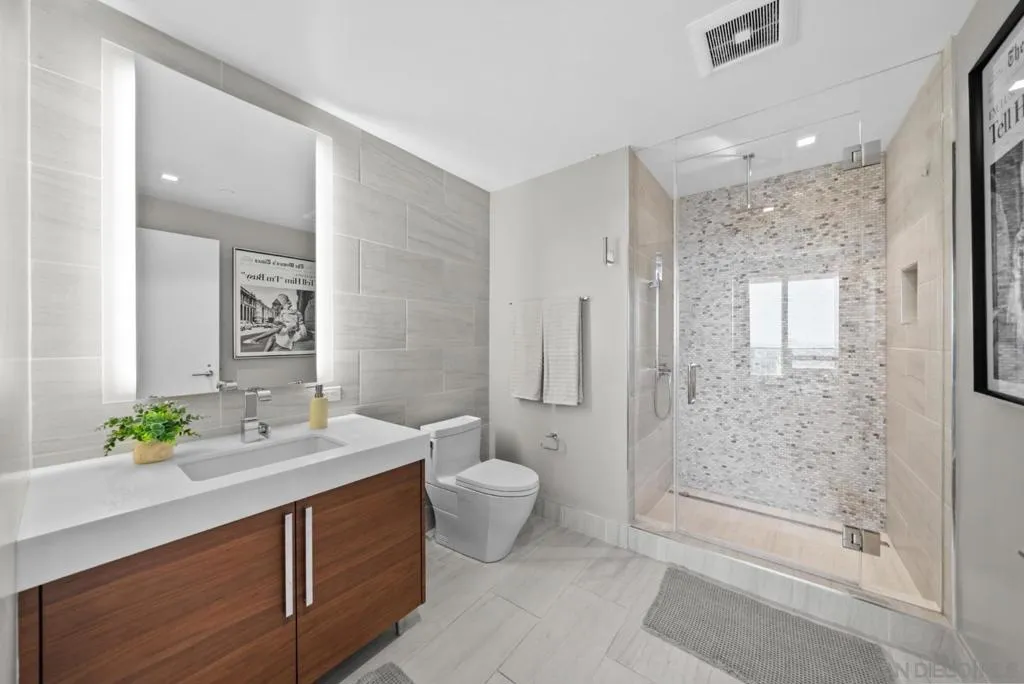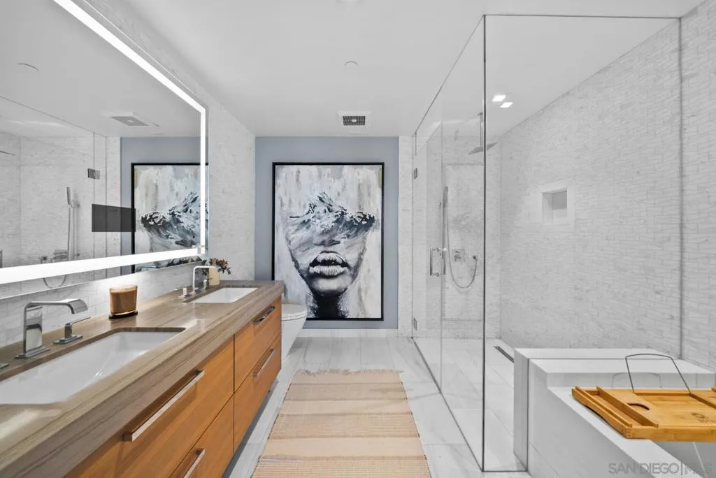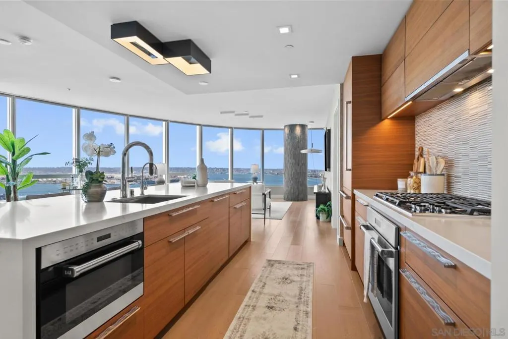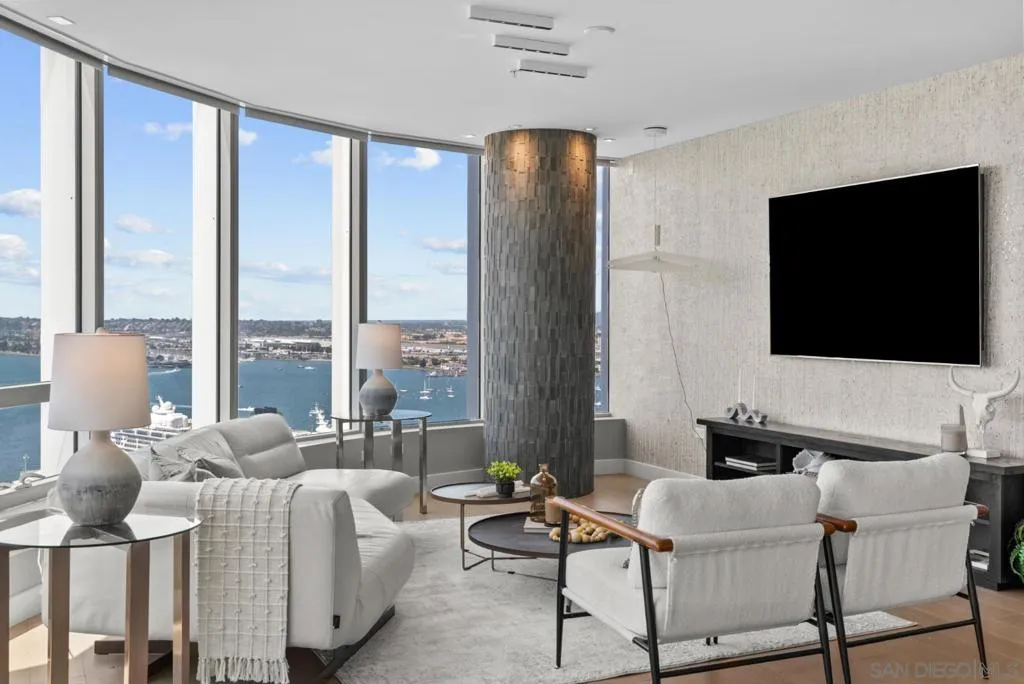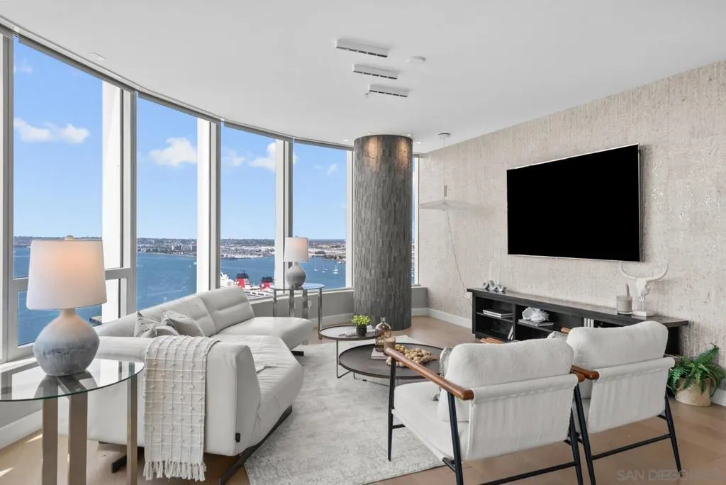 Experience elevated urban living at 888 W E Street Unit 3002 in San Diego’s iconic Pacific Gate by Bosa. This 2-bedroom, 2-bath residence offers an open-concept design with floor-to-ceiling windows that showcase sweeping views of the bay, city skyline, and beyond. Step into the upgraded kitchen, where sleek finishes, ample counter space, and a thoughtful layout make both meal prep and entertaining an absolute joy. The serene bedrooms, tucked away from the main living area, provide a tranquil retreat with generous closet space and large windows that invite in natural light while framing picturesque views. The unit now features a modern update with new builder-grade doors, sleek white trim, and a fresh coat of paint that brightens every corner. As a resident, enjoy exclusive world-class amenities, including a private yacht share, luxury car fleet, 24/7 concierge, state-of-the-art fitness center, and resort-style pool deck—all within a building celebrated for its architectural brilliance and five-star service. Located in the heart of downtowns Marina District, you’re steps from the waterfront, Little Italy, the Gaslamp Quarter, and the upcoming Manchester Pacific Gateway, which promises even more upscale dining, retail, and entertainment options. This isn’t just a home—it’s a front-row seat to San Diego’s vibrant future. Seize this rare opportunity in one of the city’s most sought-after addresses! Experience elevated urban living at 888 W E Street Unit 3002 in San Diego’s iconic Pacific Gate by Bosa. This 2-bedroom, 2-bath residence offers an open-concept design with floor-to-ceiling windows that showcase sweeping views of the bay, city skyline, and beyond. Step into the upgraded kitchen, where sleek finishes, ample counter space, and a thoughtful layout make both meal prep and entertaining an absolute joy. The serene bedrooms, tucked away from the main living area, provide a tranquil retreat with generous closet space and large windows that invite in natural light while framing picturesque views. The unit now features a modern update with new builder-grade doors, sleek white trim, and a fresh coat of paint that brightens every corner. As a resident, enjoy exclusive world-class amenities, including a private yacht share, luxury car fleet, 24/7 concierge, state-of-the-art fitness center, and resort-style pool deck—all within a building celebrated for its architectural brilliance and five-star service. Located in the heart of downtowns Marina District, you’re steps from the waterfront, Little Italy, the Gaslamp Quarter, and the upcoming Manchester Pacific Gateway, which promises even more upscale dining, retail, and entertainment options. This isn’t just a home—it’s a front-row seat to San Diego’s vibrant future. Seize this rare opportunity in one of the city’s most sought-after addresses!