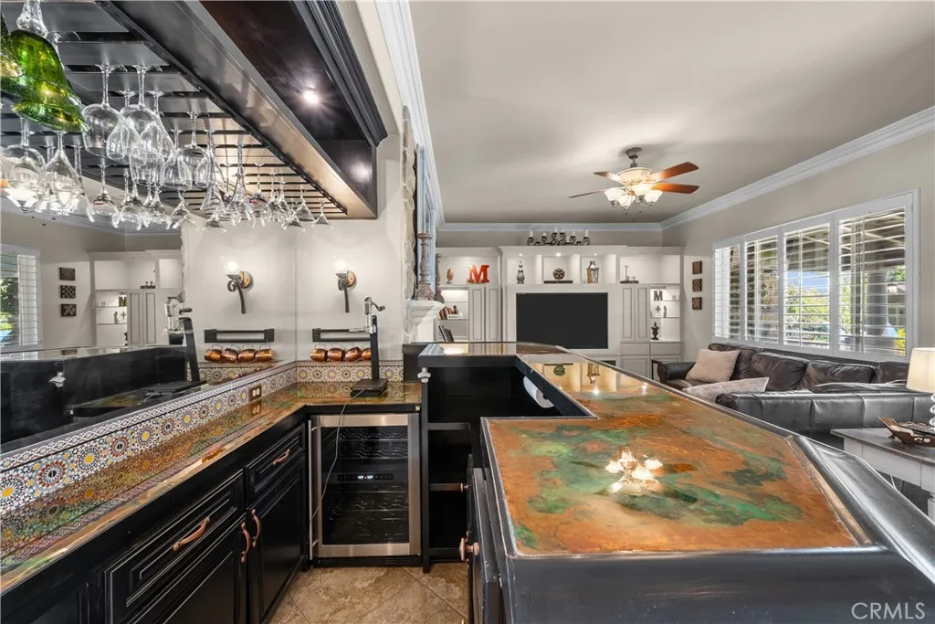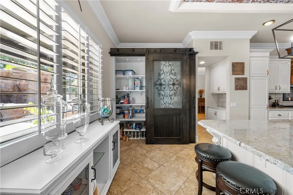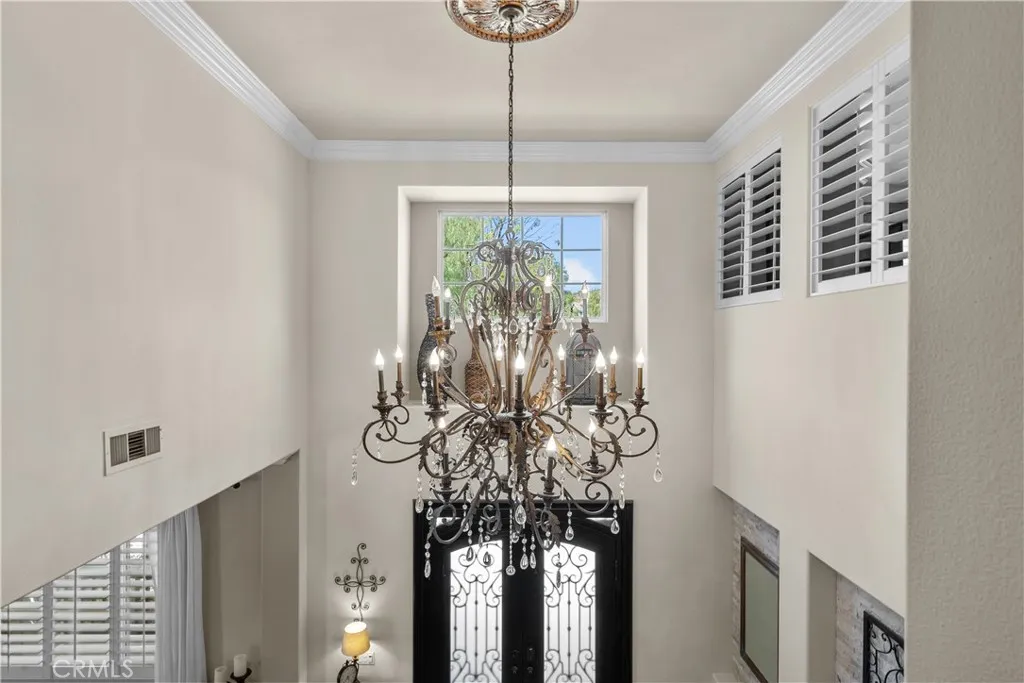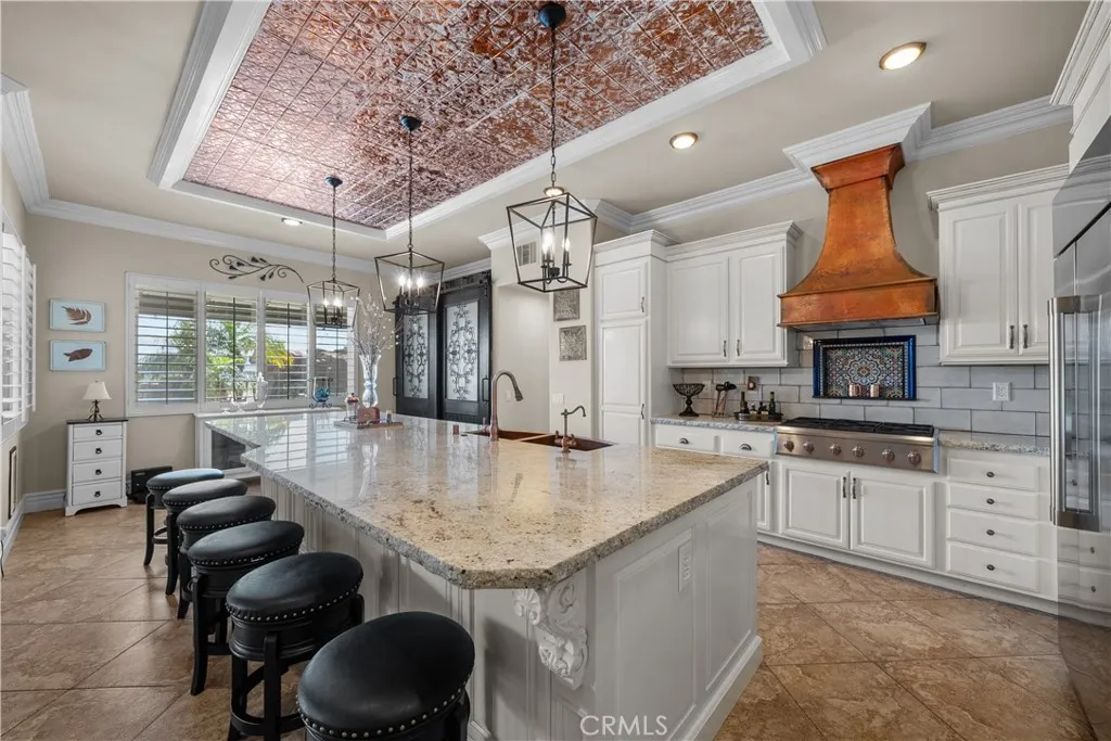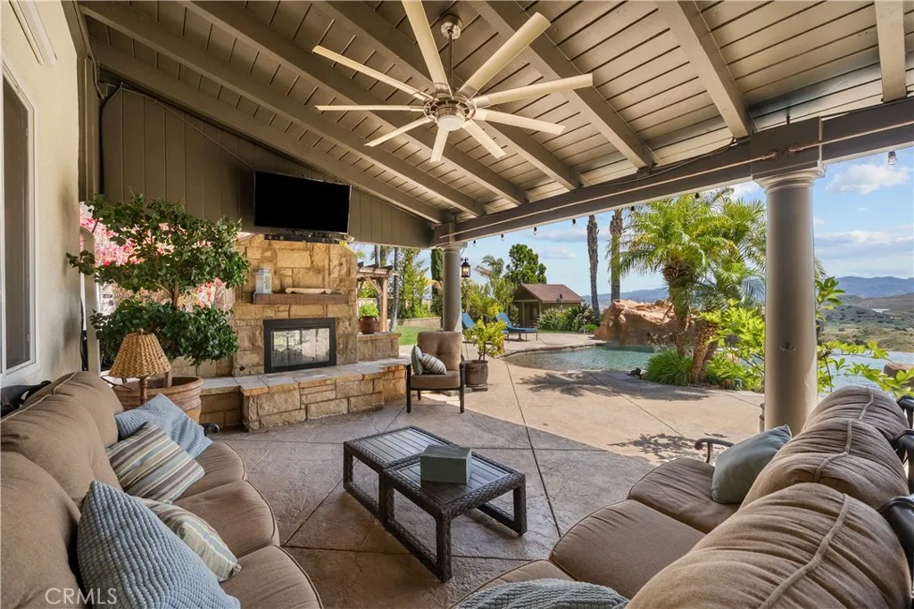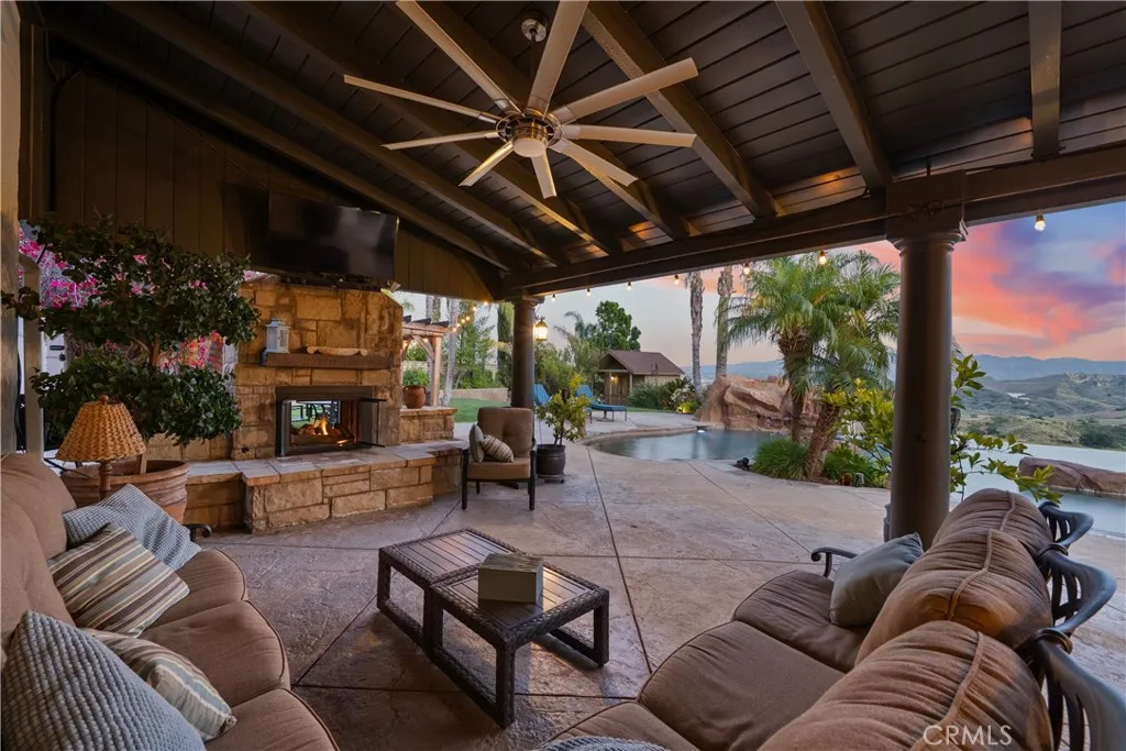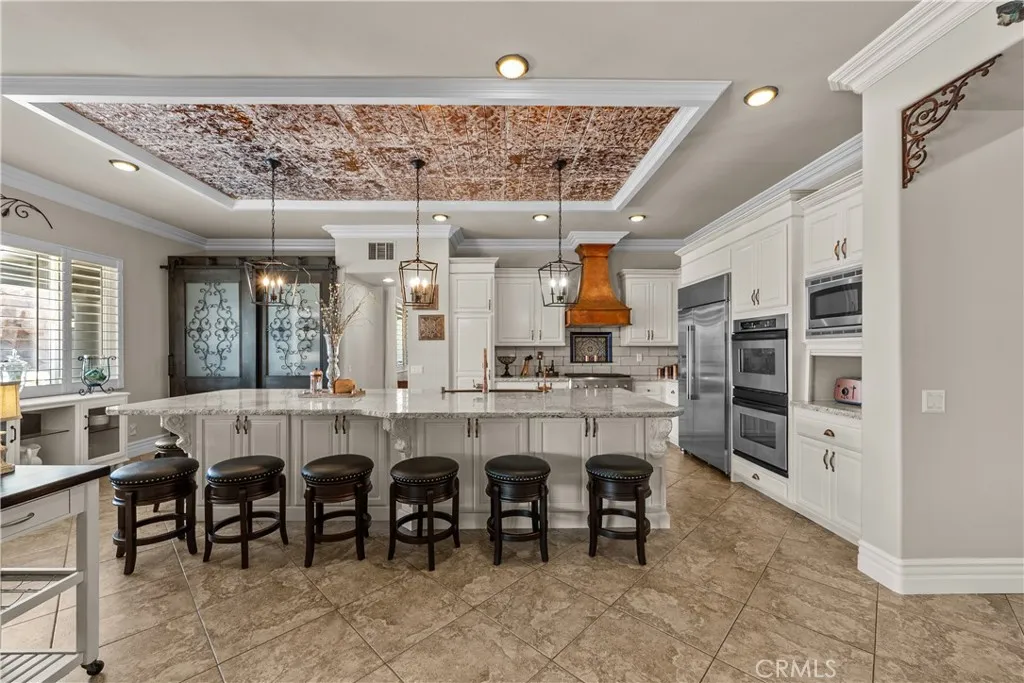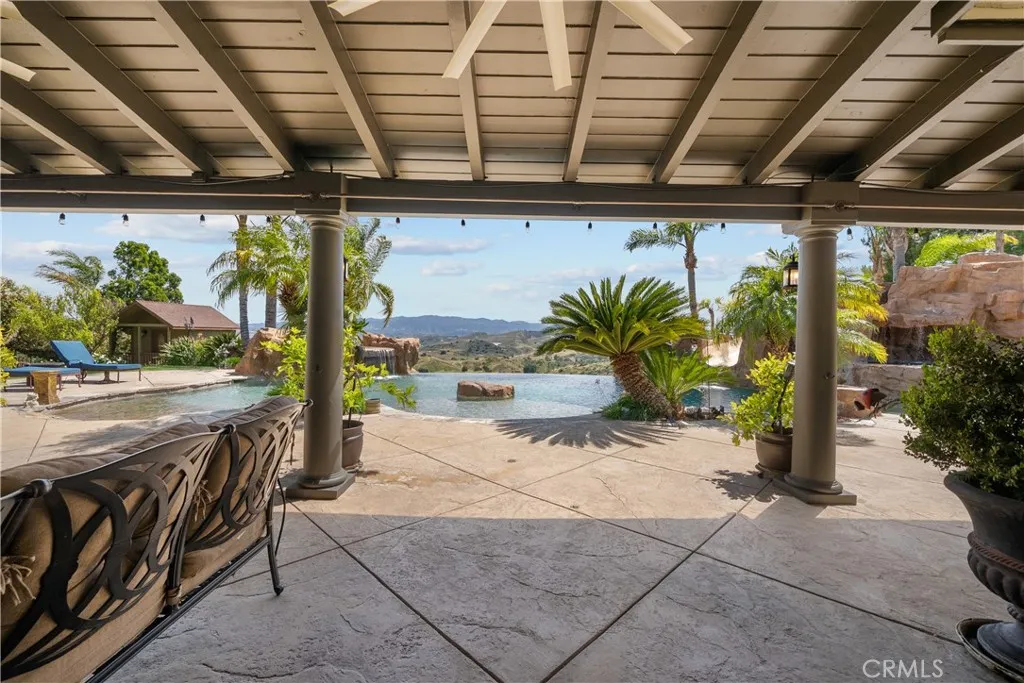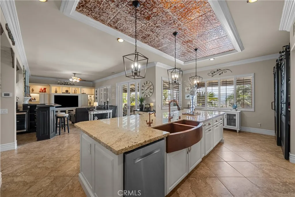 A rare offering within the exclusive Wild Horse Track—where privacy, scale, and design converge, and opportunities are few and far between. Set across more than three acres, this estate is a masterclass in intentional living. From the moment you arrive, custom iron doors, an intricate mosaic entry, and a glowing chandelier create a memorable first impression. Inside, every detail has been curated. A dramatic Spanish-tiled staircase, rich wood flooring, plantation shutters, and extensive crown molding create a timeless blend of warmth and sophistication. At the heart of the home, a one-of-a-kind chef’s kitchen becomes both a showpiece and gathering place—featuring a copper inlaid ceiling, artisan copper hood, pendant lighting, farmhouse sink, granite surfaces, and an expansive island. The space flows effortlessly into a refined family room with a custom entertainment center, ambient lighting, fireplace, and reading nook. The layout balances function and flexibility. The original main-floor bedroom has been converted into a private office adjacent to a full bath, offering versatility for guests or future bedroom use. Upstairs, the loft has a closet added and is currently being used as an additional bedroom. The primary suite serves as a private retreat with sweeping mountain and city light views, dual walk-in closets, and a spa-inspired bath. An additional en-suite bedroom adds comfort and convenience. Outdoors, the experience transforms into a private resort. A saltwater Pebble Tec infinity pool with beach entry, waterfalls, rock slide, grotto spa, and sauna creates a setting that rivals luxury destinations. Entertaining is effortless with a covered outdoor living area, built-in BBQ bar, fireplace, and expansive seating positioned to capture breathtaking views. The fully permitted 2,500 sq. ft. RV garage with upper-level storage is complemented by a 4-car garage and generous additional parking. The grounds also include a lofted playhouse and utility structures. Enhanced with paid solar, pool solar, and whole-house WhisperFlow fans, the home delivers luxury and efficiency. No HOA. Close to freeway access, Castaic Lake, and top local schools—yet a world apart.
