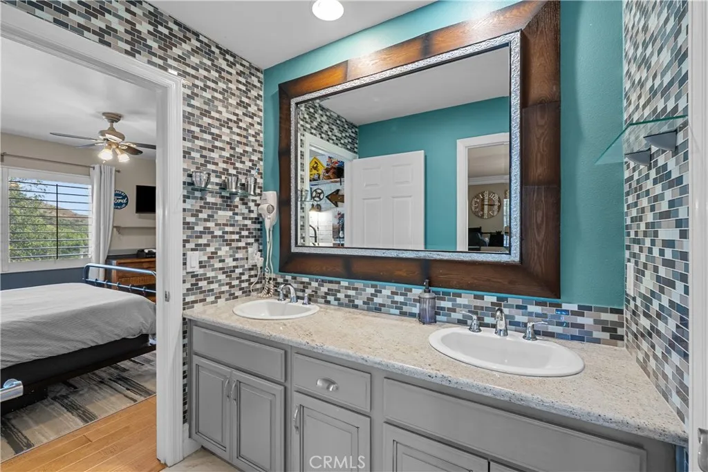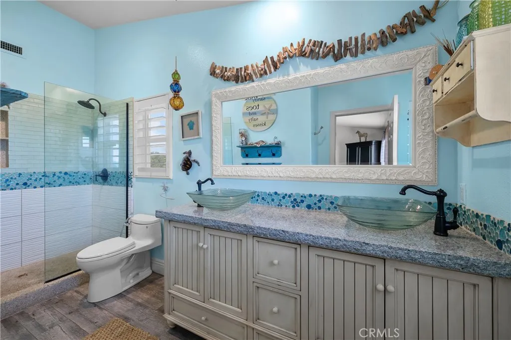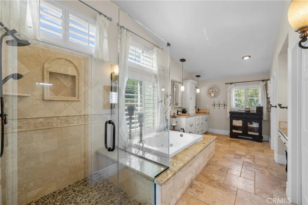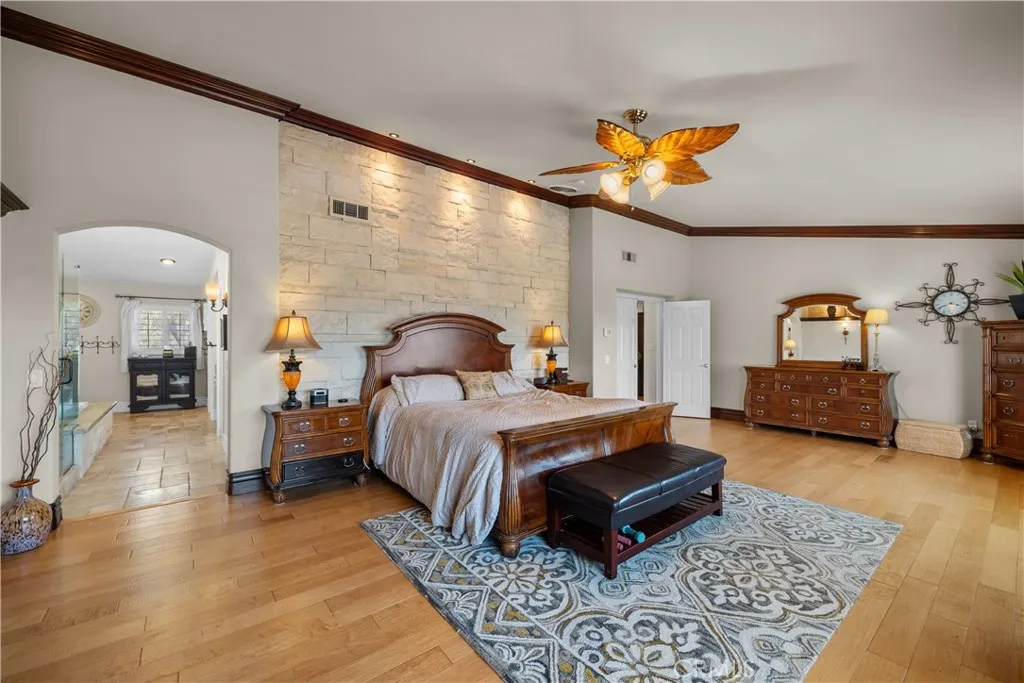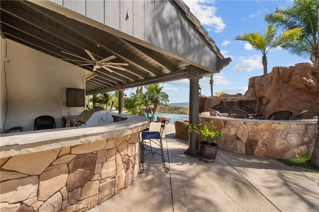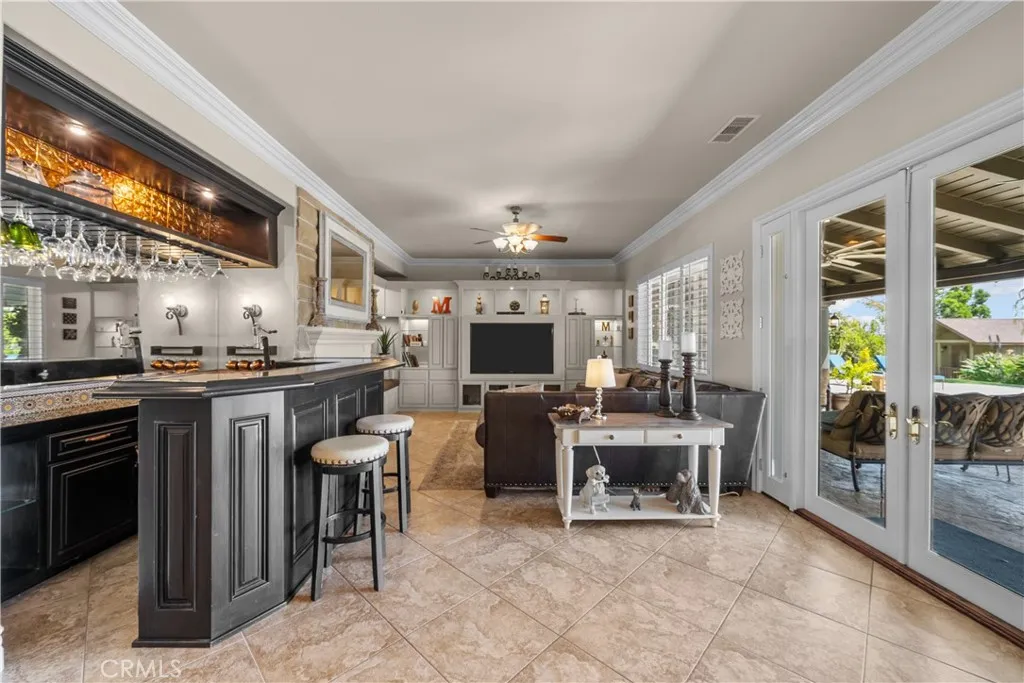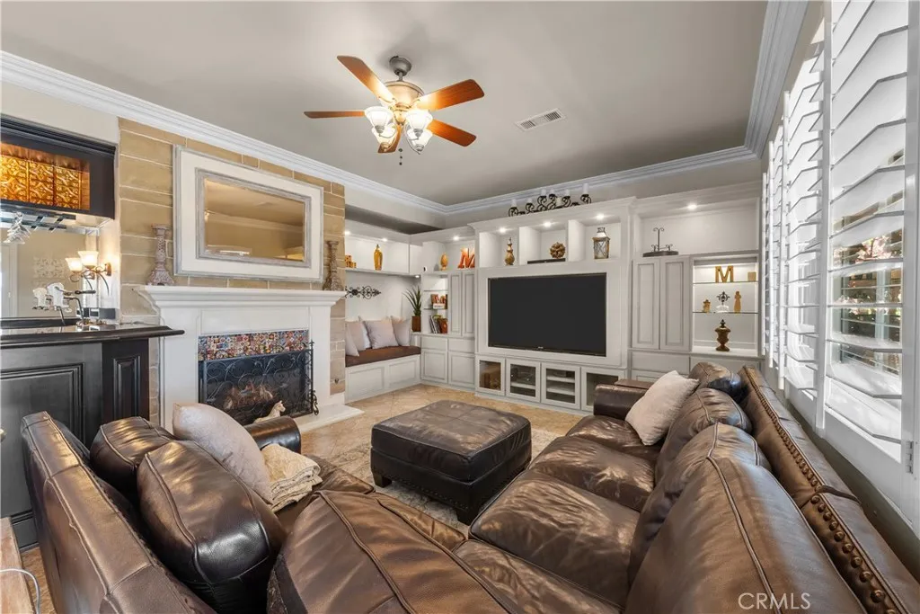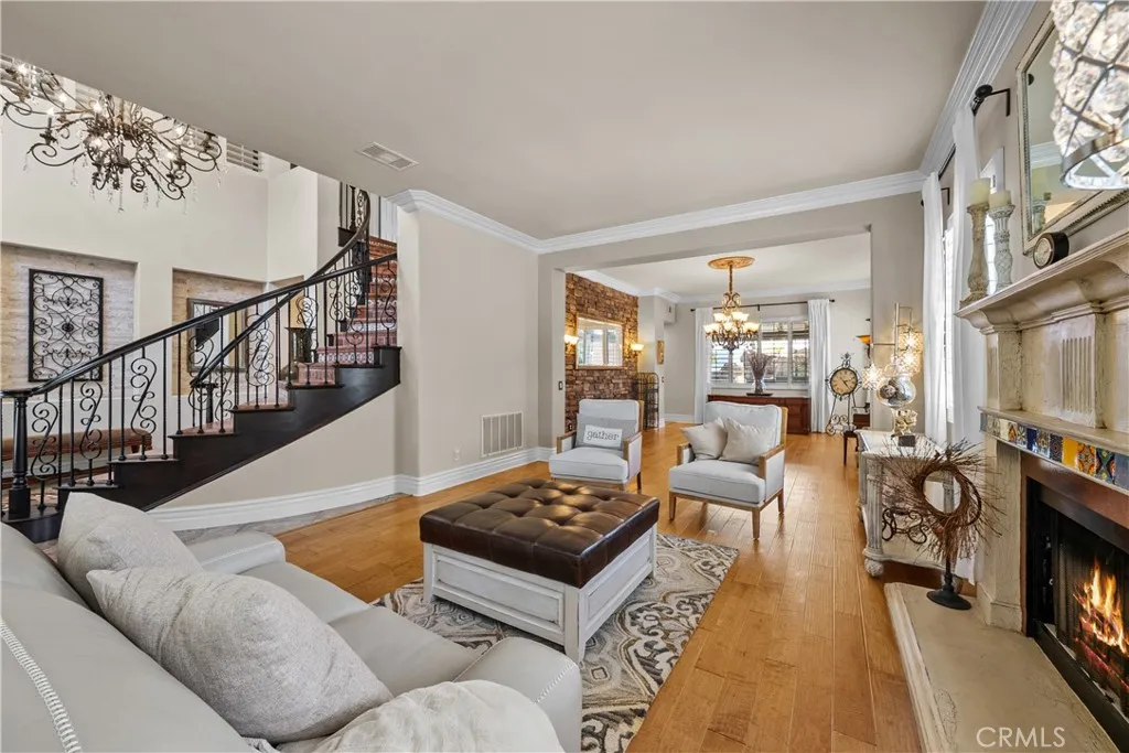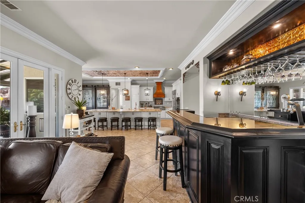 A rare offering within the exclusive Wild Horse Track—where privacy, scale, and design converge, and opportunities are few and far between. Set across more than three acres, this estate is a masterclass in intentional living. From the moment you arrive, custom iron doors, an intricate mosaic entry, and a glowing chandelier create a memorable first impression. Inside, every detail has been curated. A dramatic Spanish-tiled staircase, rich wood flooring, plantation shutters, and extensive crown molding create a timeless blend of warmth and sophistication. At the heart of the home, a one-of-a-kind chef’s kitchen becomes both a showpiece and gathering place—featuring a copper inlaid ceiling, artisan copper hood, pendant lighting, farmhouse sink, granite surfaces, and an expansive island. The space flows effortlessly into a refined family room with a custom entertainment center, ambient lighting, fireplace, and reading nook. The layout balances function and flexibility. The original main-floor bedroom has been converted into a private office adjacent to a full bath, offering versatility for guests or future bedroom use. Upstairs, the loft has a closet added and is currently being used as an additional bedroom. The primary suite serves as a private retreat with sweeping mountain and city light views, dual walk-in closets, and a spa-inspired bath. An additional en-suite bedroom adds comfort and convenience. Outdoors, the experience transforms into a private resort. A saltwater Pebble Tec infinity pool with beach entry, waterfalls, rock slide, grotto spa, and sauna creates a setting that rivals luxury destinations. Entertaining is effortless with a covered outdoor living area, built-in BBQ bar, fireplace, and expansive seating positioned to capture breathtaking views. The fully permitted 2,500 sq. ft. RV garage with upper-level storage is complemented by a 4-car garage and generous additional parking. The grounds also include a lofted playhouse and utility structures. Enhanced with paid solar, pool solar, and whole-house WhisperFlow fans, the home delivers luxury and efficiency. No HOA. Close to freeway access, Castaic Lake, and top local schools—yet a world apart.