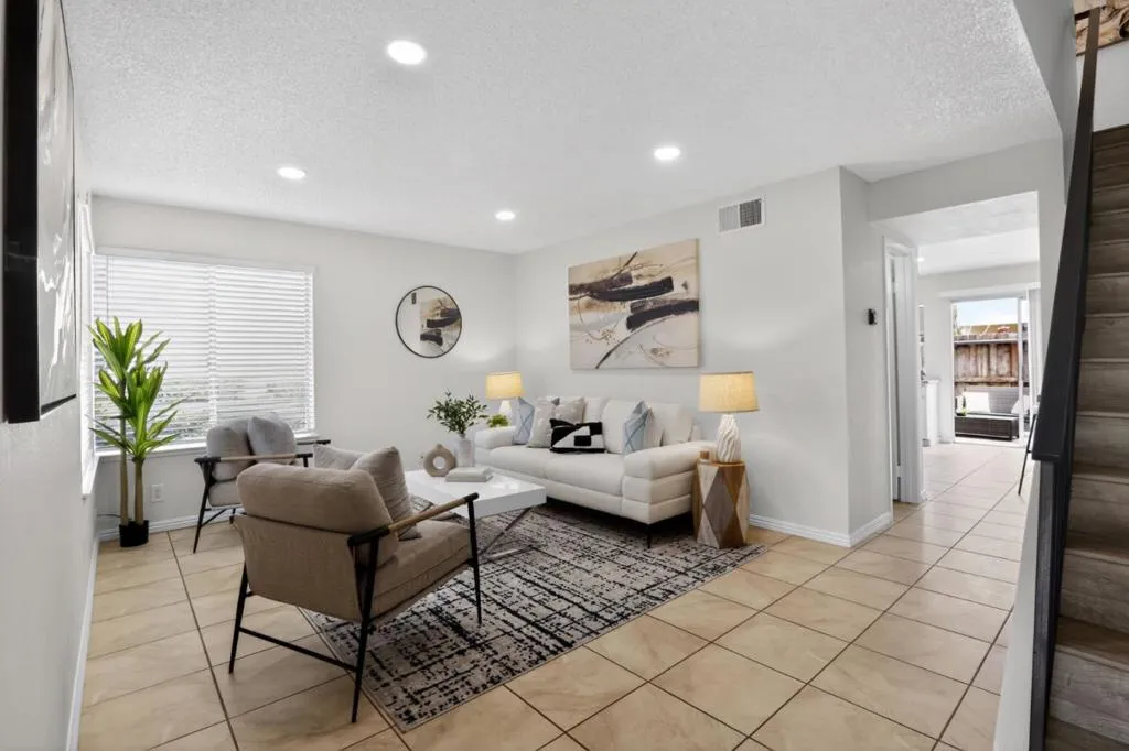 Step into this beautifully remodeled townhouse offering 3 spacious bedrooms and 2 modern bathrooms, nestled in a quiet and safe community. Freshly repainted throughout, the home features new recessed lighting that enhances its bright and inviting atmosphere. The updated kitchen and bathrooms showcase contemporary finishes, while the first floor boasts elegant tile flooring and the second floor features durable vinyl laminate for comfort and style. Natural light fills every corner, creating a warm and peaceful living space. Enjoy the convenience of in-house laundry, along with your own private backyard, perfect for relaxing or entertaining and an attached two-car garage. The community also offers access to a sparkling pool for your enjoyment. This home truly has it all comfort, style, and location. Come see it for yourself and fall in love!