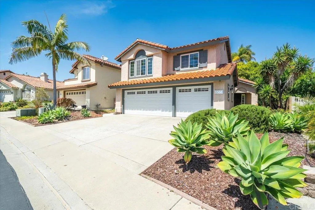 1568 Mallorca Drive is 1,975 sqft and sits in one of Shadowridge Golf Course's most coveted communities, Mallorca. The kitchen is remodeled, spacious and functional, and features a new LG refrigerator and dishwasher. In the backyard, you'll discover a beautiful, low-maintenance paver patio, perfect for entertaining, PRIVACY with lush trees, including lemon and lime, whimsical landscaping, and a private hot tub. Upstairs, there are 3 bedrooms and 2 bathrooms, and a loft perfect for an office, watching your favorite movie, or reading your favorite book. The primary suite is a retreat, with plenty of space to relax and unwind. On your way out to the 3-car garage, which offers an EV charger and plenty of parking and storage, you'll find a laundry room and the downstairs powder room. You'll especially appreciate the HVAC and a whole-house fan to help keep cooling costs down. Just 4 doors down from the community pool, you have all the benefits of having your own pool without the maintenance! Close to the 78, shopping, schools, and restaurants!