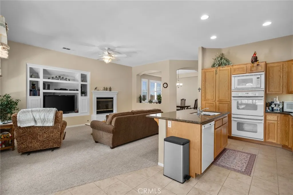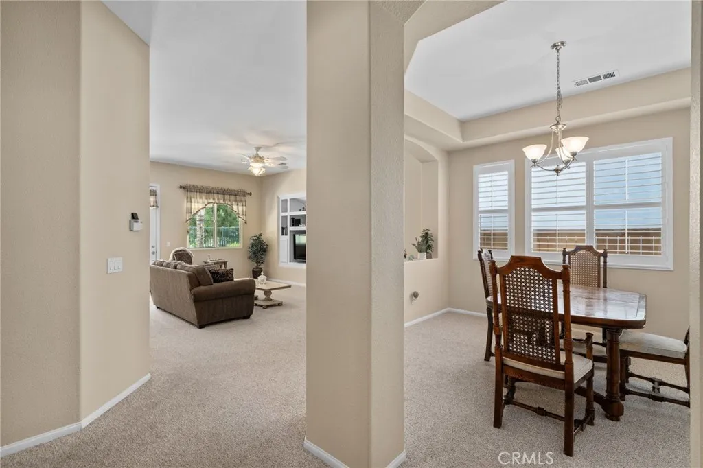You're going to want to ParTEE at this One Level Gorgeous home at the 17th Tee of the beautiful Yucaipa Golf Course. This stunning single-story, 3-bedroom, 3-bathroom residence offers an exceptional floorplan where all bedrooms and baths feel private. A perfect blend of comfort, style, and scenic beauty, perfectly positioned to capture sweeping views of the lush greens. An expansive open floor plan will impress with expansive ceilings. The living room and kitchen serve as the true heart of the home. Designed for both everyday living and entertaining, this inviting space is enhanced by a cozy fireplace, and an abundance of natural light that frames picturesque golf course vistas. The kitchen is as functional as it is beautiful, featuring generous counter space, ample cabinetry, dual ovens, and a convenient breakfast bar—ideal for savoring your morning coffee while overlooking the serene fairways. Just beyond, the adjacent dining room offers versatility for formal gatherings, holiday celebrations, or a stylish home office or flex space tailored to your lifestyle. The executive suite is a private sanctuary, complete with direct access to the backyard patio—perfect for unwinding in the shade as you take in the tranquil rhythm of the course. The spa-like ensuite bath boasts dual vanities, a custom walk-in tiled shower, and an oversized closet designed for optimal organization. Two additional bedrooms and two full bathrooms provide comfort and flexibility for family, guests, or creative spaces such as a home office or fitness room. A well-appointed laundry room with built-in cabinetry adds everyday convenience. Outdoors, A gorgeous patio spans the entire length of the the meticulously landscaped backyard —beautifully framing the panoramic golf course views.This turnkey home offers the perfect blend of luxury and leisure—an exceptional opportunity to embrace the golf course lifestyle just in time for the season.