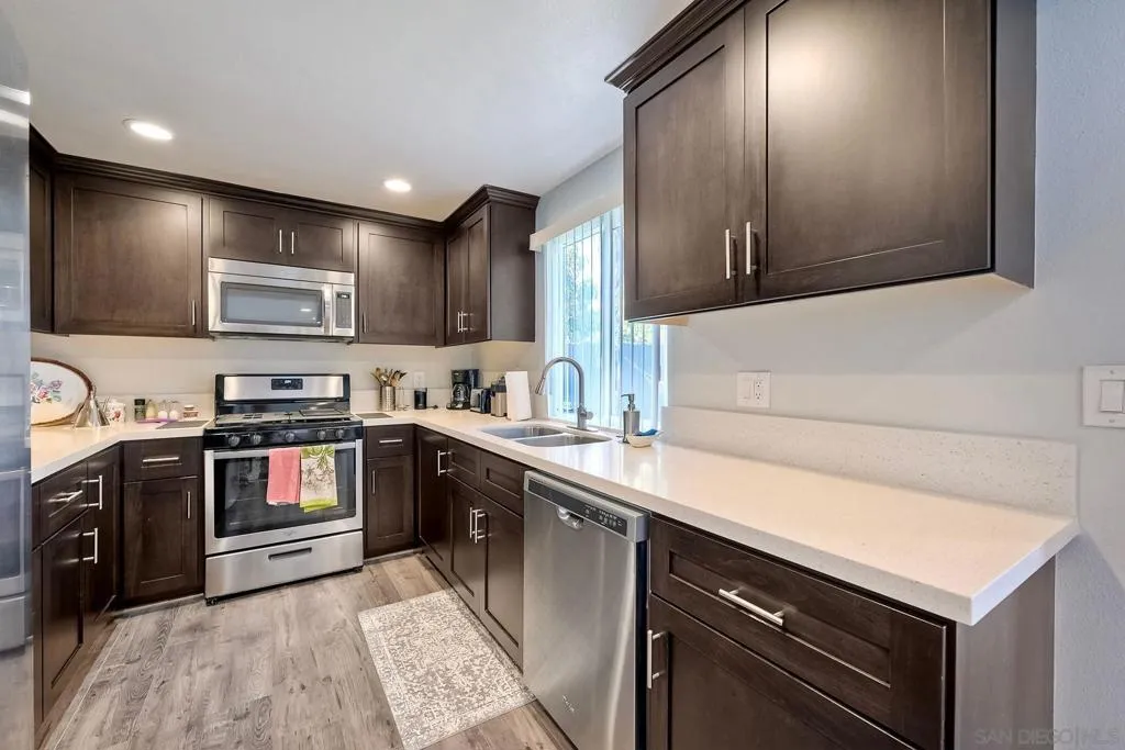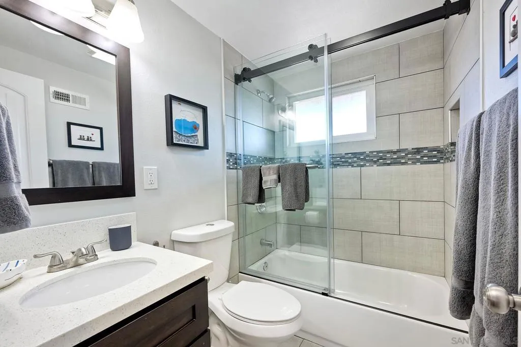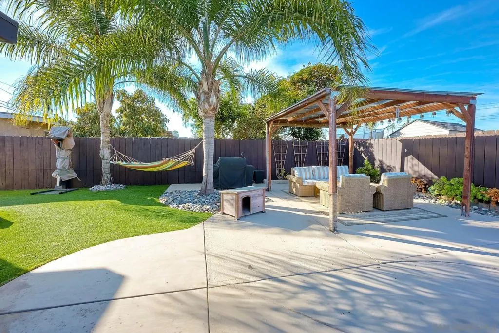 Amazing 3 bed, 2 bath STUNNING POOL home offering 1,359 sq ft with exceptional indoor/outdoor living, located about 12 blocks from the beach. This light and bright home features an open-concept great room with vaulted ceilings, creating an airy, spacious feel that lives larger than the square footage suggests. The interior has been tastefully remodeled with updated kitchen cabinetry, sleek quartz countertops, included appliances, and two spa-inspired bathrooms. Additional upgrades include newer flooring throughout, a newer roof, fully owned solar, and forced air HVAC for year-round comfort. An oversized 1-car garage with laundry hookups adds convenience and functionality. Step outside to your private backyard retreat—complete with a sparkling in-ground pool, expansive decking, and multiple areas designed for relaxing and entertaining. A serene palapa-style covered lounge, barbecue area, hammock space, artificial turf, and lush landscaping with mature plants and flowers create a true coastal oasis. Assumable VA loan at 3.250%! Set in a laid-back beach community, this home offers the perfect blend of comfort, style, and lifestyle. Whether you're hosting poolside gatherings or heading down to the coast just minutes away, this is Imperial Beach living at its best.