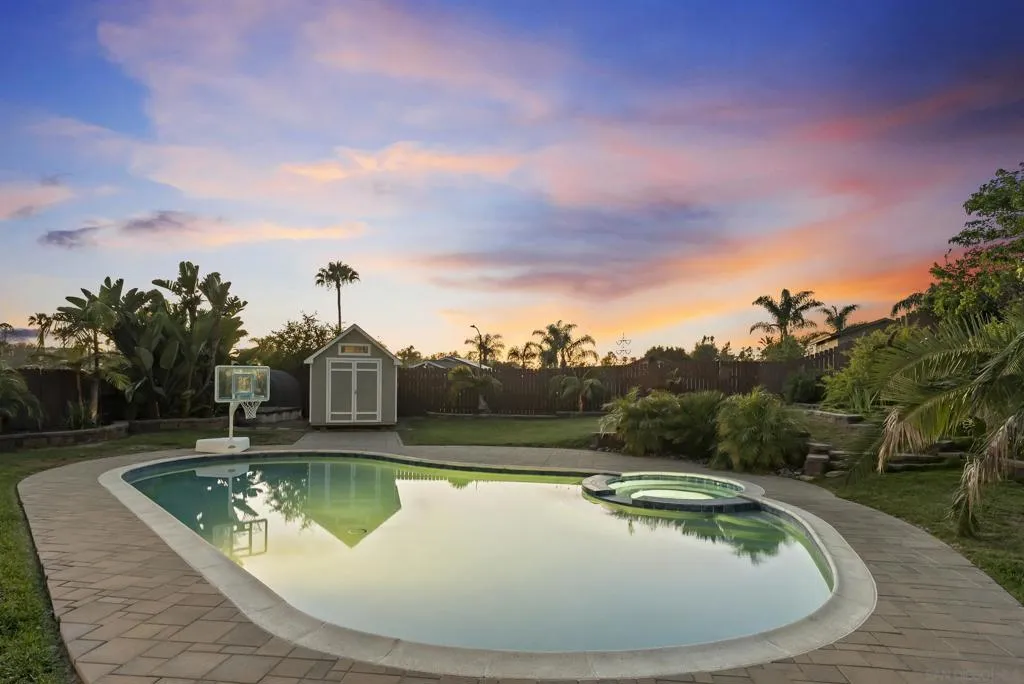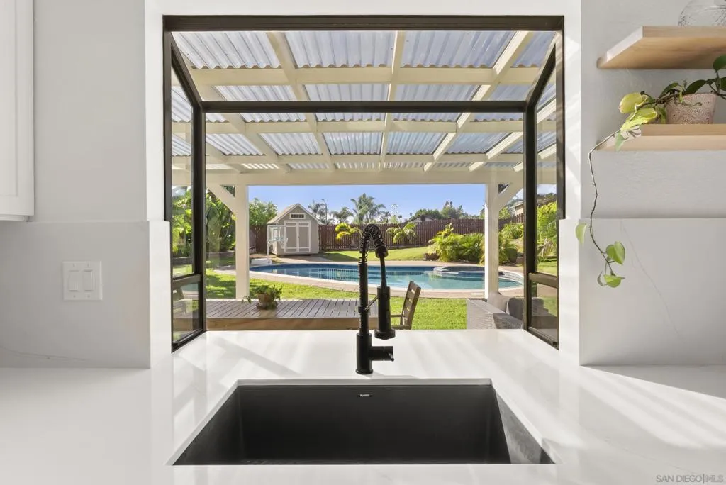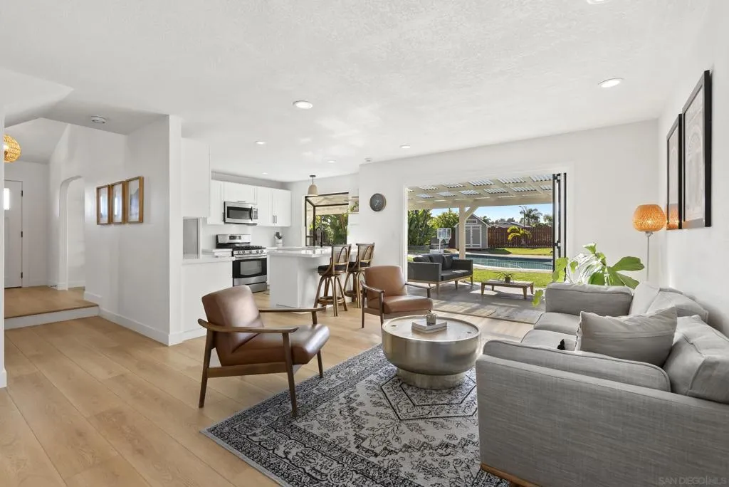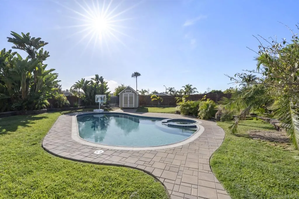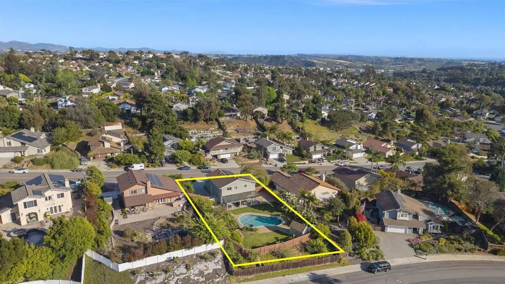 Beautifully remodeled 4-bedroom, 2.5-bath residence set on an expansive 14,343 sq. ft. lot with lush mature landscaping, fruit trees, a private pool, and spa. Enjoy exceptional privacy with no rear neighbors - an increasingly rare offering in the area. Designed for effortless California living, bi-fold doors open to a fully covered patio, creating a seamless indoor-outdoor experience. The home features a bright, open-concept layout with vaulted ceilings and generous living and dining spaces. The upgraded kitchen offers quartz countertops and modern fixtures, complemented by new flooring throughout. Thoughtfully upgraded bathrooms include a fully tiled primary suite with dual shower heads and a solid teak vanity. Extensive improvements include new flooring, kitchen surfaces and fixtures, new pool equipment, and updated exterior paint, gutters, doors, and patio roofing. The spacious lot also offers room for a potential ADU. Additional highlights include fully paid solar, RV parking, and no HOA or Mello-Roos. Ideally located just minutes from Carlsbad Village, pristine beaches, and the scenic trails of Calavera Hills Preserve, with access to top-rated schools.