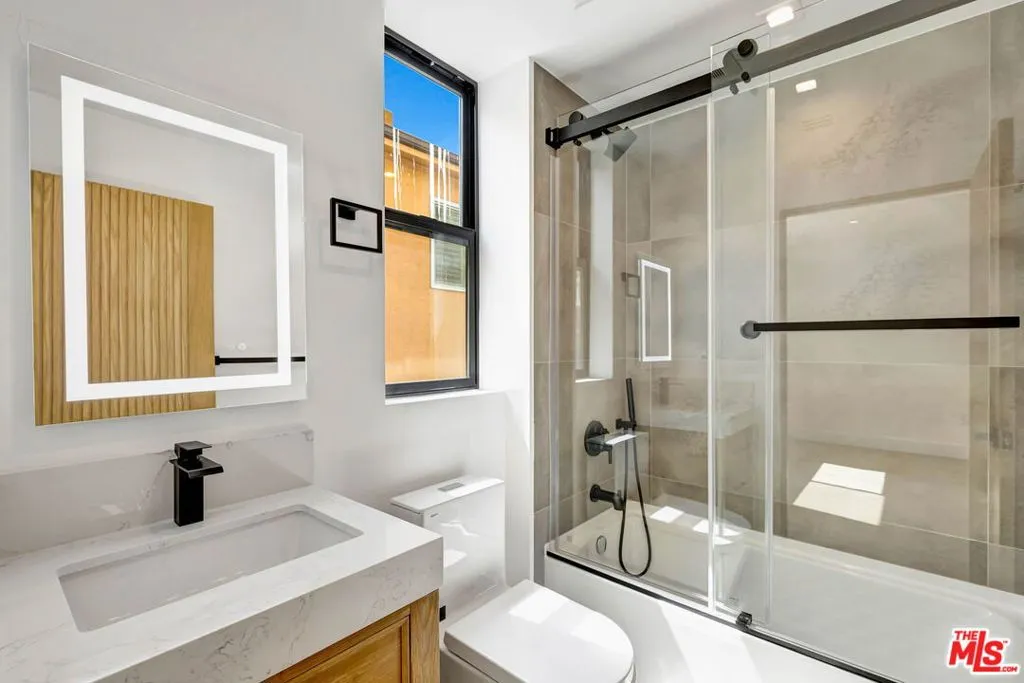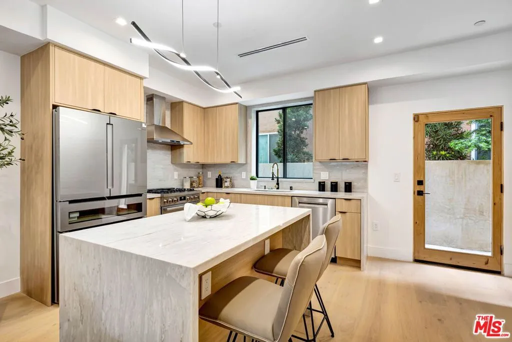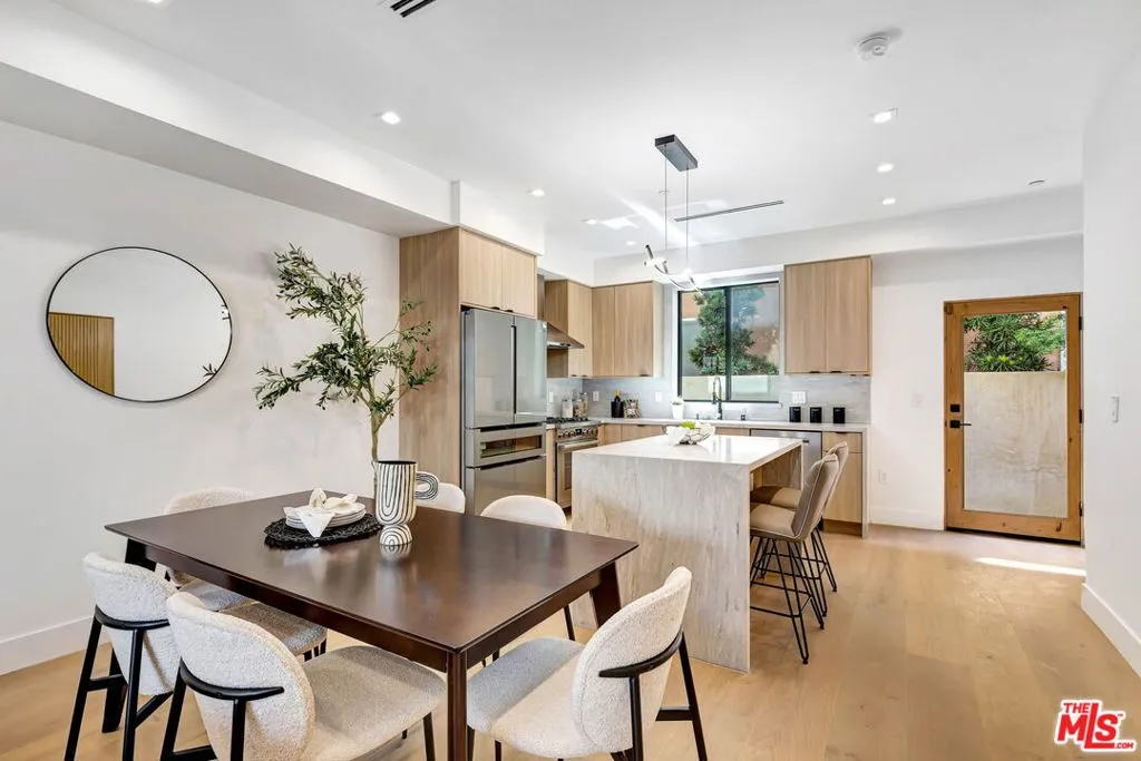 TOWNHOME #2 is set on a quiet cul-de-sac in the heart of Studio City and offers a design-forward, newly built 4-bedroom + 4.5-bathroom layout with a bright, open floor plan. There is a seamless flow between the living area, dining space, and a kitchen designed for both daily use and hosting, complete with stainless steel appliances, quartz counters, custom cabinetry, and a center island. The entry level also includes a laundry room with hook-ups, powder room, and additional storage. Upstairs are four en-suite bedrooms, offering flexibility for guests, work-from-home, or long-term living. Two of the suites function as primary retreats featuring balconies, dual-sink vanities, and step-in showers with frameless glass enclosures. Above, a private rooftop deck captures city lights, mountain views, and evening breezes, creating an ideal setting for entertaining or unwinding. Located within the Carpenter Community Charter School district and just moments from Ventura Boulevard's cafs, restaurants, boutiques, fitness studios, and the Studio City Farmers Market, along with nearby parks, hiking trails, and major studios. Gated side-by-side parking for two. New construction. ADA compliant. Townhomes #1 and #3 may also be available for private showings by appointment.