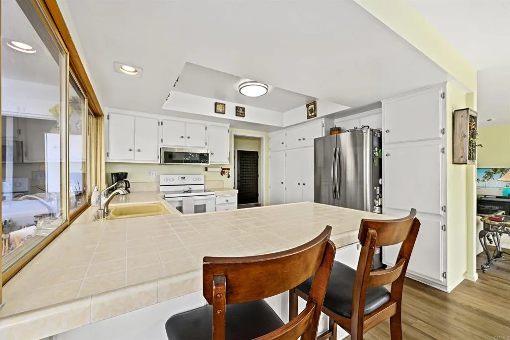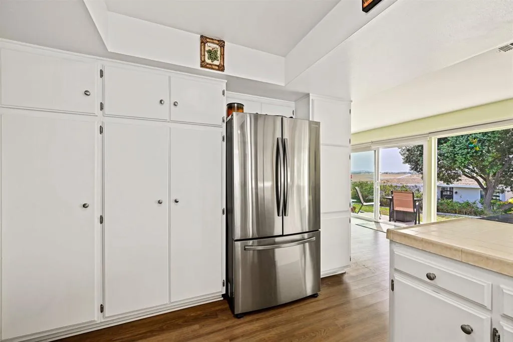 Unique detached home (2bd-2ba) w/ covered entry, attached 2-car garage w/2E-car outlets, indoor laundry, covered walkways in original “Oceana” 55+ community. This Oceana property offers full home lot ownership and resort-style amenities: 2 pools, a spa, indoor & outdoor pickleball courts, billiards room w/two full sized pool tables + tabletop shuffleboard, pool deck ping pong, art room offering ceramics, painting, +other art pursuits and classes, lapidary shop (gems & and jewelry), wood working shop, community garden, dog park, golf course 1/932 share ownership yields 25% reduced green fees + non-golfing hours access for hiking, community garden, secure dog park, large club house with auditorium for organized activities, library, kitchen, & game rooms. Oceana’s superior hilltop location offers beautiful ocean + mountain views +easy access to main thoroughfares. Owner’s first 2012 remodel included “popcorn” asbestos ceilings removal. 2018 asphalt shingle “cool” roof installed in replacing inefficient/unreliable tar/stone roof. 2019 all asbestos air ducts removed & replaced. 2020 City Permit allowed Lanai area to be enclosed (currently used as an art studio but suitable for other uses). 2025 new furnace installed + added intake duct for efficiency. 2024-2025 new water heater and entire home PEX re-piping. PEX re-pipe project included: (1) spare bathroom new vanity, unique in-home laundry; (2) primary bathtub removed, new flooring, toilet, lighting, vanity & tile step in shower; and (3) freshly repainted most interior. Panoramic views of sunrise, sunset and ocean breezes from the south-facing patio & living room circulate through the home. Southern wall glass windows offers daily natural light and free winter passive solar heat. Interior temperature is easily seasonally controlled by 4 recessed/ pull down shades and open north wall air flow. Front yard redesigned with drought-resistant plants and drip irrigation. Rain barrel collects and stores rainwater, your plants will love. HOA monthly dues include home insurance covering home & garage structures per published limits, exterior stucco repairs & painting, Ultimate Cox cable tv, water & sewer services, Waste Management, common area landscaping, and improvements maintenance.