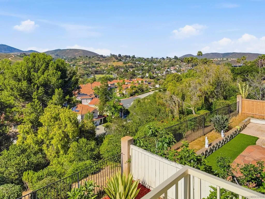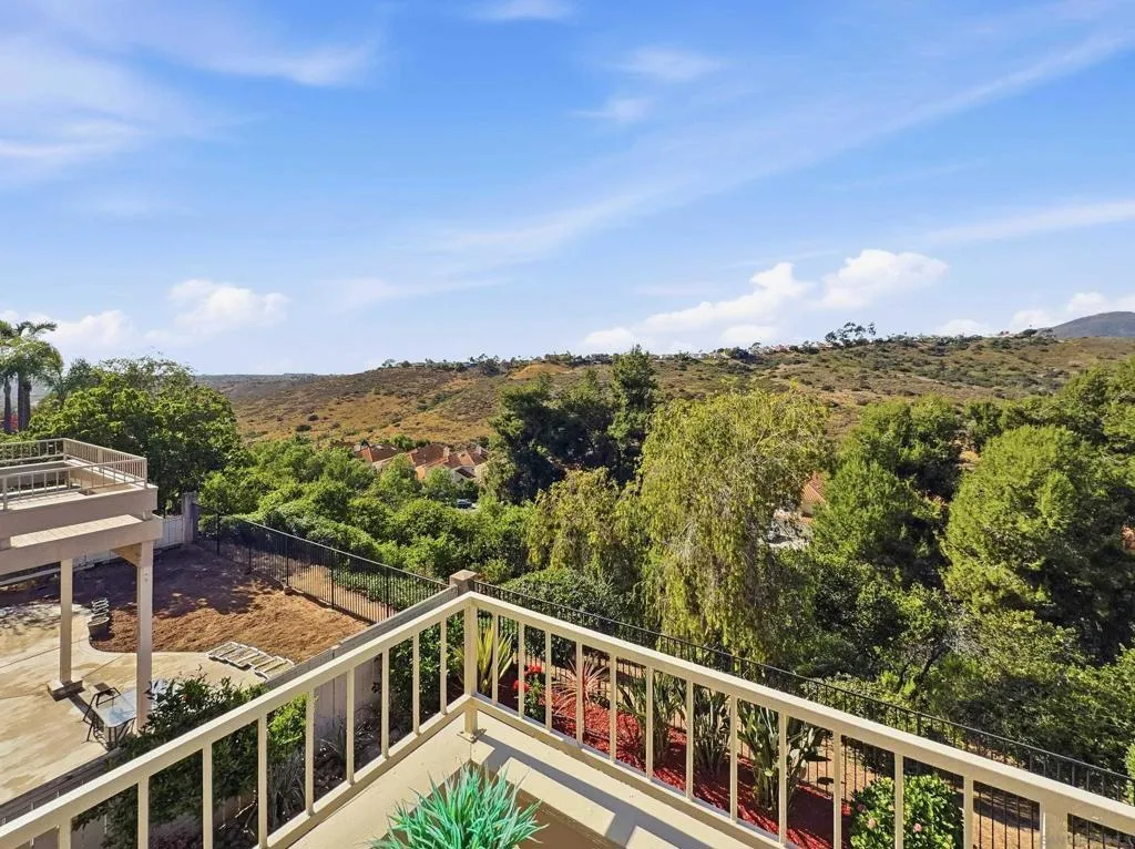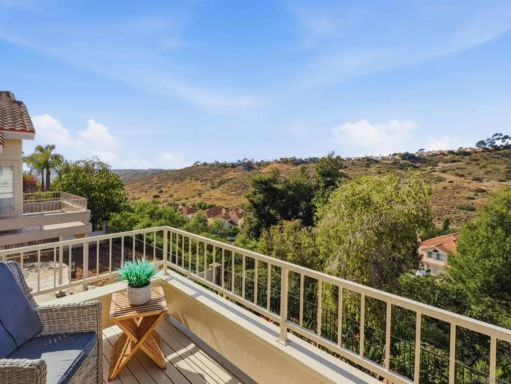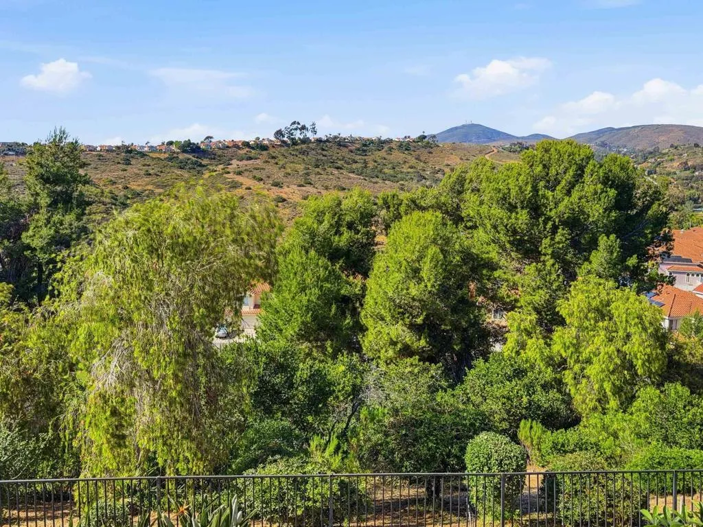 Beautifully maintained 4-bedroom, 2.5-bath home in the highly desirable Rancho Peñasquitos community, nestled within the Woodcrest Hill neighborhood. This light-filled residence features soaring vaulted ceilings, an open and airy floor plan, and a dual fireplace that adds warmth and charm to both living spaces. The remodeled kitchen offers granite countertops, dual dishwasher, wood flooring, a sunny eat-in dining area, and newer dual-pane windows that bring in abundant natural light. Numerous upgrades throughout the home include a newer furnace and AC system, replaced skylight, upgraded electrical panel, Tesla chargers, and a tankless water heater. Upstairs, the spacious primary suite boasts a private balcony with stunning canyon views and gentle breezes, along with dual closets and a luxurious en-suite bathroom featuring a separate tub and shower. The guest bathroom has also been thoughtfully renovated. Step outside to enjoy spectacular canyon views and low-maintenance turf landscaping! With no neighbors directly across the street or behind it, this home offers added privacy and tranquility! Residents enjoy access to community amenities including a pool, spa, gazebo, and tennis courts. Conveniently located near the 56 and 15 freeways, top-rated schools, parks, and an abundance of hiking, biking, and walking trails, as well as nearby shopping and dining options. Low HOA fees and no Mello Roos!