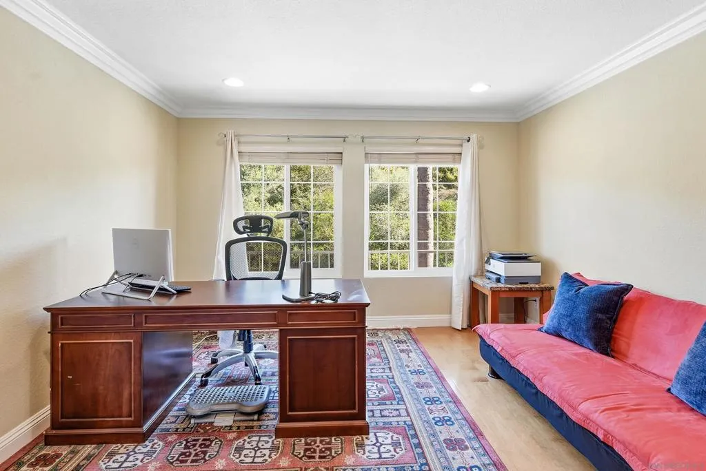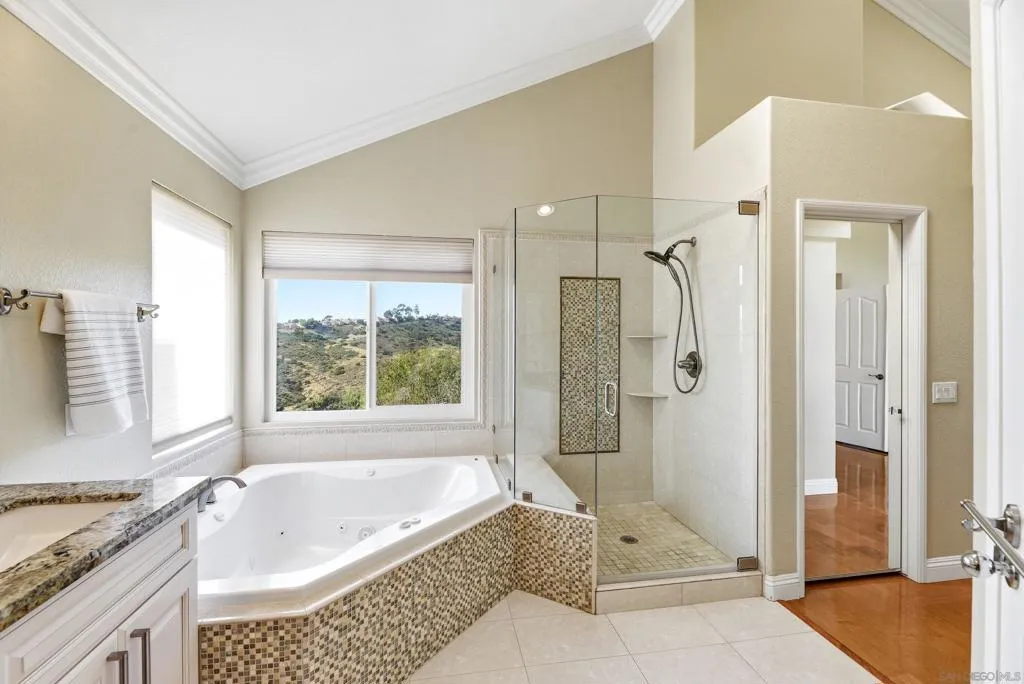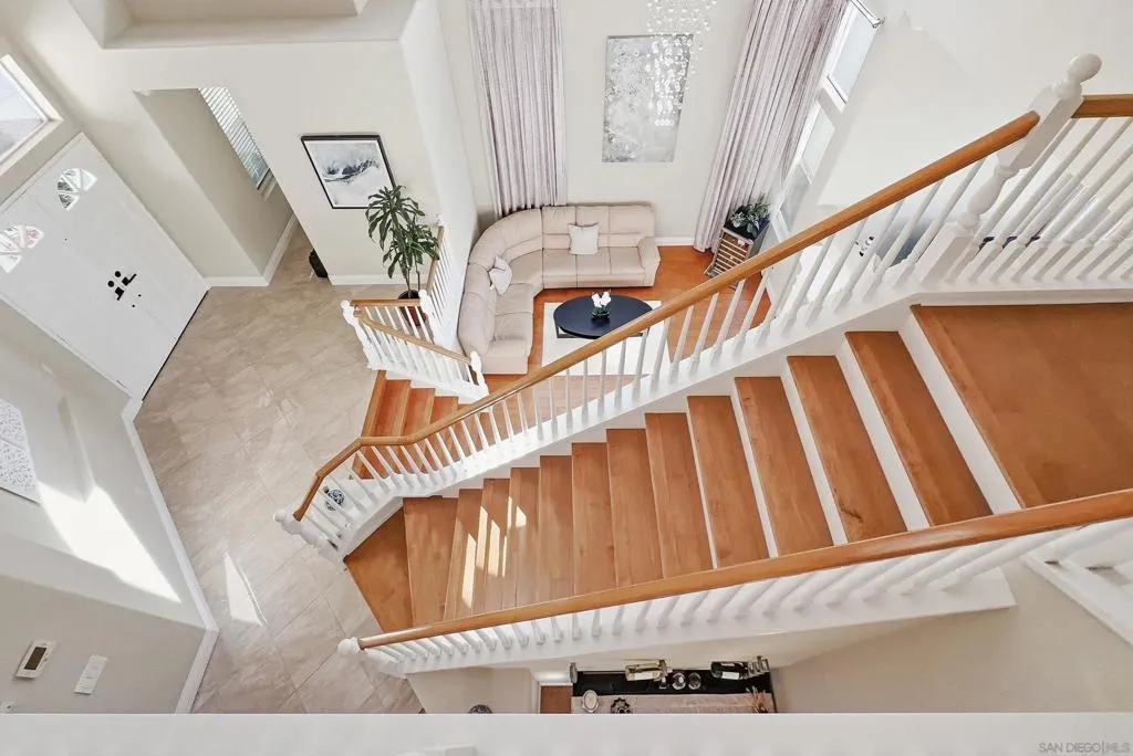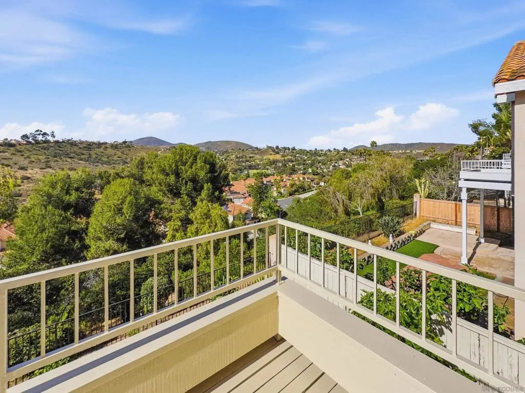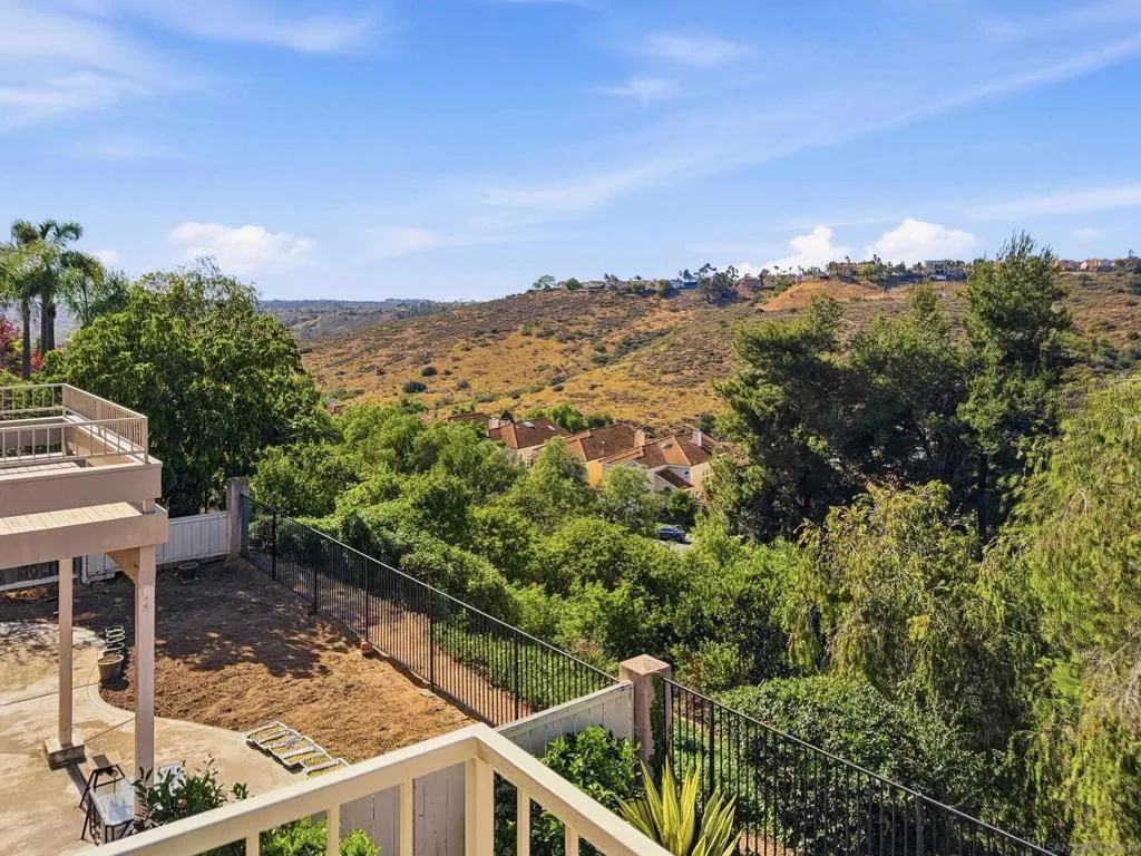Beautifully maintained 4-bedroom, 2.5-bath home in the highly desirable Rancho Peñasquitos community, nestled within the Woodcrest Hill neighborhood. This light-filled residence features soaring vaulted ceilings, an open and airy floor plan, and a dual fireplace that adds warmth and charm to both living spaces. The remodeled kitchen offers granite countertops, dual dishwasher, wood flooring, a sunny eat-in dining area, and newer dual-pane windows that bring in abundant natural light. Numerous upgrades throughout the home include a newer furnace and AC system, replaced skylight, upgraded electrical panel, Tesla chargers, and a tankless water heater. Upstairs, the spacious primary suite boasts a private balcony with stunning canyon views and gentle breezes, along with dual closets and a luxurious en-suite bathroom featuring a separate tub and shower. The guest bathroom has also been thoughtfully renovated. Step outside to enjoy spectacular canyon views and low-maintenance turf landscaping! With no neighbors directly across the street or behind it, this home offers added privacy and tranquility! Residents enjoy access to community amenities including a pool, spa, gazebo, and tennis courts. Conveniently located near the 56 and 15 freeways, top-rated schools, parks, and an abundance of hiking, biking, and walking trails, as well as nearby shopping and dining options. Low HOA fees and no Mello Roos!