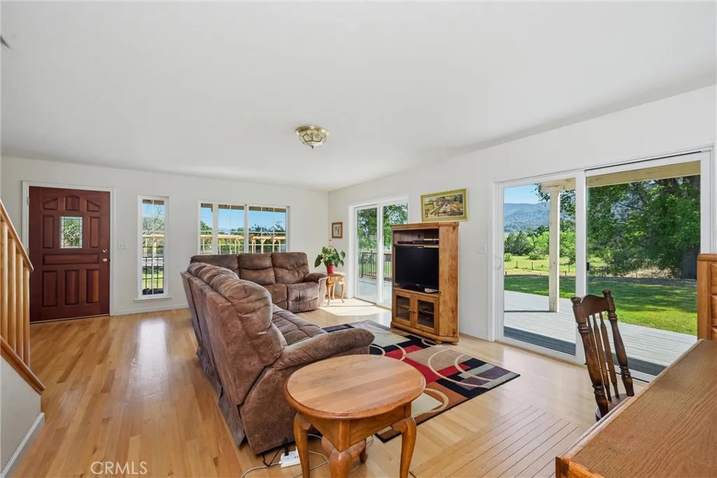 Highly sought after KELSEY CREEKFRONT acreage including a two-story custom built home plus attached half court gymnasium. Available for the first time ever, this well-loved property spans just over 3 acres of usable agricultural land with approximately 161 ft of serene creek frontage. Zoned for agriculture, this is an ideal opportunity to create your dream hobby farm, cultivate a thriving garden, or enjoy peaceful country living with room for livestock. A charming wrap-around porch welcomes you and an upper balcony overlooking your back yard and surrounding beauty. The main level showcases beautiful original red oak flooring throughout the living room, dining room and kitchen. A convenient in-law floor plan includes a bedroom and full bathroom. Upstairs you'll find the other 2 bedrooms, an office overlooking the gymnasium, and another full bathroom with plenty of natural light from the skylight. Enjoy the privacy of your own half-court, practicing pickle ball or playing basketball upon maple flooring. An additional storage closet and 3/4 bathroom with a walk-in shower complete the space. Take a short hike down to the creek where you can take a dip to cool off on hot Summer days or simply admire the beautiful surroundings and wildlife. This one-of-a-kind property delivers the perfect balance of rural charm, recreational activities, and peaceful living. Schedule your tour today before this rare opportunity is gone in one of the most desirable areas of Lake County.