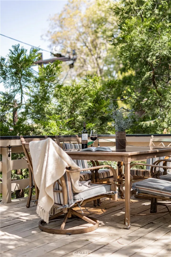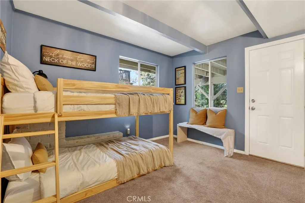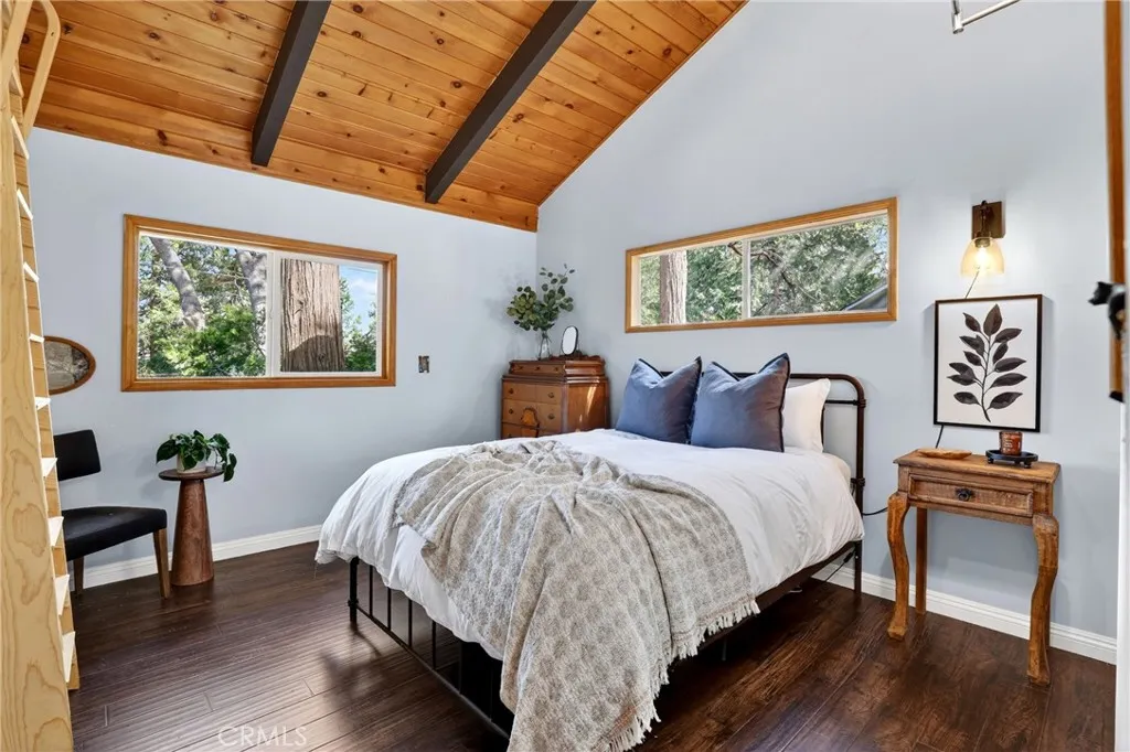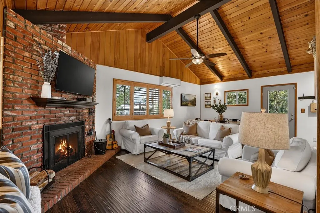 Nestled on a quiet street in the heart of Cedar Glen, this charming A-frame cabin invites you to slow down and breathe. With its soaring tongue-and-groove ceiling, crackling wood-burning fireplace, and warm mountain light filtering through the trees, 176 Fir Terrace is the kind of place that stops you the moment you walk in. Spanning almost 1,200 square feet across three bedrooms and two bathrooms, the cabin feels intimate yet surprisingly spacious—thanks in part to a clever conversion of the attic space into a charming bonus loft, complete with a custom ladder. It’s the kind of thoughtful detail that creates an immediate connection to the home. The property has been lovingly updated throughout: a newer kitchen, fresh interior paint in both downstairs bedrooms, a new furnace and mini-split system, and a reinforced deck built to last. Peace of mind is built-in with a home-ready generator hookup and included generator, keeping the cabin powered through every season. Best of all, it's being sold fully furnished—move in, pour a drink, and enjoy your first sunset from day one. Dual access with parking for 4 vehicles gives you plenty of space for guests. Step out onto the generous deck and take in beautiful mountain views that stretch across the treetops. During the Fourth of July, the deck provides a front-row seat to the fireworks over Lake Arrowhead—a spectacular experience that truly highlights the magic of mountain living. Whether you're looking for a personal getaway or a high-potential short-term vacation rental, 176 Fir Terrace is positioned perfectly. The central location near village amenities, fully furnished turnkey condition, and undeniable charm make it a natural draw for visitors year-round. From winter sports enthusiasts to those seeking world-class hiking, mountain biking, and nearby OHV trails, this cabin is a true hub for mountain adventure.