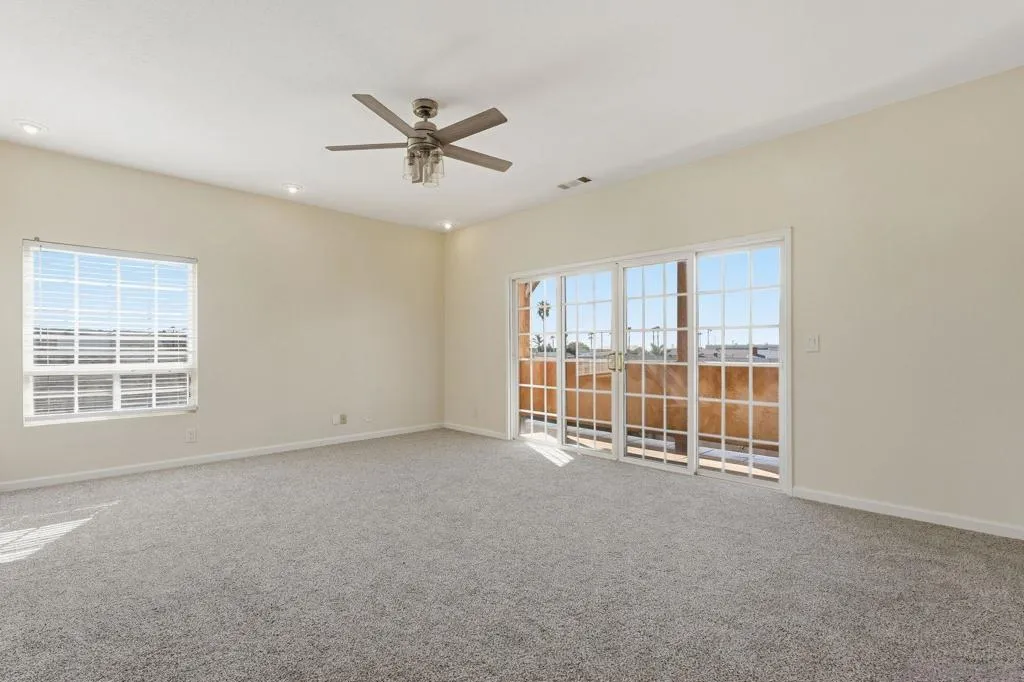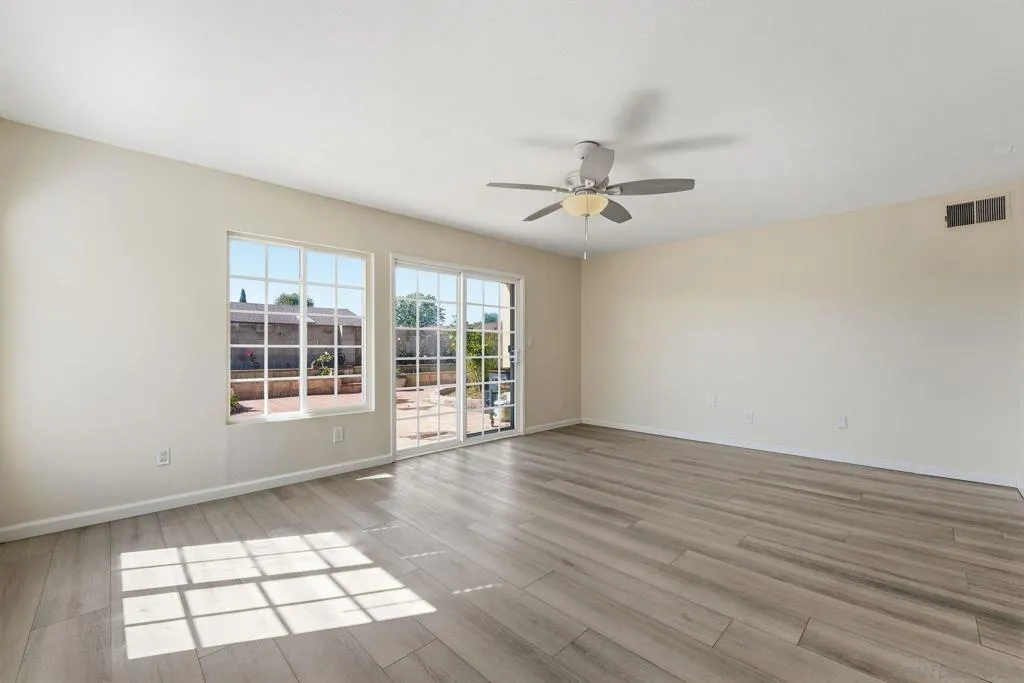 Beautiful custom 5 bedroom 3 bathroom home—the biggest house in the neighborhood. This home features 2 primary bedrooms, 1 upstairs and 1 downstairs, ideal for multi-gen living or added flexibility. 3 bedrooms downstairs and 2 oversized bedrooms upstairs with a custom staircase. Updated kitchen with quartz countertops, large stainless steel sink, appliances, and white cabinets. Fresh paint, flooring, and carpet throughout. Spacious living and family rooms. Dual pane windows and sliders. Great size yard with new front landscape and two mature fruit trees (persimmon and orange). Approx. 30-minute e-bike ride to Naval Base San Diego—save on gas and commute with ease. Seller listing only through end of month before renting—rare opportunity. You must see this home in person to appreciate it. 5.75 ASSM VA LOAN.