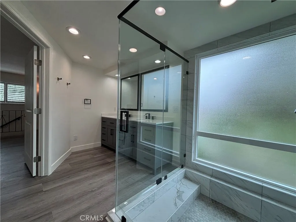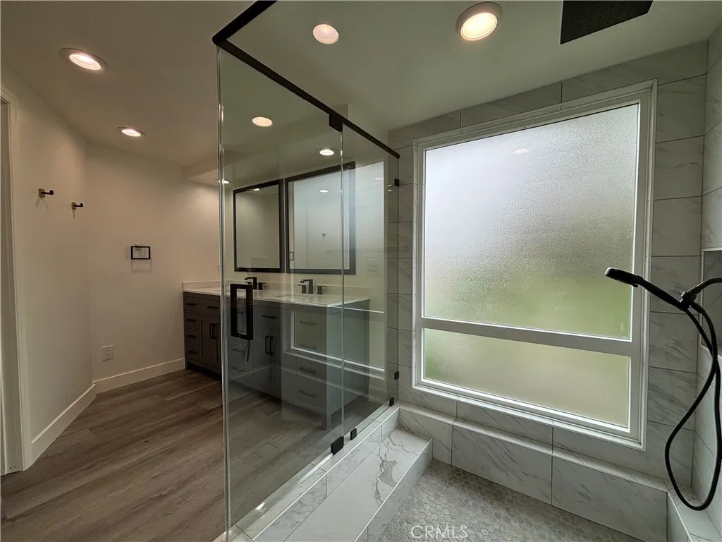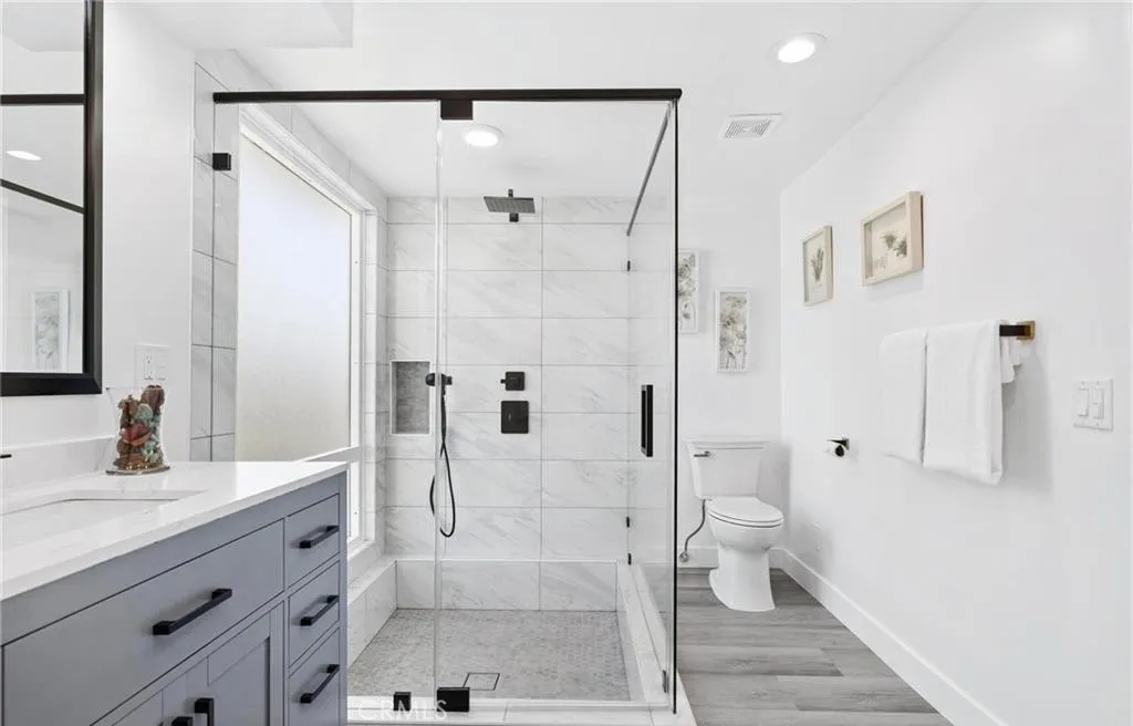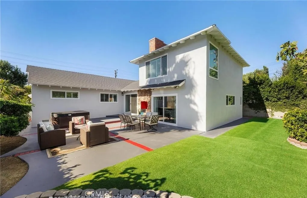 Welcome to this beautifully remodeled, move-in ready two-story home in Northridge—designed for both modern living and flexibility. Featuring two spacious primary suites. With 5 bedrooms and 4.5 bathrooms, the layout offers both comfort and versatility. The home has been fully renovated with stylish upgrades throughout, including designer luxury vinyl plank flooring, updated fixtures, and a fresh, contemporary feel in every room. Natural light fills the open floor plan, creating a warm and inviting atmosphere. The elegant living room features a cozy fireplace and sliding glass doors that open to the backyard—perfect for relaxing or entertaining. The chef-inspired kitchen boasts quartz countertops, stainless steel appliances, ample cabinetry, and a bright breakfast area. Just beyond, a step-down dining and family room offers additional gathering space, complete with a wet bar, guest half-bath, and another sliding door for seamless indoor-outdoor living. Upstairs, the expansive primary suite includes a walk-in closet, a comfortable sitting area, and a beautifully updated en suite bathroom with dual sinks and a custom-tiled shower. Secondary bedrooms are conveniently located on the main level and provide plenty of space and functionality. This home also offers fresh interior and exterior paint, central air and heat, dual water heaters, upgraded dual-pane windows, and a finished attached two-car garage. Outside enjoy a private backyard retreat featuring a spacious patio, new above-ground spa, and low-maintenance landscaping with an automatic drip irrigation system—perfect for year-round enjoyment. This exceptional home truly has it all—schedule your showing today!