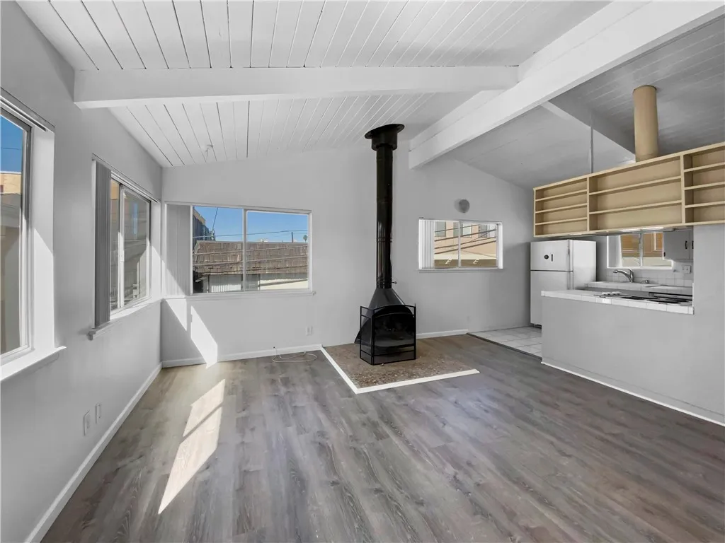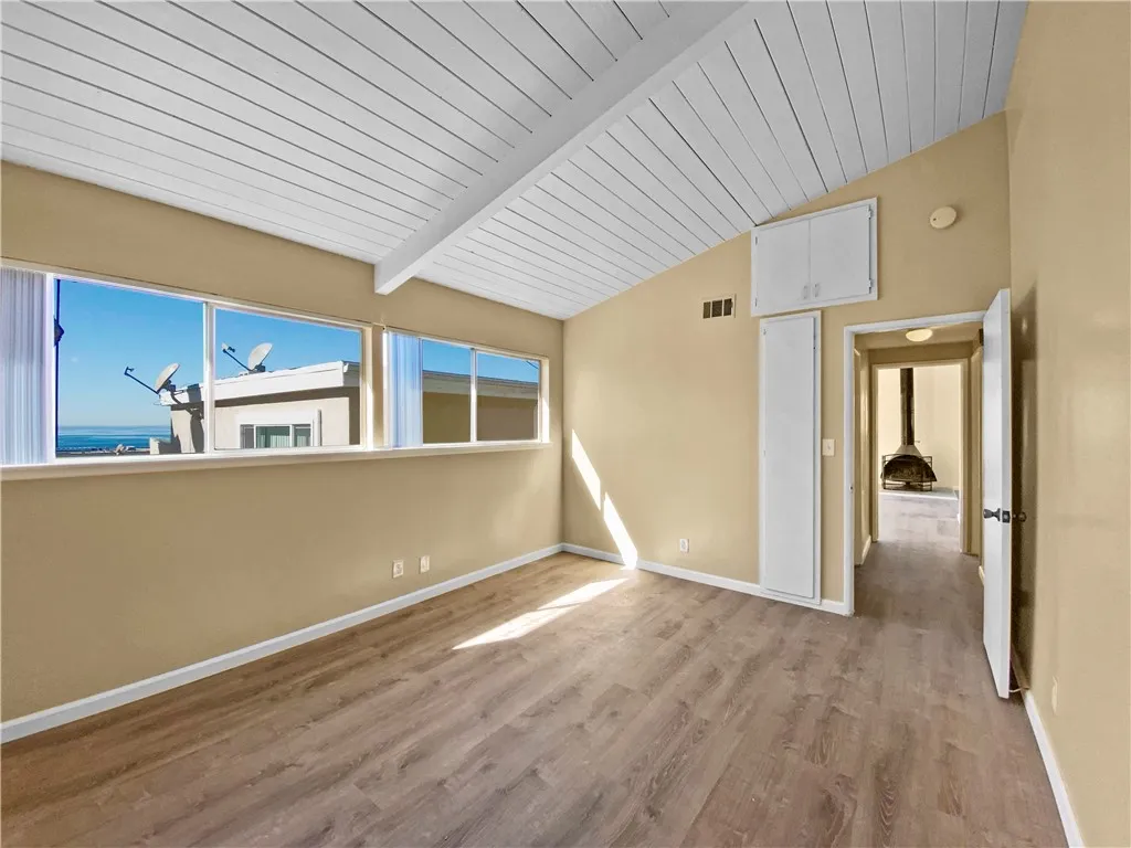 Enjoy the beach lifestyle, just a few doors to the sand and west of Highland. Bright and Spacious 3 Bedroom, 2 Bath, with fireplace, vaulted ceilings and 3 car parking: 2 garage spaces, 1 car driveway. Ocean View from Master Suite, plus views from living room. Updated bathrooms and kitchen. Excellent surfing and beautiful white sand beach right outside your door. Experience the best of beach living in the heart of Manhattan Beach's north end. Restaurants, cafes, shopping, dining and more all within steps. Unit entry off Rosecrans Place. Shared laundry. Easy access to freeways, only 10 minutes to LAX.